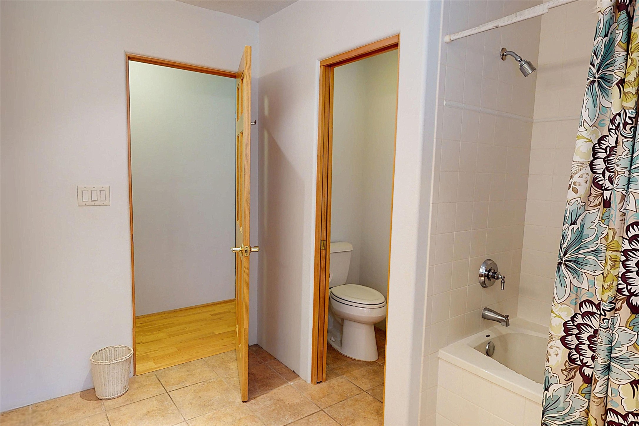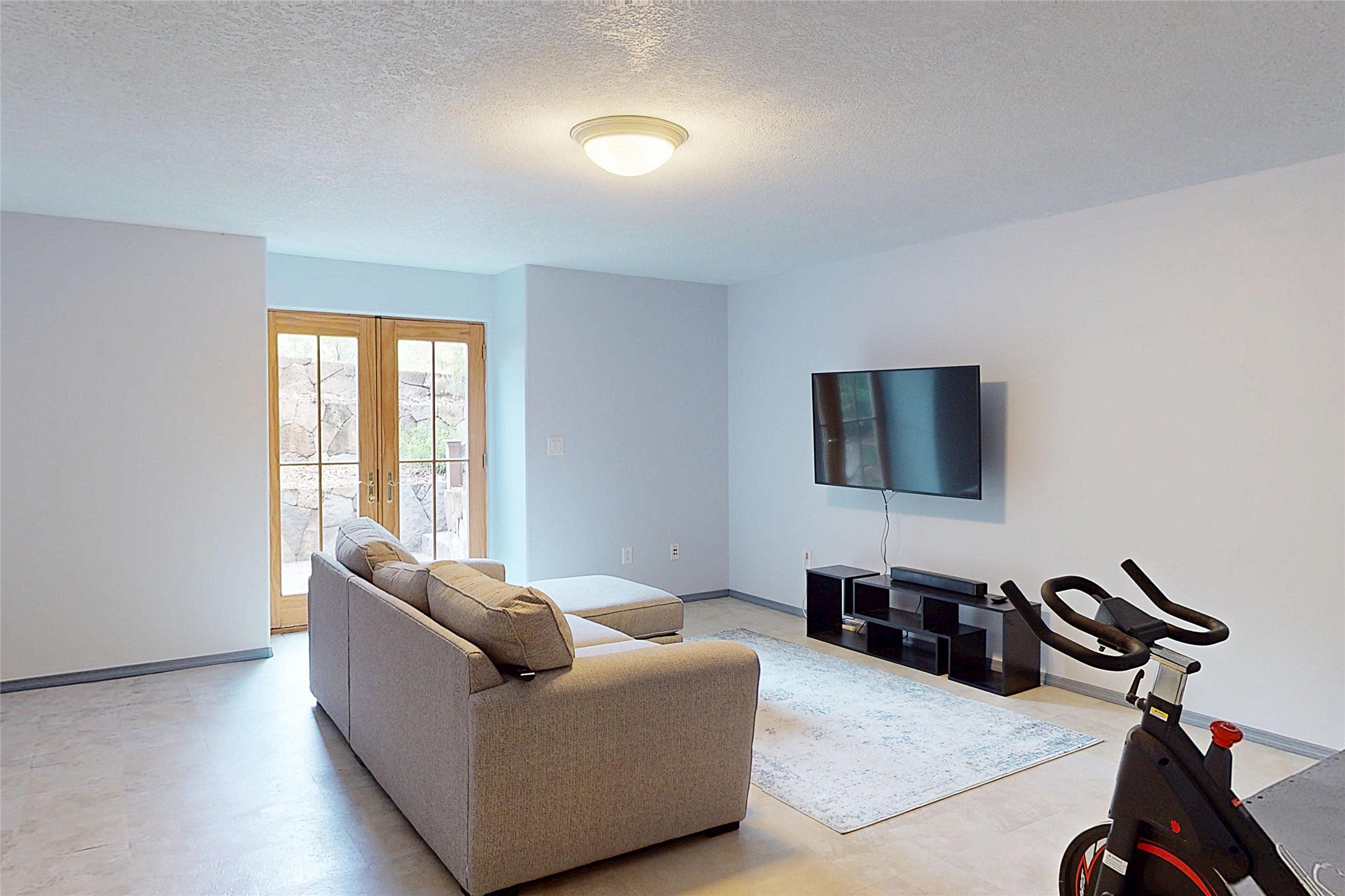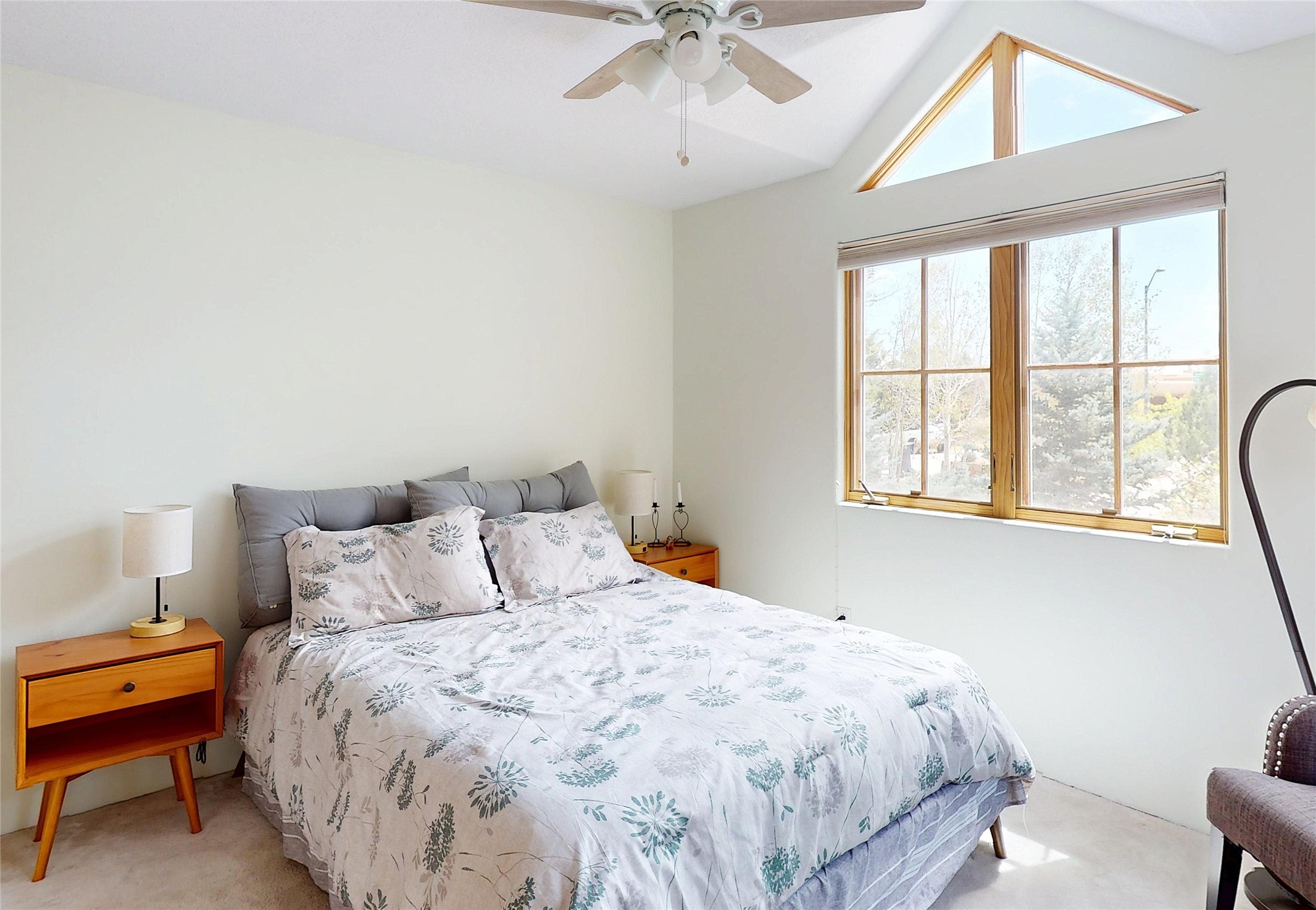 This stunning 4-bedroom, 2.5-bath Quemazon home backs to open space, offering privacy and direct access to the Perimeter Trail. The open floor plan flows seamlessly between the kitchen, dining, and living areas, with easy access to the covered Trex deck--perfect for enjoying mountain and forest views as well as the private backyard. The spacious primary suite includes a private study framed by French doors, dual walk-in closets, and a luxurious en-suite bath with dual sinks and a freestanding tub. Three additional bedrooms and a well-appointed hall bath complete the layout. A walk-out basement with additional living space and a crawl space for storage adds flexibility. Thoughtful details include architectural touches throughout the home, in-floor radiant heat with four zones, WindsorLite windows, six-panel wood doors, ceiling fans in every bedroom and the living room, track lighting, and Kohler fixtures. The kitchen is equipped with a Bosch dishwasher, gas stove/oven, and a newer refrigerator (2022). Major updates include roof replacement in 2009 with a lower-roof update in 2025, and a full stucco renovation in 2019. Outdoors, mature fruit trees--cherry, apple, pear, plum, apricot, nectarine, and peach--along with raspberries, drought-tolerant blue grama grass, and a private front yard with precision-cut stone walls, create a serene retreat. French drains along the west side provide peace of mind. This Quemazon gem blends comfort, thoughtful upgrades, and a premier setting with trails at your doorstep.