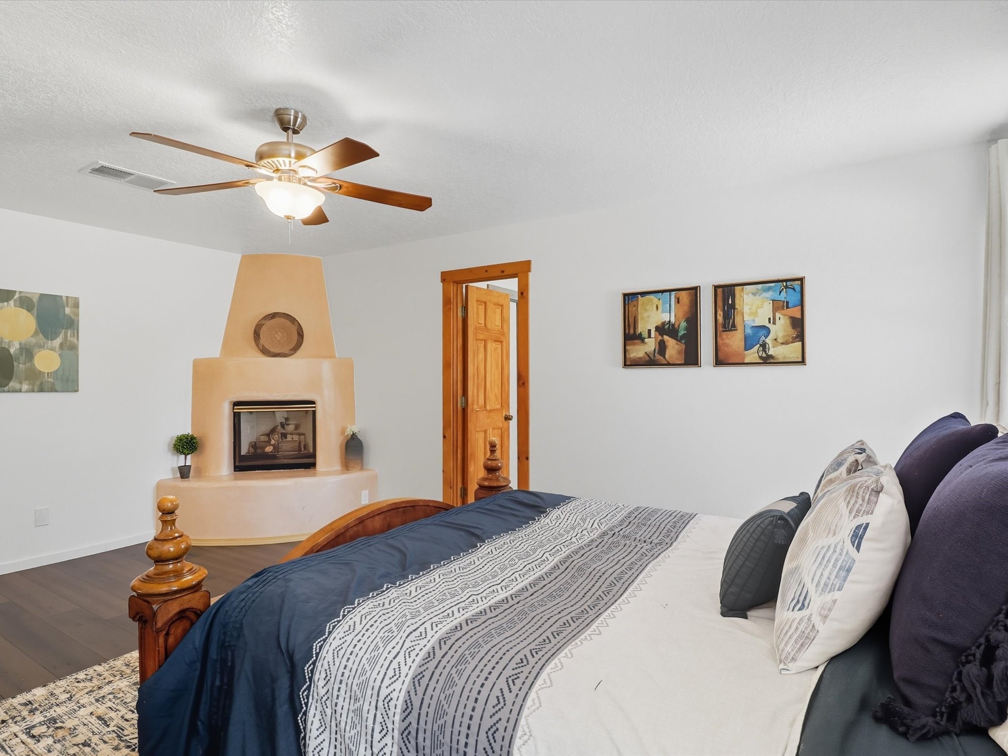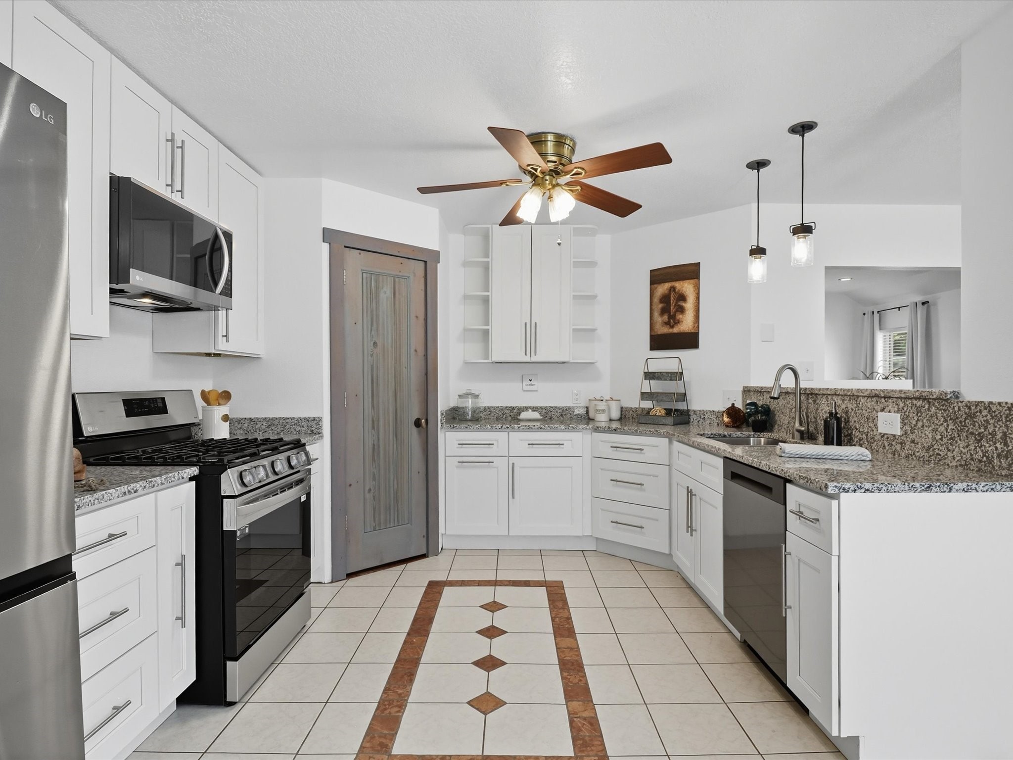 INCREDIBLE FIND - 0.75 acre property w/quality dream home and separate 1,206 sq ft workshop building w/3 garage doors (up to 6 car tandem). Found just 20 minutes from either Santa Fe plaza or Los Alamos National Labs in the coveted & fertile Pojoaque valley complete w/irrigation water rights. Special features of the home incl: new roof (installation 9/2025), newly painted interior & exterior, energy-saving Pella thermal windows, in-floor radiant heat for cozy winter days, 2 low-maintenance gas diamond plaster kiva fireplaces, tile or new high-quality engineered wood flooring throughout (no carpet!), updated baths with a Dream Style Shower, and a total kitchen remodel w/new cabinetry | stainless steel appliances | granite slab countertops. *Also available on 1.5 acres (including adjacent .75 acre lot) for September 2025 appraised value of $845,000.*