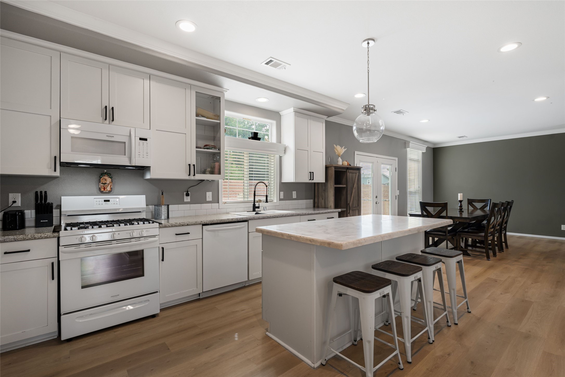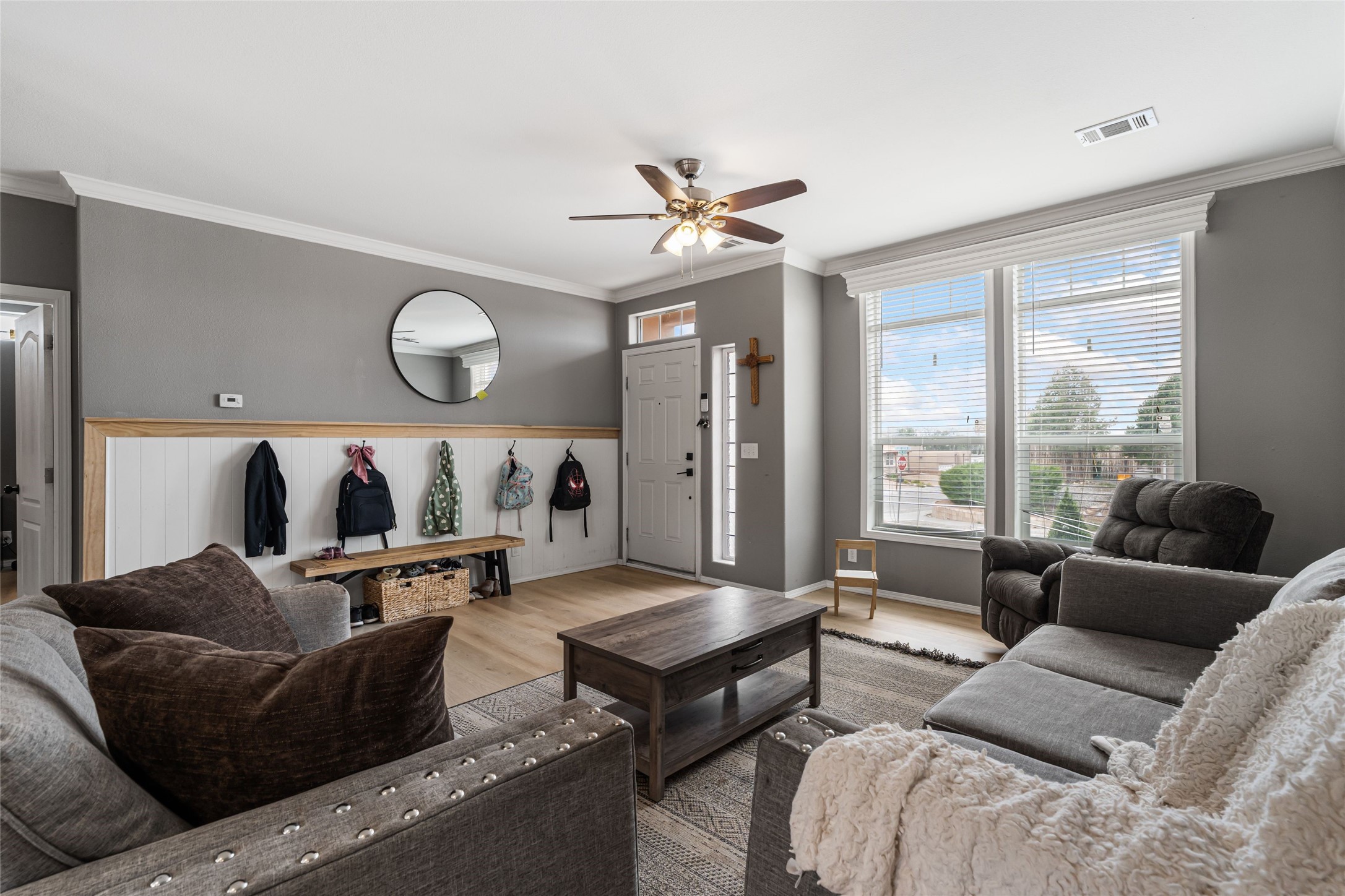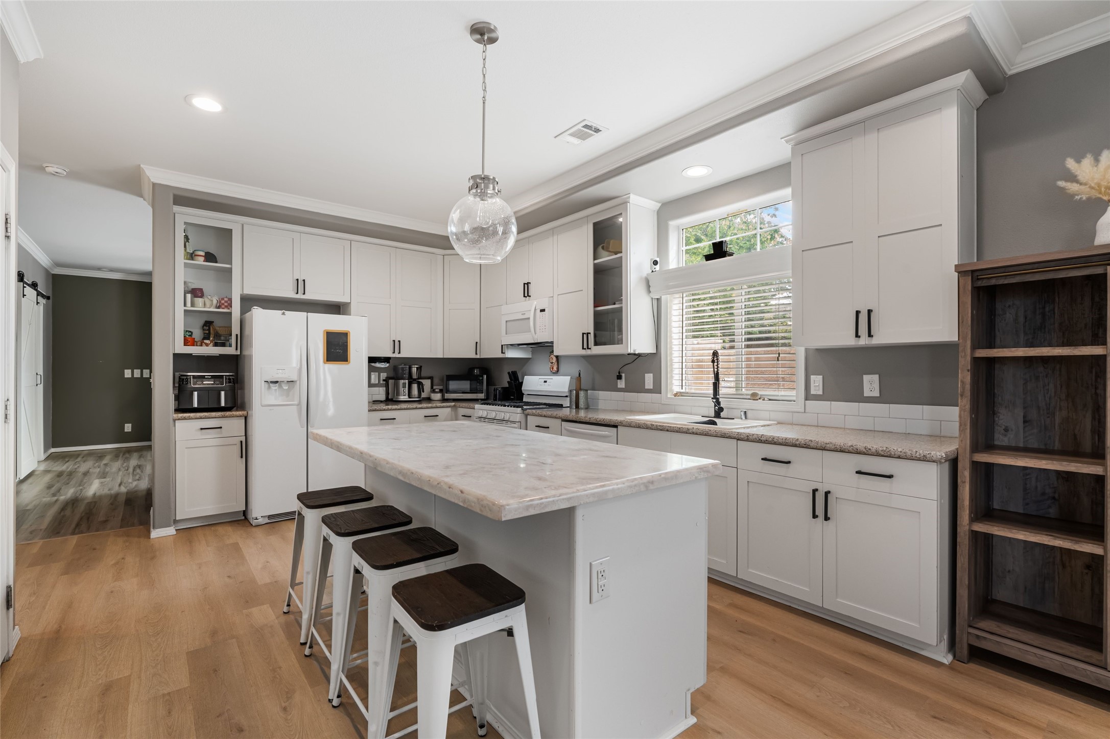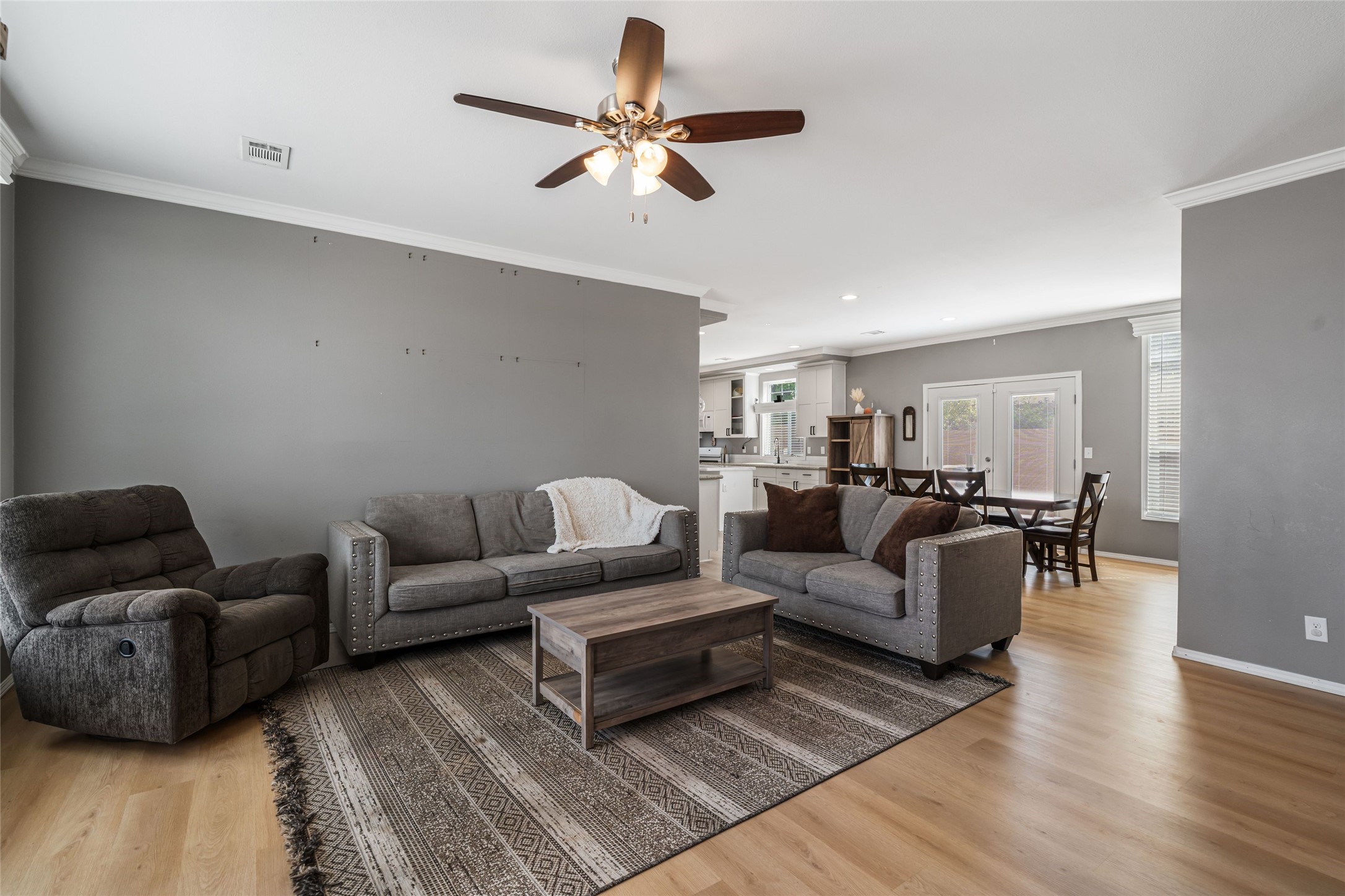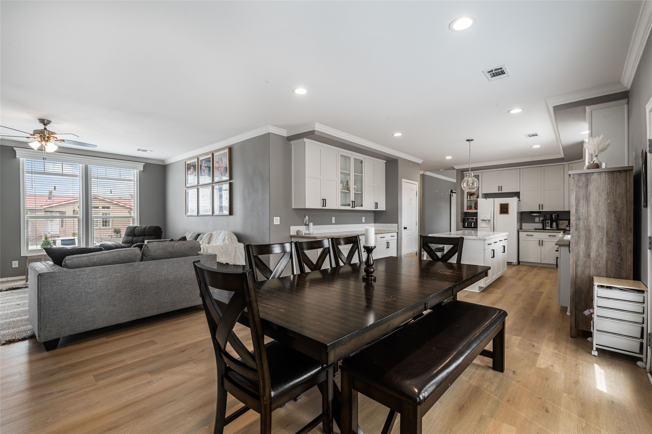 Updated 3-bedroom, 2-bath modular home sited on a corner lot with a permanent foundation and numerous seller improvements, this residence offers both style and functionality. Step inside to discover a bright and inviting open floor plan, featuring new luxury vinyl plank flooring. The kitchen showcases crisp white cabinets, modern appliances, and a spacious center island with seating for four. The built-in hutch and adjacent dining area provide a welcoming atmosphere for family meals and gatherings, with easy access to the backyard for outdoor entertaining. The primary bedroom has clerestory windows which fill the space with natural light and an oversized walk-in closet for ample storage. The remodeled en-suite bath has dual sinks and soaking tub, perfect for unwinding after a long day. Two additional guest bedrooms share a well-appointed bath, making this home ideal for families or guests. The second living area offers versatile options as a den, media room, or play area, catering to your lifestyle needs. Outside, enjoy the side pergola and covered outdoor dining area, perfect for alfresco dining and entertaining. The large side patio and garden areas provide ample opportunities for outdoor pursuits. Also has a retaining wall and fence. Located in the heart of Espaola with the added benefit of being equidistant from Santa Fe and Los Alamos.