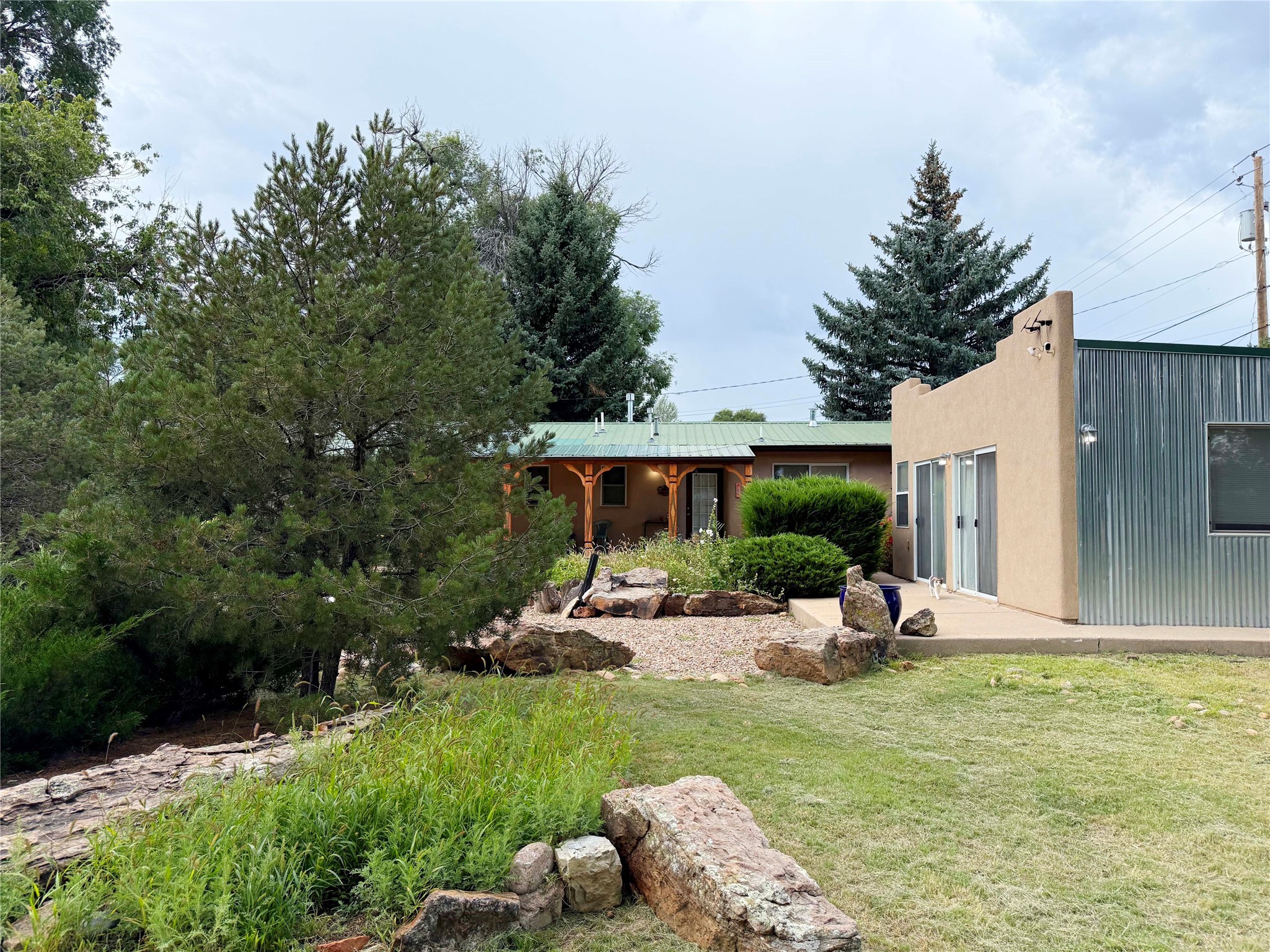 Stunning former hotel transformed into a luxurious 3-bedroom, 2.5-bathroom residence on almost 3/4 acre along the Gallinas River. This chef's dream home features an open-concept living area anchored by a beautiful river rock fireplace, seamlessly connecting to a gourmet kitchen with double-sized refrigerator and freezer, 6-burner gas cooktop island with bar seating, wine refrigerator, double oven, microwave, and abundant pantry and cabinet space with stunning display cabinets, space for a butler's pantry or coffee bar and hard surface countertops. The master suite features a gas kiva fireplace, dual closets, step-down rainfall shower, and French doors opening to landscaped gardens and patios. A versatile sunroom/den with gas fireplace offers endless possibilities for relaxation or entertainment. Three bedrooms are accessed via a dramatic long hallway, with rooms tastefully numbered as a nod to the property's historic hotel past. Nearly every living area in the home features French doors leading to beautifully landscaped patios throughout the lush, green grounds. The property includes a three-car detached garage with workshop, storage shed, garden shed, and covered firewood storage. Grounds are accented with beautiful large mountain rocks and offer wide open spaces perfect for outdoor living. Located directly next to the Gallinas River, this unique property combines luxury amenities with historic charm and natural beauty - truly a must-see opportunity.