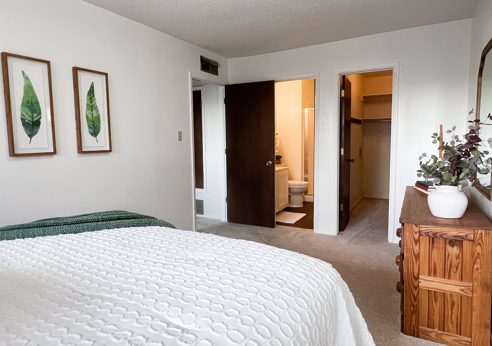 This top-floor condo at Trinity Village is located in the heart of Los Alamos, close to LANL, downtown, Ashley Pond, the library, restaurants, and bus stops. With no one above you, the home offers privacy, views, and natural light. The two-bedroom, two-bath unit has been refreshed with new flooring and paint throughout. The living room is bright and welcoming, featuring a distinctive Preway enamel freestanding fireplace that reflects a mid-century modern style. A sliding door opens to a private south-facing balcony, where you can enjoy peaceful views of Pajarito Mountain. The kitchen includes new countertops, a stainless steel sink, dishwasher, range, and refrigerator (new August 2025). Both bedrooms are generously sized. The primary suite accommodates a king-size bed and offers a large walk-in closet, along with a private bathroom that has a new commode. The second bedroom is adjacent to the full hall bath, and both bathrooms feature new vinyl flooring. Additional conveniences include a designated carport parking space, a private ground-level storage unit, and access to a shared laundry room. Whether you're looking for a full-time residence or an investment opportunity, this condo is a solid choice in a central Los Alamos location. Schedule a private showing today.