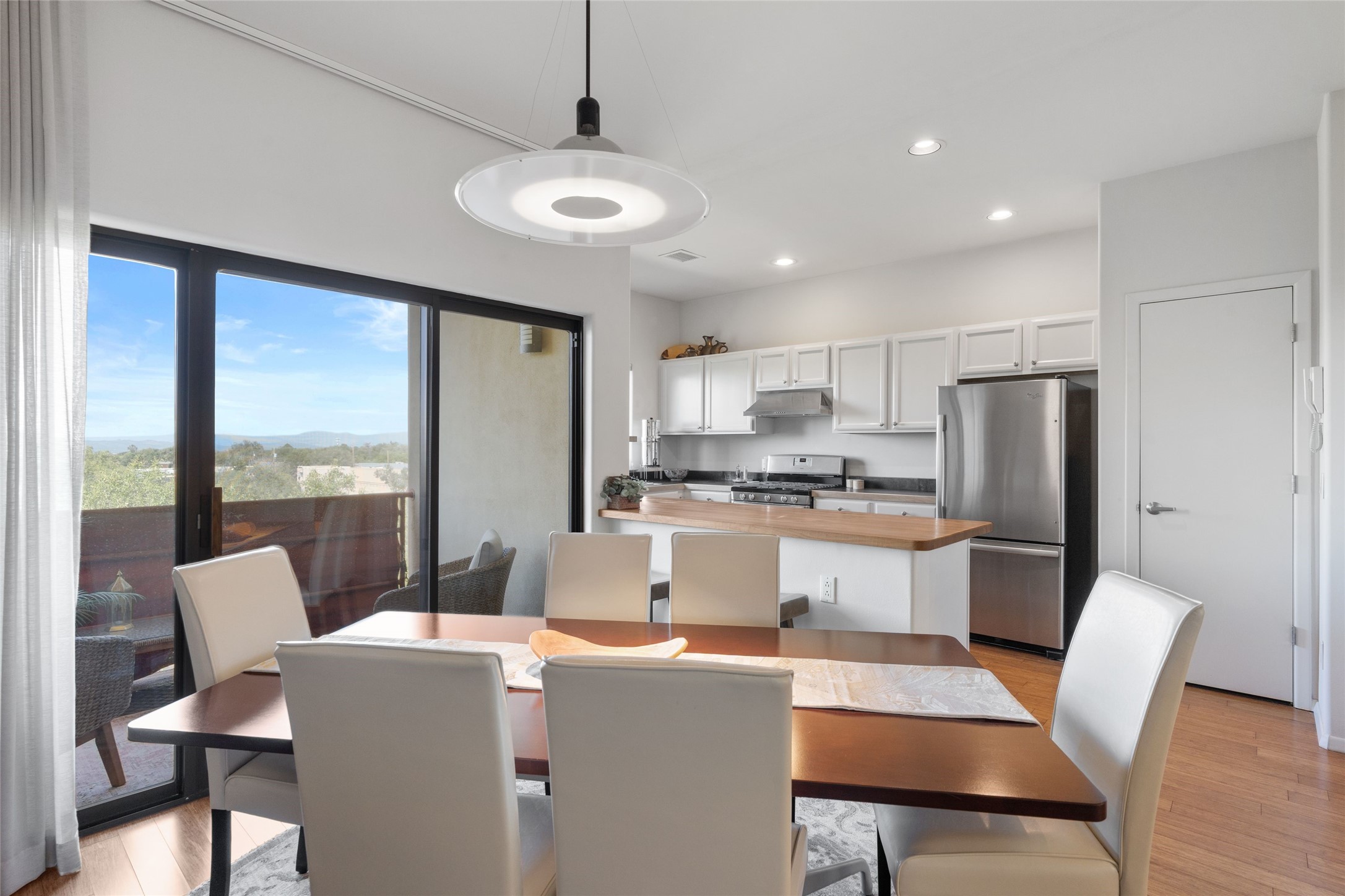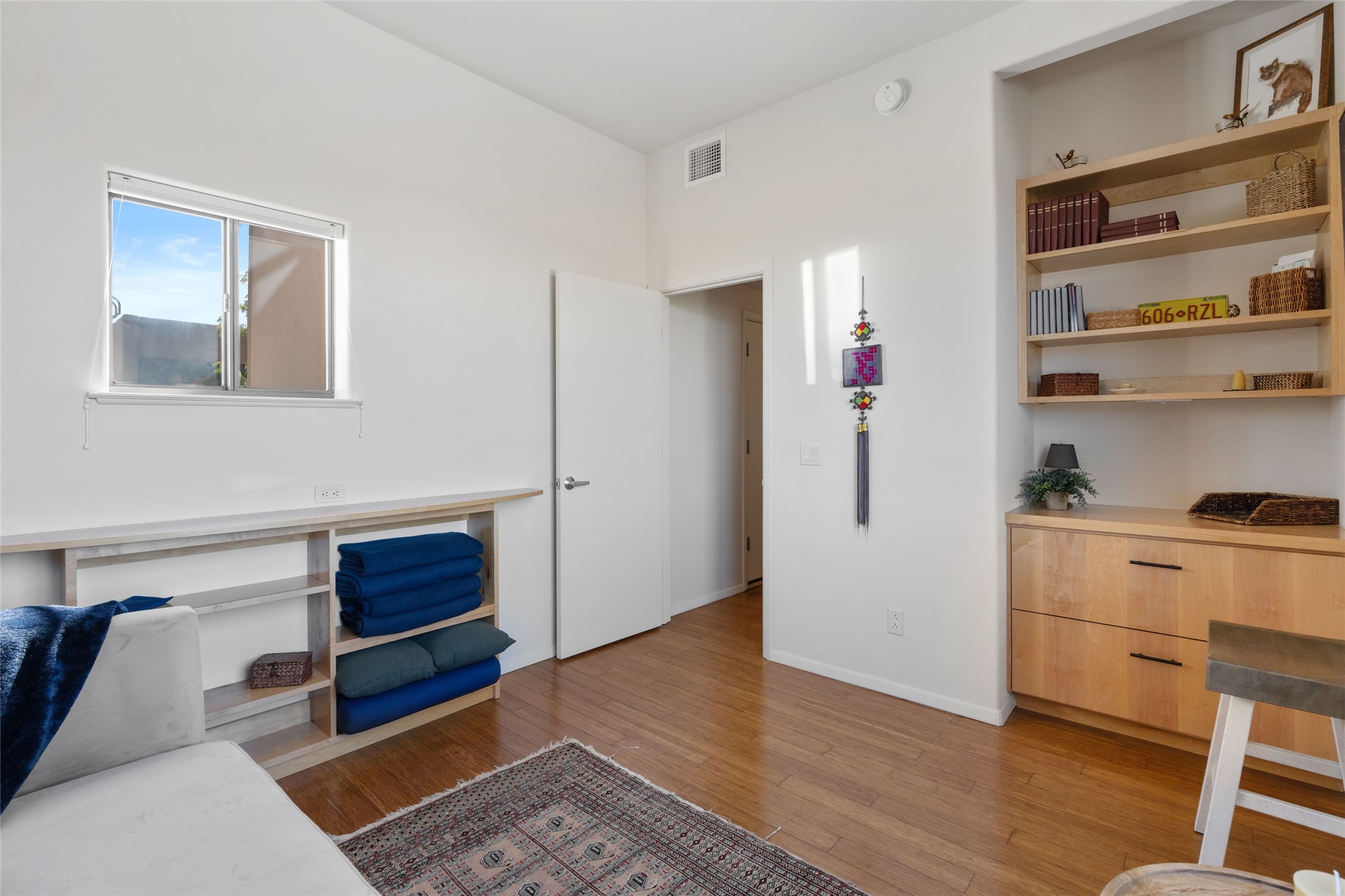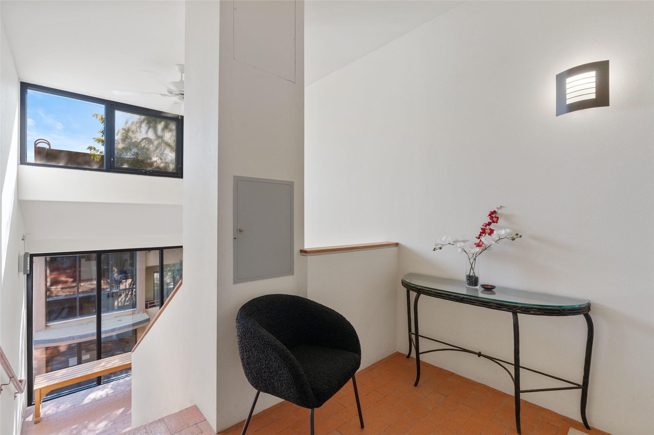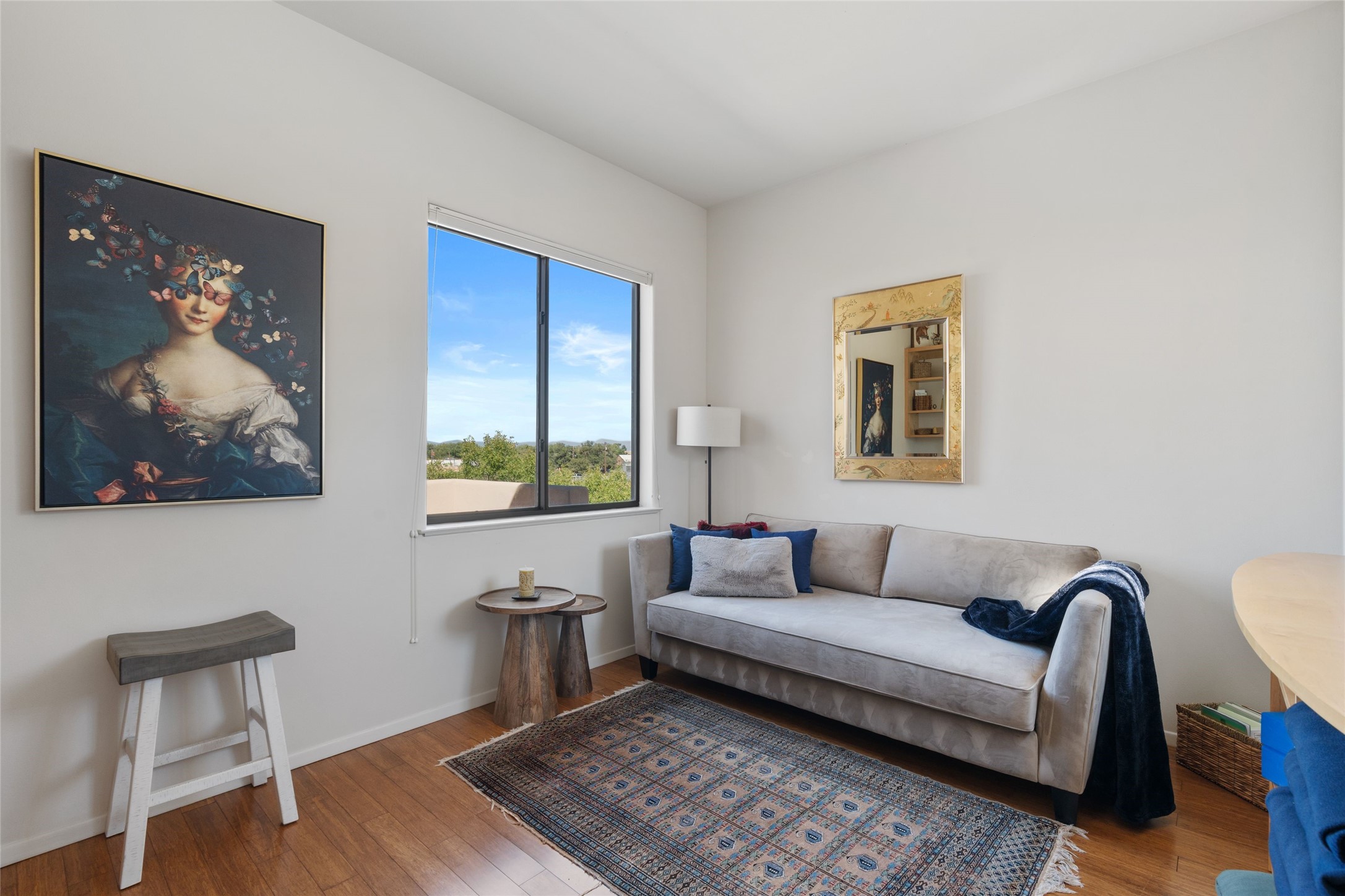 Classic urban oasis surrounded by mature trees, La Remuda Condominium is located on the edge of Midtown where you can walk to relaxed eateries featuring global cuisine and local flair. Not far from theRailyard, quick stops to Trader Joe's and Whole Foods. The central location is convenientfor a fast commute to Los Alamos or I-25. This bright and airy condo features an open floor plan with sliding glass doors at each end of the living/dining rooms with access to the 2 balconies. The kitchen is well designed, with exceptional storage, high quality stainless steel appliances, butcher block on one side of the counter and Italian tile on the other. Other features include: central air conditioning and heating installed in 2023, 9 foot ceilings, beautiful bamboo floors, custom drapes, custom dividedclosets, custom cabinets in living room and office, private storage: 5.5' x 17', Asko washer and dryer, whole house water filtration system installed in 2025, 2 under cover designated parking spots with direct entrance to the secure building, upper floor unit with no interior steps, new roof in 2024 and refreshed stucco in 2025. One of the two only units at La Remuda with 3 bedrooms. This condo is on the second floor and stairs are required to access it.
