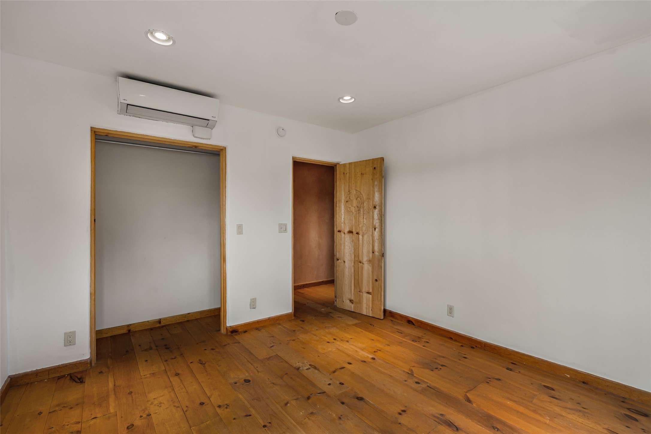 Wonderful opportunity to own a Sol Y Lomas adobe gem. Set your sights on the final finishing touches and upgrades on this adobe, three bedroom, two bathroom home at the end of the Santa Barbara Drive. Home is situated on a 3/4 acre lot with mature trees. Large Sunken Living Room and Dining Room with room for lots of entertaining, both with wood burning Fireplaces and flagstone floors. Beautiful Ceilings with Vigas and Latillas. New Marvin double pane wood windows and hardwood floors. Beautiful carved doors and wood accents in the home. The oversized two car garage has enough additional space for a small workshop. Ductless mini-splits heat and cool. Rinnai tankless hot water heater. Brand new stucco done in 2025. Bathroom includes tub, separate shower and dual sinks with nice tile accents. Lots of storage space. Outside in the back yard is a patio with an older brick fireplace. In the back of home is a space to be finished for a studio apartment with an additional bathroom and access to the back patio. Minutes to Downtown Santa Fe, hospital, shopping, and I-25.