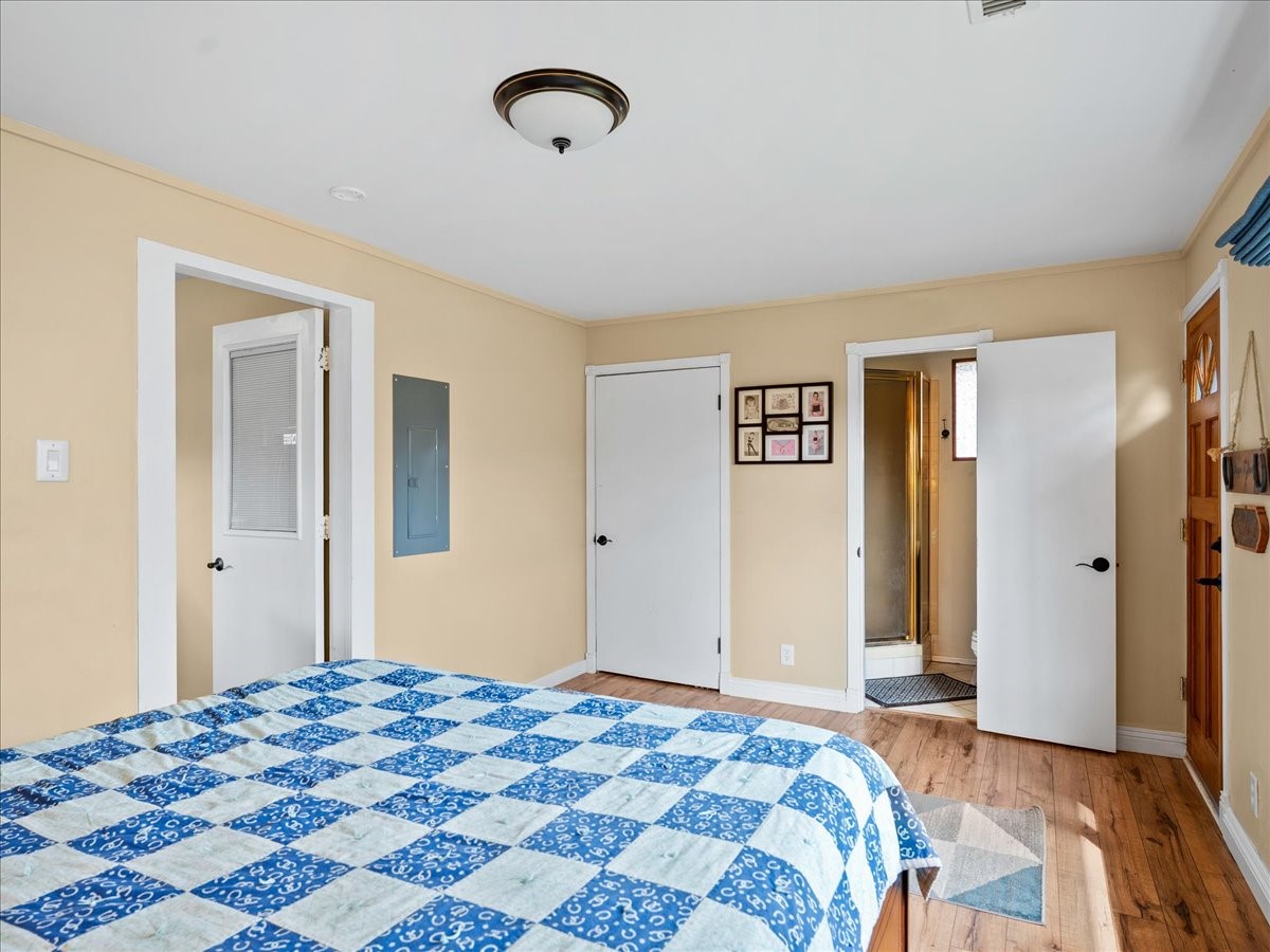 Welcome to this beautifully remodeled single-level home offering 3 bedrooms and 3 bathrooms in a prime downtown location. Over $200,000 of renovations have been made to this home in the last few years. The kitchen was fully updated in 2021 new cabinets, counters, an induction stove and updated appliances. The living room was opened up and a primary suite was added with a luxurious en suite bath - a copper soaking tub, custom tiled shower, and a large walk-in closet. Throughout the home is new vinyl flooring, fresh doors, upgraded electrical, and enclosed laundry room. Comfort and efficiency are built in with a 2021 solar panel, new heating and air conditioning, new gutters and insulated PEX water supply lines. The fully fenced backyard is highlighted by the covered patio, spacious lawn and two large storage sheds - one with added electricity. Designed for modern living, this move-in ready home is perfect for buyers who want style, function, and energy efficiency all on one convenient level. Schedule your showing today!