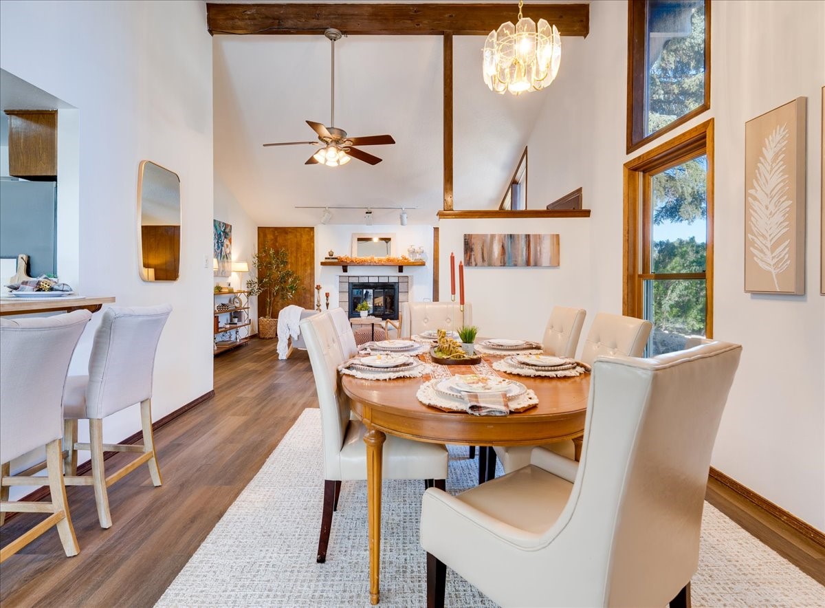 Welcome to this lovely 2,766-square-foot home. This spacious 4-bedroom, 3-bath home boasts vaulted ceilings, abundant natural light, and easy layout. The bright addition includes a generous main suite and sitting area, living room, and office. Recent updates include a new front door, driveway, stove range, and flooring. Features include energy-efficient double-paned windows and a wood-burning fireplace. Central air conditioning in the main part of the home. The beautifully landscaped yard features mature evergreen trees-- Colorado Blue Spruce, a 40-year-old black seedless grapevine draping gracefully over the garage, and a rare registered Stark Jumbo Dwarf apple tree. This home offers the perfect blend of comfort and character in a peaceful, well-established neighborhood. Schedule your showing today!