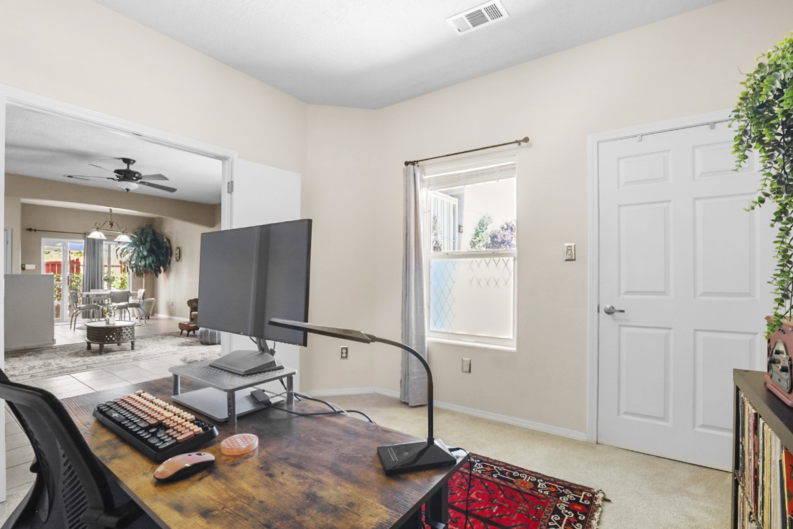 PRICE IMPROVEMENT *Centrally Located Santa Fe Gem!*Conveniently nestled in the heart of Santa Fe, this rare three-bedroom, two-bathroom townhome offers the perfect blend of comfort, function, and lifestyle. Just minutes from the city's best restaurants, shops, and activities, you'll love the ease of living in this highly desirable subdivision.Step inside to discover soaring ceilings, an open-concept floor plan, and a spacious kitchen complete with double ovens, electric cooktop, stainless steel sink, dishwasher, and a generous pantry. The kitchen flows seamlessly into the living area, making it ideal for both entertaining and everyday living.This home features thoughtful touches throughout: a full-sized laundry room, two-car garage, and--best of all--no interior steps for convenient, single-level living. The primary suite is a true retreat with a walk-in closet, dual sinks, and plenty of space for a vanity. Excellent bedroom separation ensures privacy for family or guests.One of the only homes in the neighborhood with a private, fenced yard, this property is a standout for pet owners, gardeners, or anyone who enjoys a bit of outdoor living. With the neighborhood park just steps away, it's perfect for dog owners and active lifestyles alike.Whether you're a first-time buyer, downsizing, or simply seeking a low-maintenance Santa Fe home, this property checks all the boxes. Don't miss this rare opportunity!