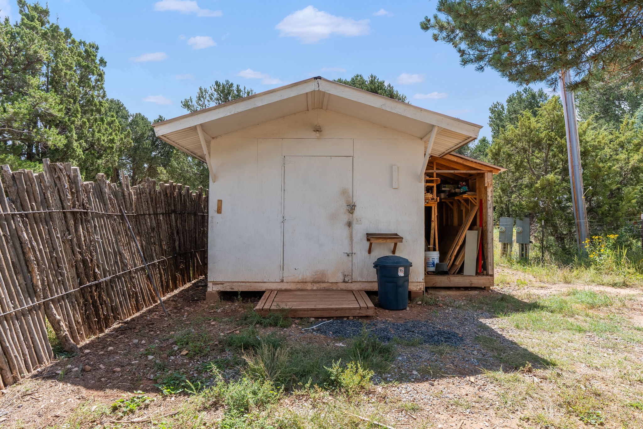 Escape to your own private mountain haven with this charming property tucked away on 4 wooded acres in Rowe, NM. Located just 30 minutes from Santa Fe, 40 minutes from Las Vegas, and less than 15 minutes to Pecos, this property is ideally situated for both convenience and adventure. Surrounded by pinon and other native trees and local wildlife, this retreat offers peace, seclusion, and plenty of room to grow. Roughly 1/3 of the property is fenced in, making an ideal dog run.The main home is a cozy 2-bedroom manufactured house with an expanded living area, creating a warm and inviting space to relax after a day outdoors. A separate guest casita provides extra room for visitors, hobbies, or even rental potential. The casita also features granite countertops,stainless steel appliances, and engineered hardwood floors.In addition, three versatile sheds offer ample storage for tools, equipment, or outdoor gear.The surrounding area is a paradise for outdoor enthusiasts--whether you enjoy hunting, fishing, camping, hiking, or simply taking in the fresh mountain air, you'll find it all right at your doorstep.If you've been looking for a serene getaway with space to expand, this Rowe retreat is ready to welcome you home.