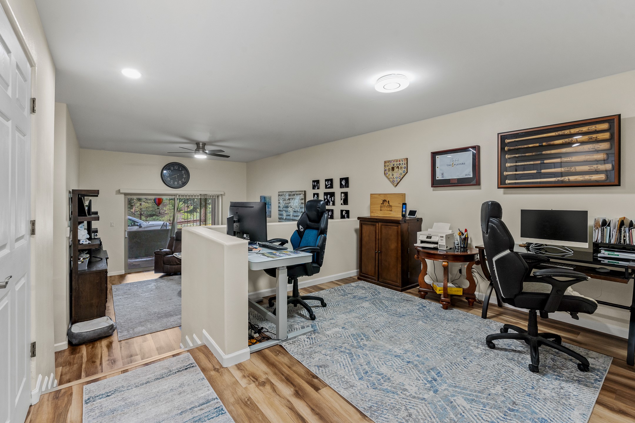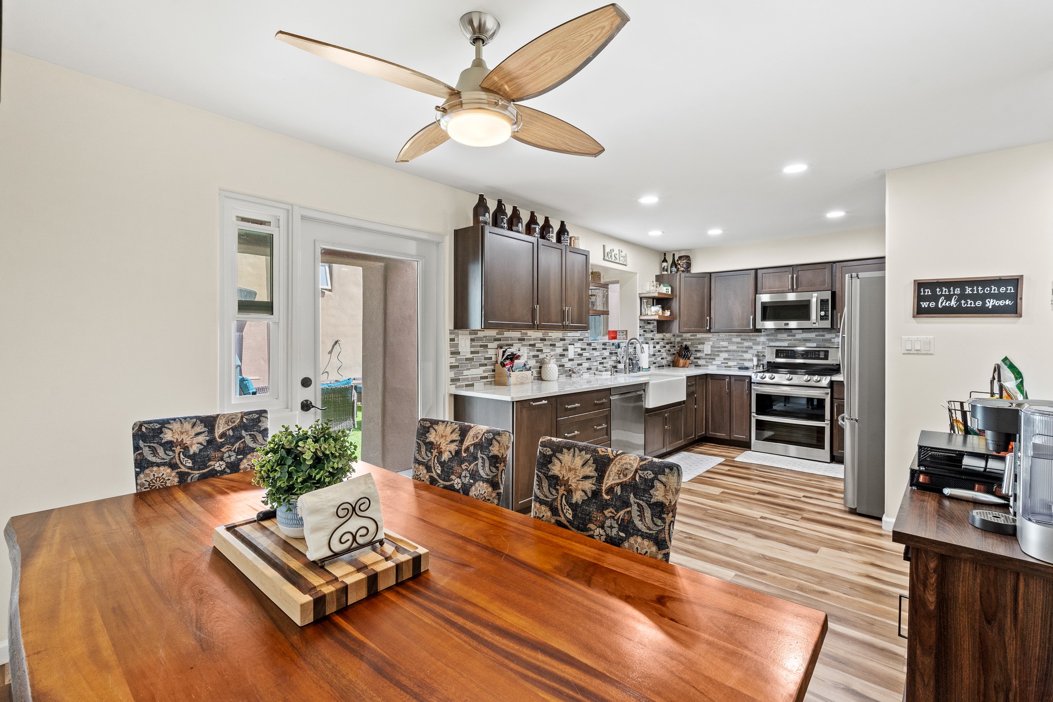 Updated Quemazon Townhome, 3 Bed, 3 Bath, Move-In-Ready, Two-Car Garage, and More! Welcome to 4780 Brisa Del Bosque! The home faces a beautiful canyon filled with pine trees, and you'll appreciate the fresh mountain air as you approach the front of the home. Inside, you'll find a large living room with a sliding glass door that opens onto the enclosed patio so you can continue enjoying the outdoor atmosphere with enjoying your morning cup of coffee or evening glass of wine.A large home office space sits just above the living room, and this could also be used as a formal dining room if desired, as it flows into the kitchen. An updated kitchen rounds out the first floor and features stainless steel appliances, a glass tile backsplash, generous cabinet space and a dining area that leads to the back patio area. Upstairs you'll find the primary suite featuring a walk-in closet and en suite bathroom. The en suite bathroom features dual vanities and a generously sized walk-in shower. Two guest bedrooms and a full bathroom complete the upper level. The back patio area separates the main home from the garage, and it is fully enclosed and covered with pet-friendly turf so your four-legged friends have a comfortable living space, too! A large, two-car garage with storage space completes the package.The sellers plan to review offers on Tuesday, September 23, so schedule your showing today before this opportunity is gone!