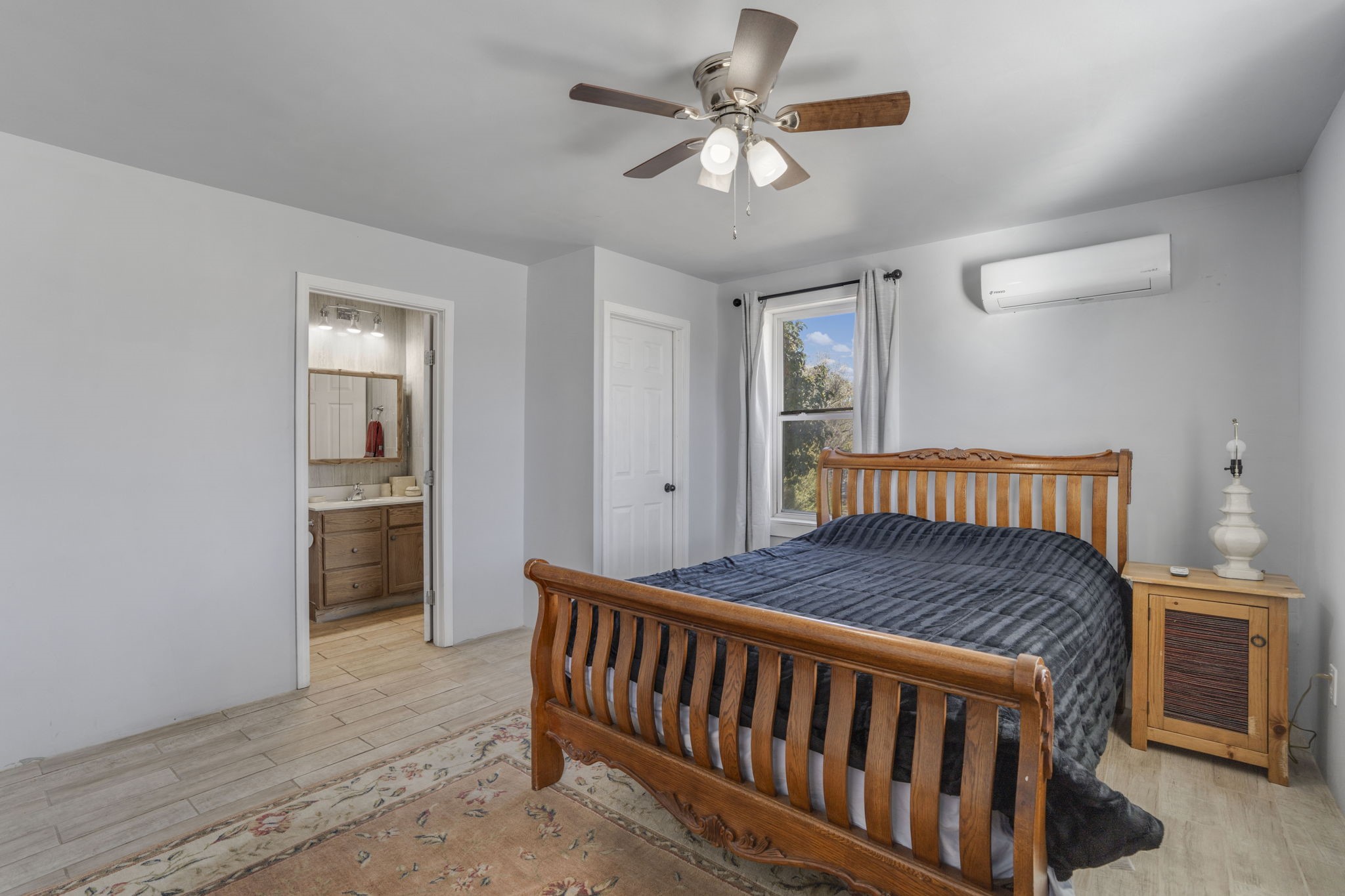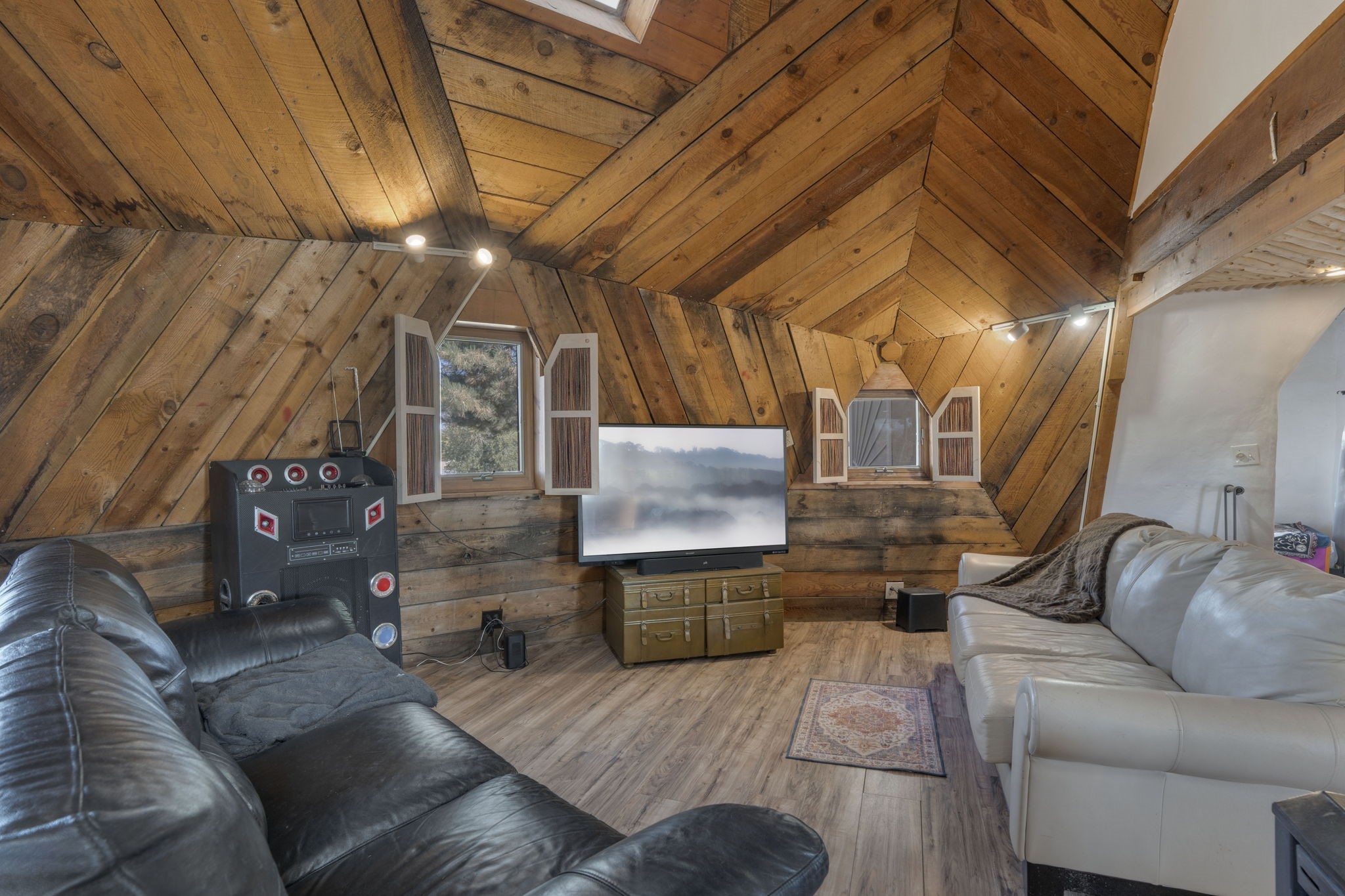 Welcome to your own slice of the Southwest -- a 1,664-square-foot largely adobe home built around a one-of-a-kind geodesic dome, full of character and heart. Set on 2.5 peaceful acres with sweeping Sangre de Cristo mountain views, this property offers the best of rural living, combining comfort, sustainability, and the beauty of the high desert.Step inside and feel the warmth of handcrafted adobe walls, the wooden geodesic dome, exposed vigas, and natural wood and Saltillo tile floors. The primary bedroom features a corner kiva fireplace, creating the perfect cozy retreat on cool evenings. The spacious kitchen is well equipped with stainless steel appliances and plenty of room for gathering, cooking, and sharing meals made from your own garden bounty.The home stays comfortable year-round with a mini-split, woodstove, and solar hot water, while a greywater irrigation system helps nourish your land.Outside, you'll find everything you need for a working mini-ranch or hobby farm -- stables for eight horses with water and electricity, an arena, and ample storage for tack, tools, and feed. The private well ensures reliable water, and there's space to expand your gardens or add more animal pens. Currently, the homestead is happily shared with turkeys, chickens, and mini goats, all thriving under the wide New Mexico sky.This property isn't just a home -- it's a lifestyle. A peaceful haven where you can slow down, breathe deep, and live in rhythm with the land.