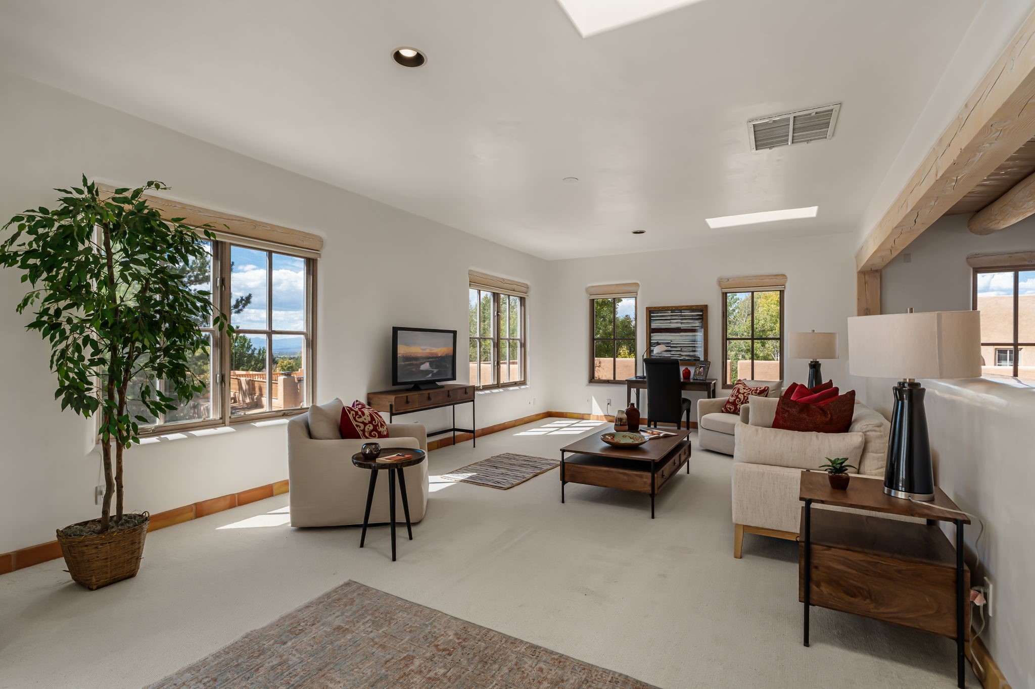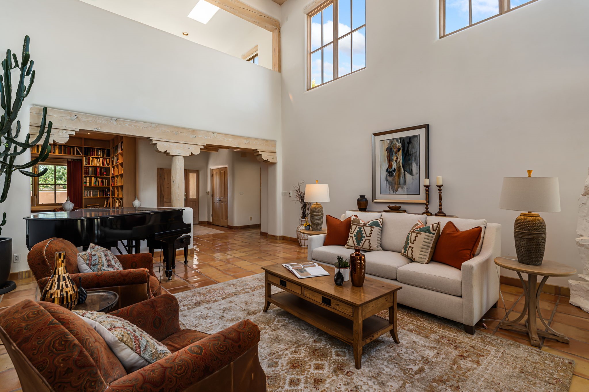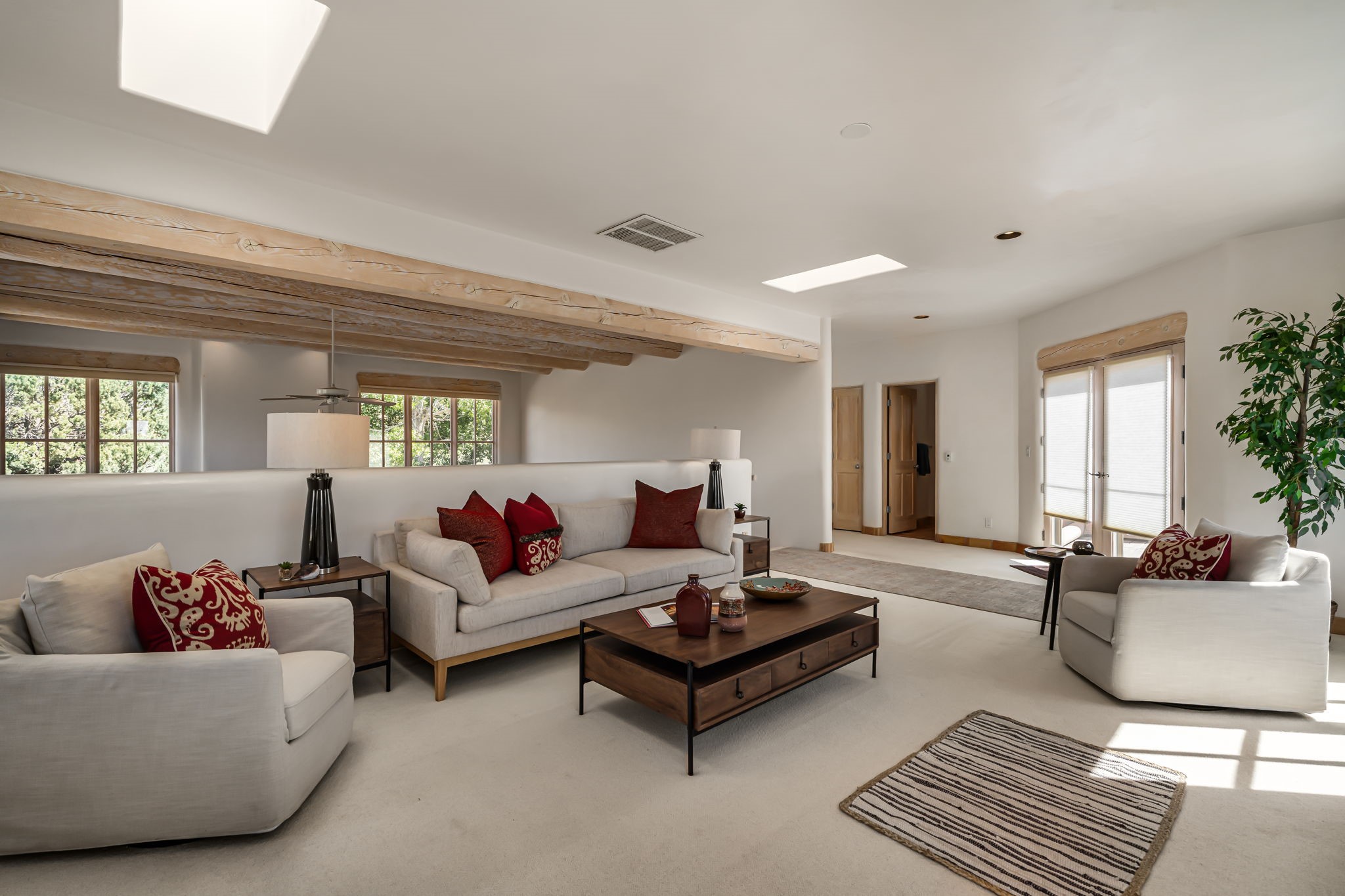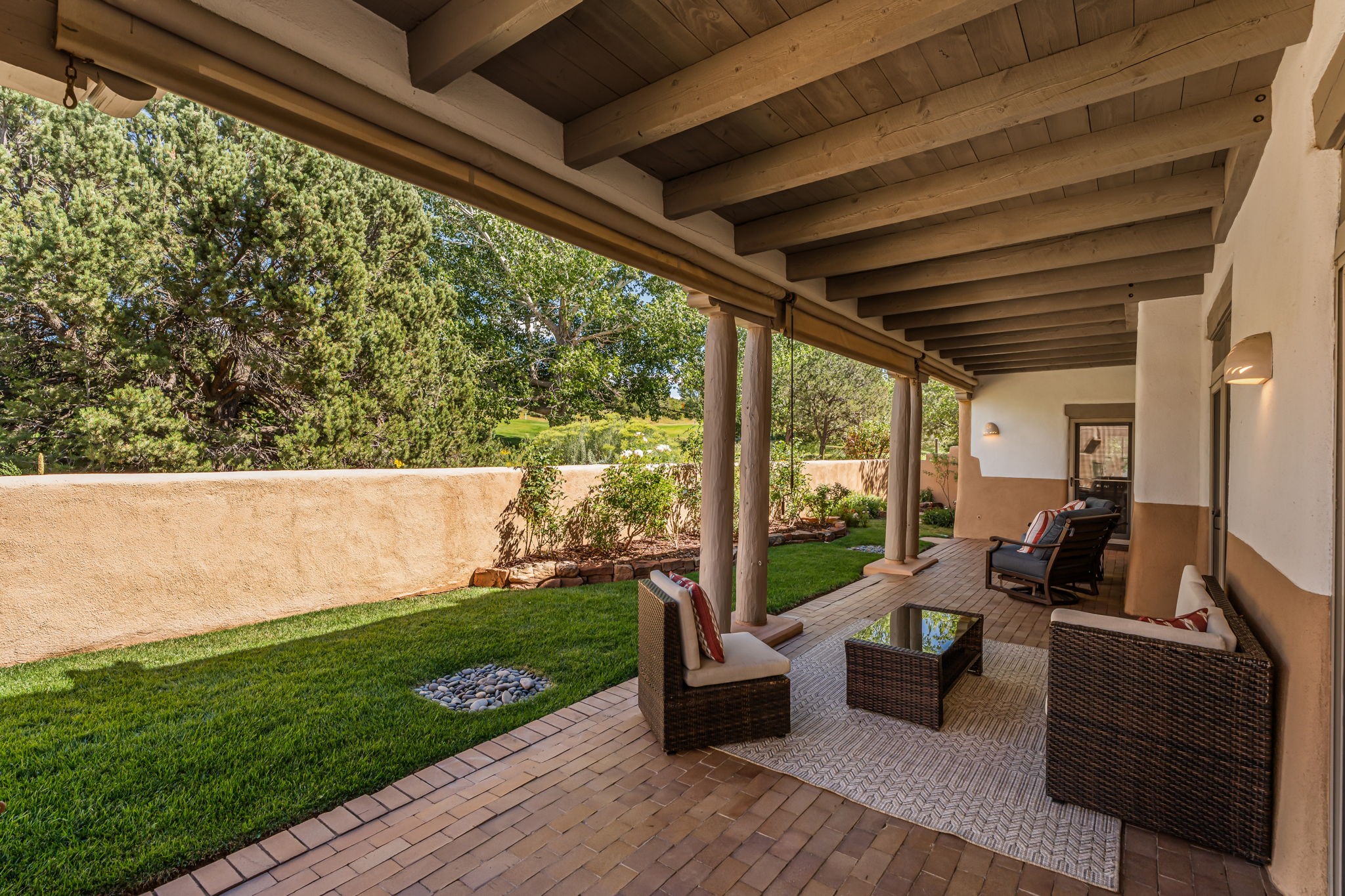 One of the larger and more beautiful units available in Quail Run, unit 632 is bathed in natural light from the double-height ceilings facing east toward the Sangre de Cristo Mountains. This particular unit has 3 very generous bedrooms, each with its own bathroom, in addition to a powder room available to guests.The living room accommodates a grand piano or multiple seating areas, and is complemented by an adjacent library with custom-built bookshelves.The kitchen features an updated appliance wall with high-end built-ins, including a Sub-Zero refrigerator with bottom drawer freezer. Custom shelving maximizes storage in the walk-in pantry. The generous master bedroom with its own door out to the east portal, has a soaking tub and two walk-in closets in its en-suite bathroom.The second downstairs bedroom includes a retrofitted accessible bathtub - ideal for guests or aging in place.Upstairs, a spacious loft area overlooks the living room and leads to a private bedroom, full bath, and a balcony perfect for sunset viewing.The main east portal has a bank of established rose bushes producing an abundance of blooms that can be cut for bouquets. With access to the kitchen area, French doors to the living room, and a sliding door into the master bedroom, the main portal is large enough for multiple sitting or eating areas.The west patio is a custom designed Zen garden with enough space to sit or eat under a traditional southwest portal. A beautiful house with all the amenities that Quail Run has to offer: a clubhouse with extensive exercise rooms, equipment, and classes, a swimming pool for laps and a warm therapy pool, two hot tubs, entertainment, restaurant, activities, 9 holes of golf, tennis and pickle ball courts, maintenance crew on call, housekeeping services available, all exterior maintenance taken care of.Come see this particular unit - everyone who does loves it for its space, light and orientation within the Quail Run complex.