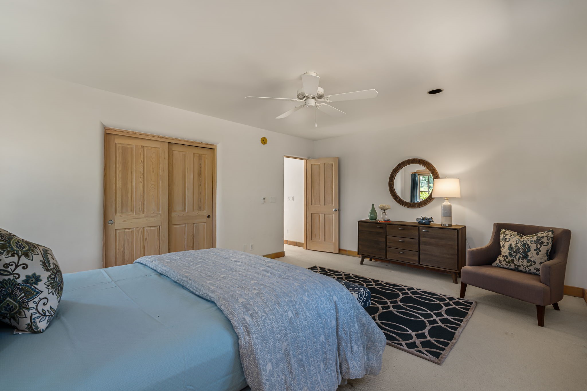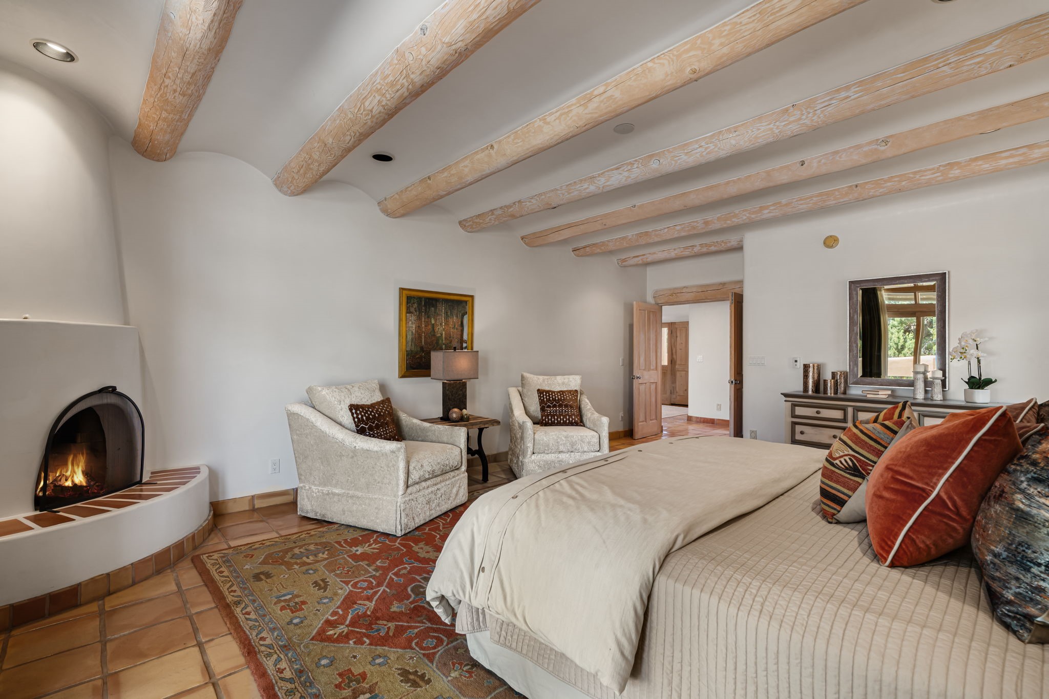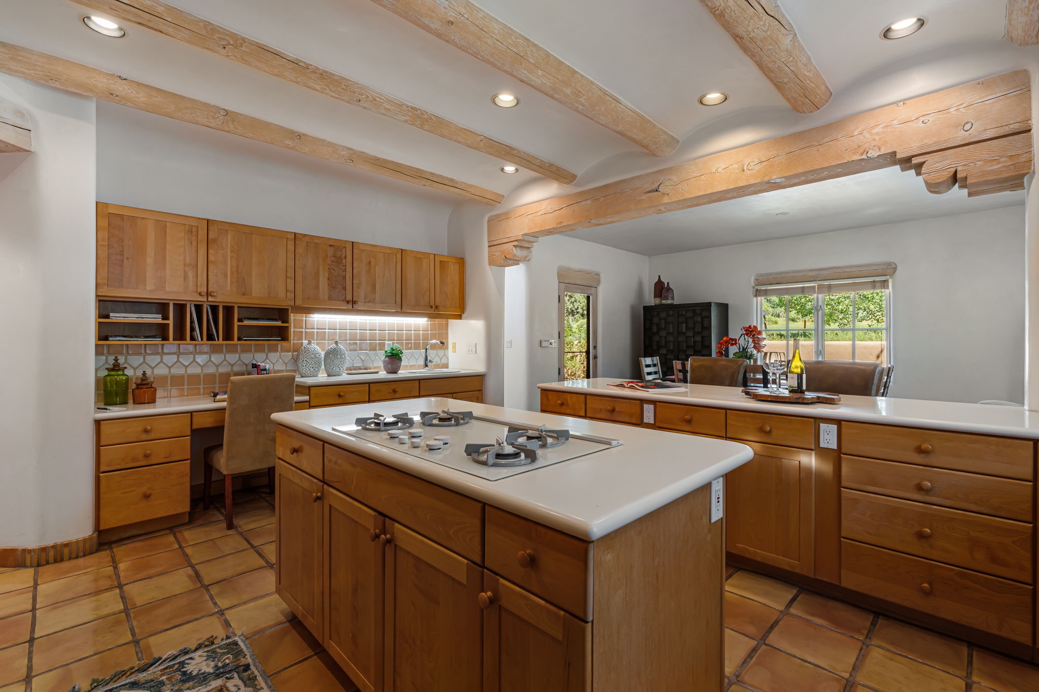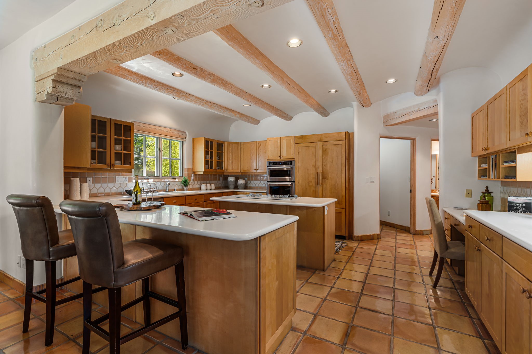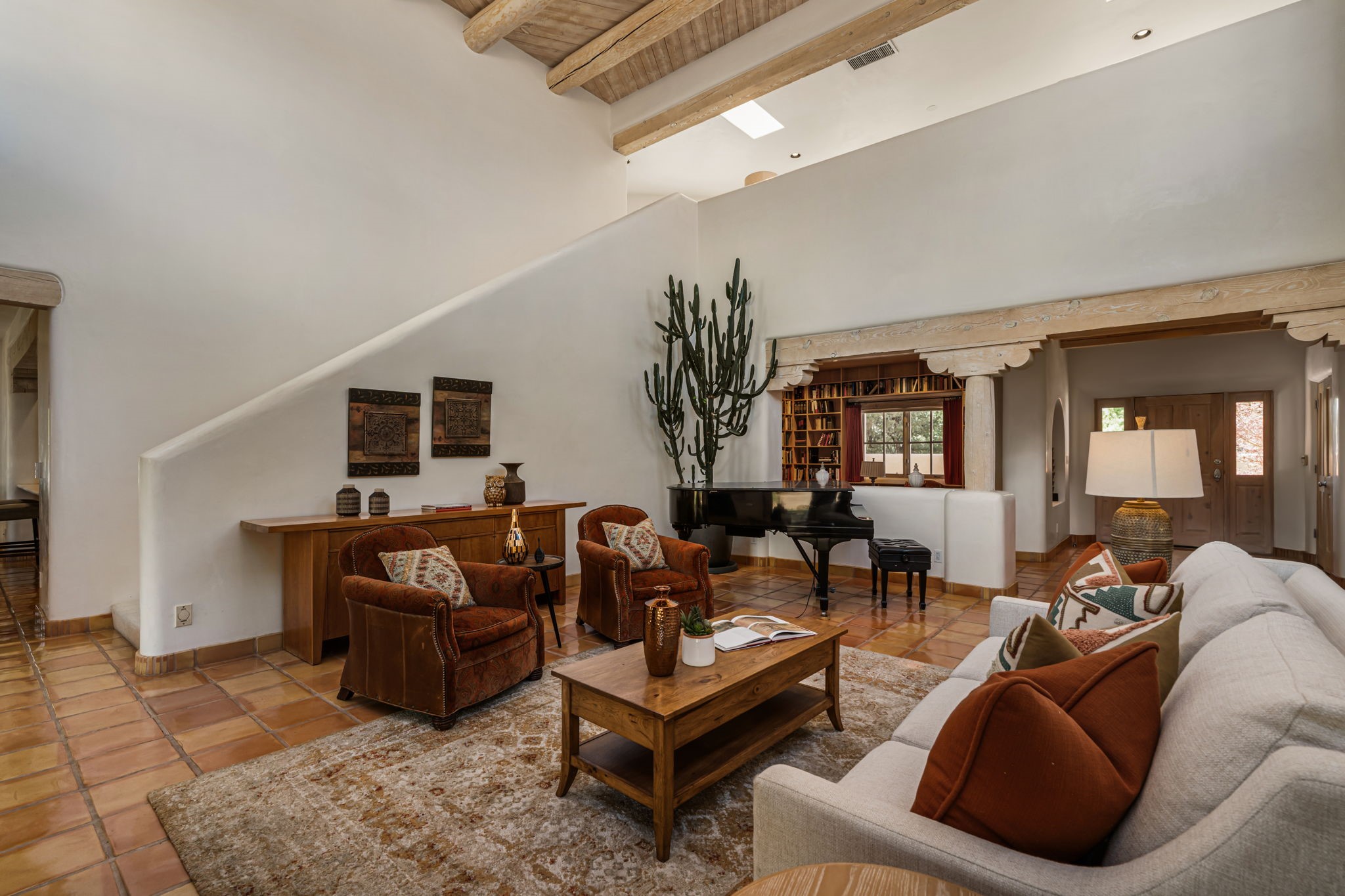 One of the larger and more beautiful units available in Quail Run, unit 632 is bathed in natural light from the double-height ceilings facing east toward the Sangre de Cristo Mountains. This particular unit has 3 very generous bedrooms, each with its own bathroom, in addition to a powder room available to guests.The living room accommodates a grand piano or multiple seating areas, and is complemented by an adjacent library with custom-built bookshelves.The kitchen features an updated appliance wall with high-end built-ins, including a Sub-Zero refrigerator with bottom drawer freezer. Custom shelving maximizes storage in the walk-in pantry. The generous master bedroom with its own door out to the east portal, has a soaking tub and two walk-in closets in its en-suite bathroom.The second downstairs bedroom includes a retrofitted accessible bathtub - ideal for guests or aging in place.Upstairs, a spacious loft area overlooks the living room and leads to a private bedroom, full bath, and a balcony perfect for sunset viewing.The main east portal has a bank of established rose bushes producing an abundance of blooms that can be cut for bouquets. With access to the kitchen area, French doors to the living room, and a sliding door into the master bedroom, the main portal is large enough for multiple sitting or eating areas.The west patio is a custom designed Zen garden with enough space to sit or eat under a traditional southwest portal. A beautiful house with all the amenities that Quail Run has to offer: a clubhouse with extensive exercise rooms, equipment, and classes, a swimming pool for laps and a warm therapy pool, two hot tubs, entertainment, restaurant, activities, 9 holes of golf, tennis and pickle ball courts, maintenance crew on call, housekeeping services available, all exterior maintenance taken care of.Come see this particular unit - everyone who does loves it for its space, light and orientation within the Quail Run complex.