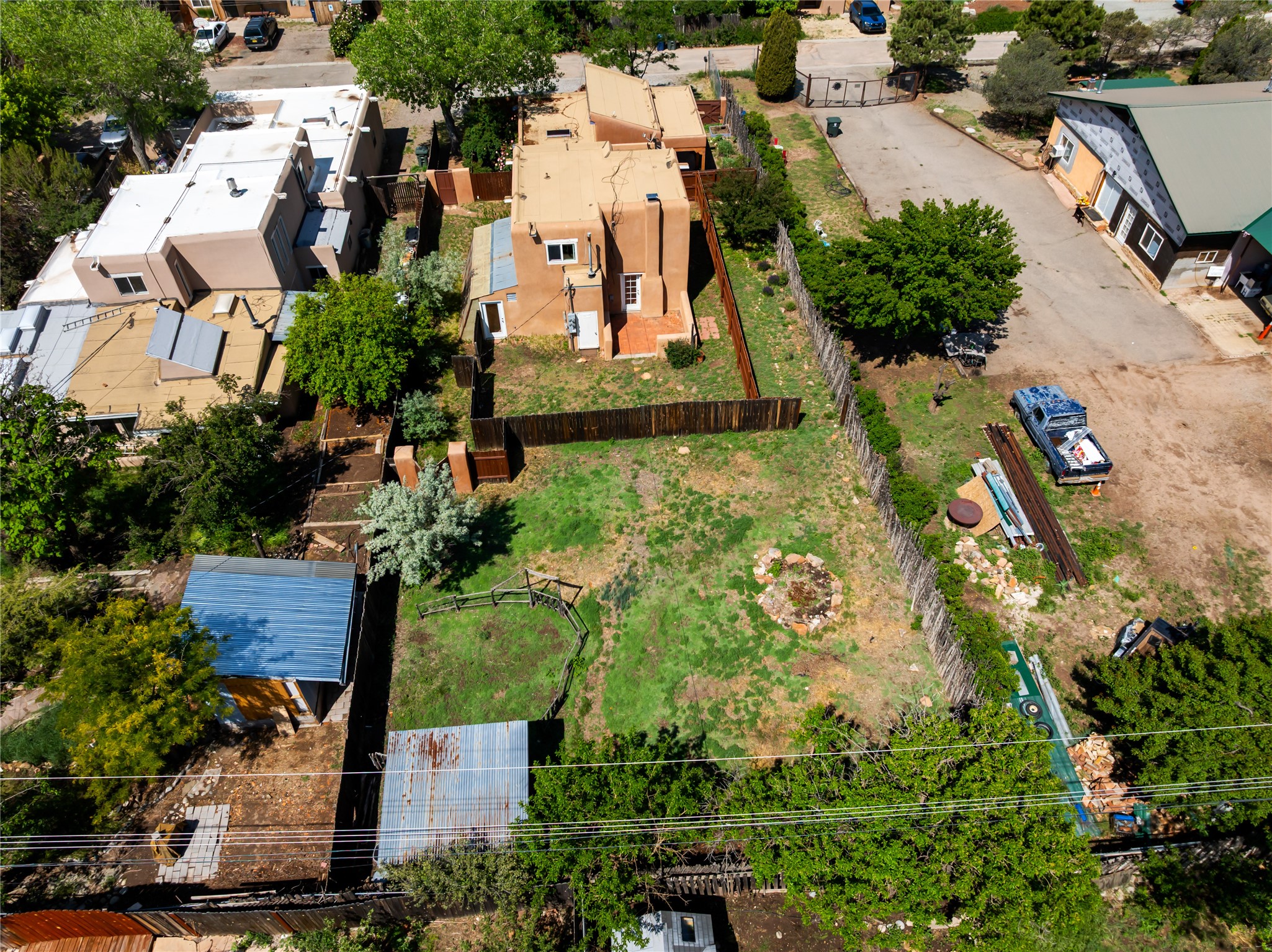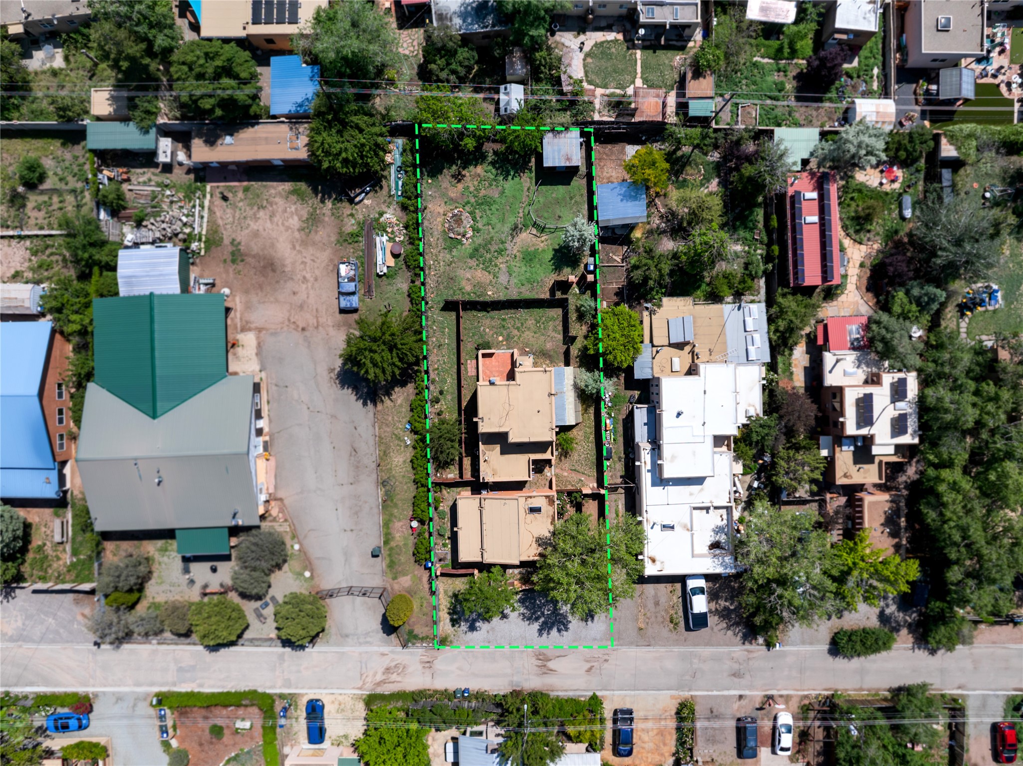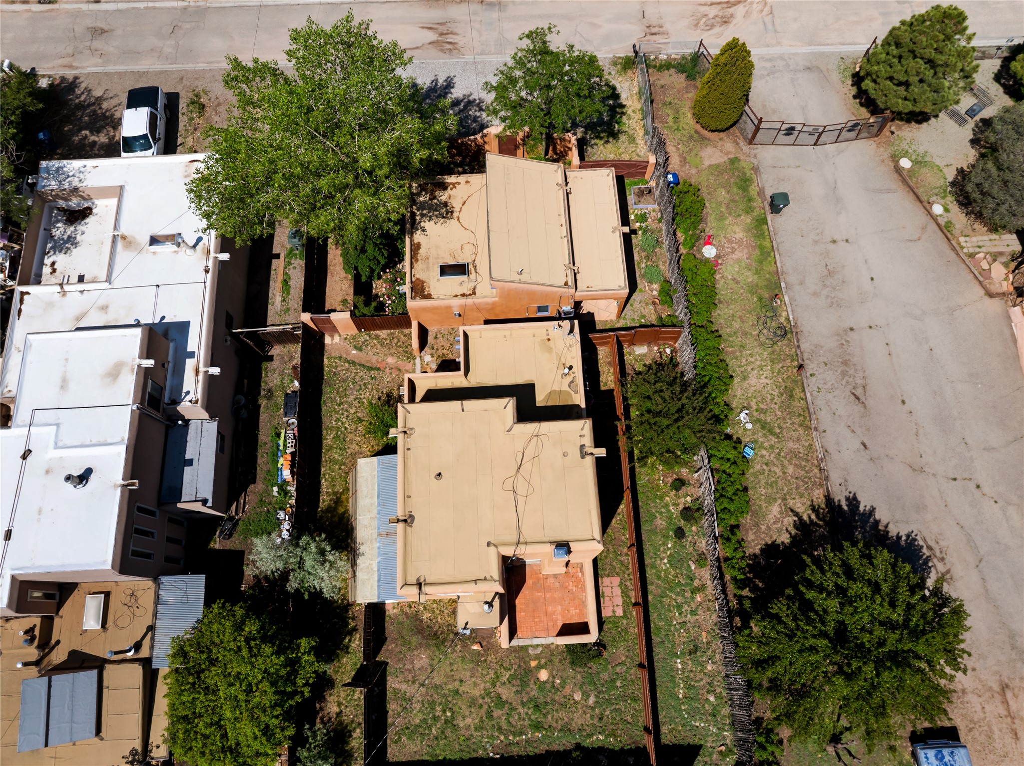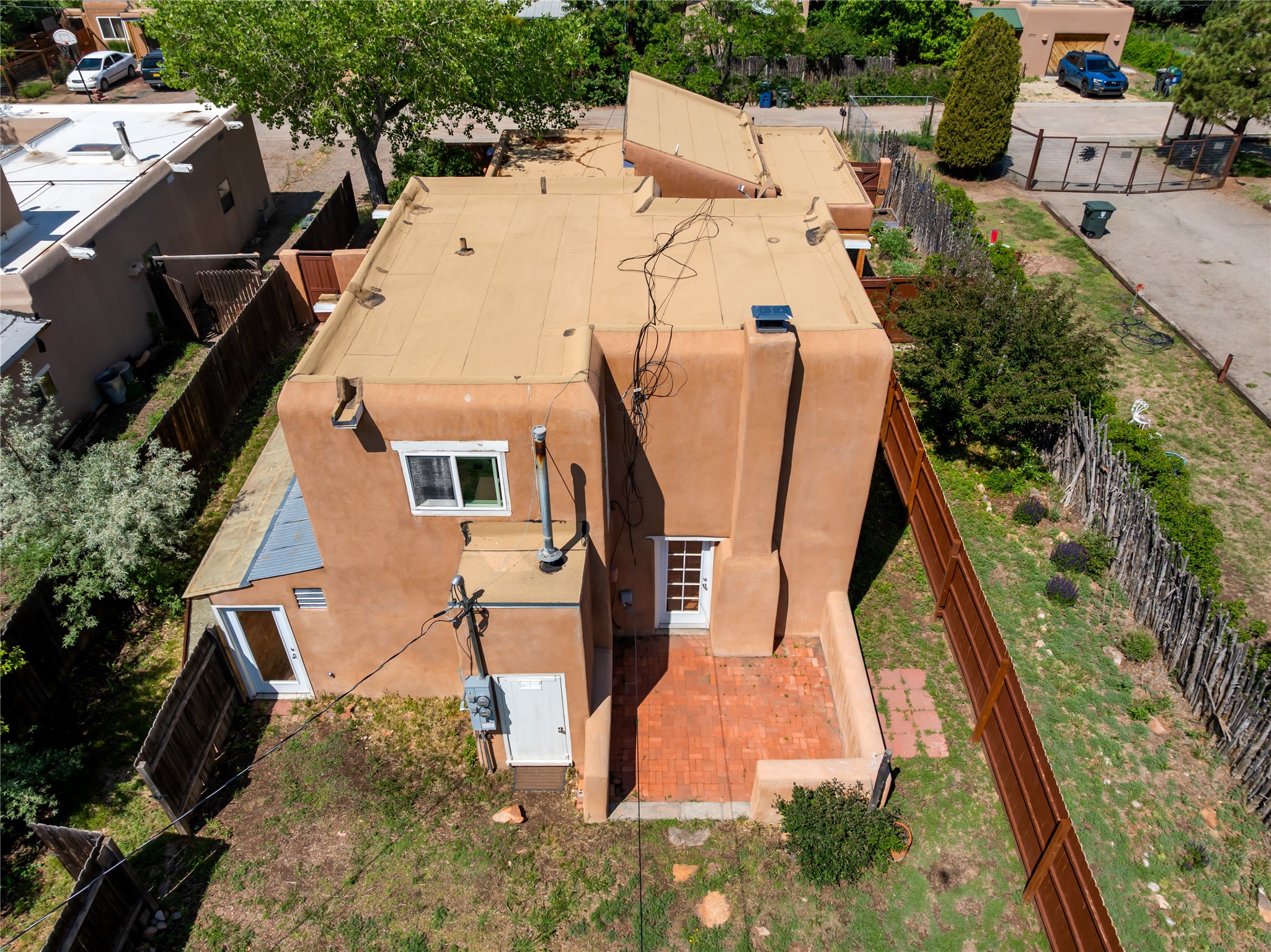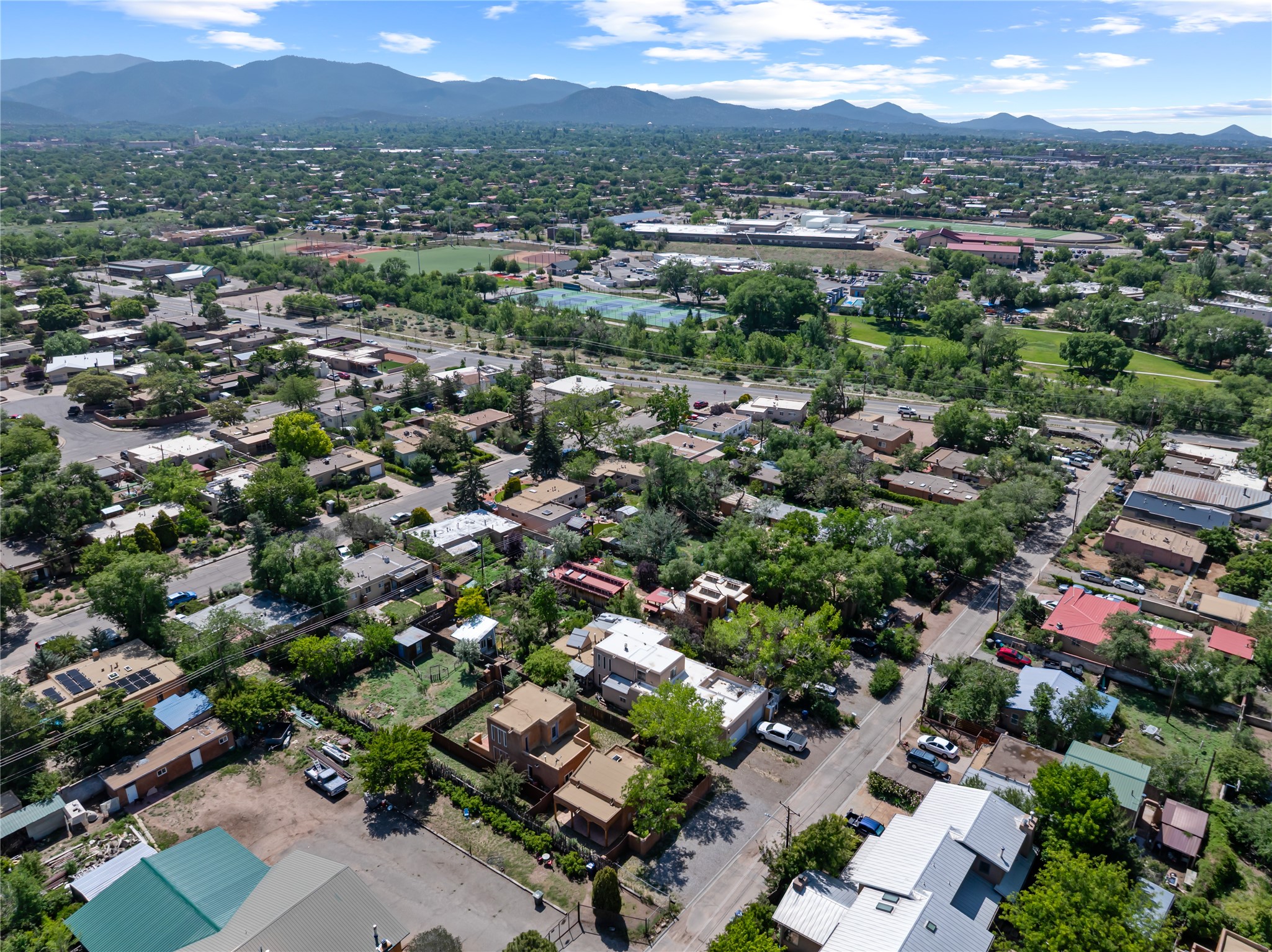 Located only 1.8 miles from the Santa Fe Plaza, this 4-bedroom house and guest house offers both privacy and convenience on a generous lot with future building potential. At the end of a quiet dead-end lane, the home enjoys direct access to beloved community amenities, including Frank Ortiz Dog Park, the Santa Fe River Trail, and Alto Park with its pool and tennis courts. The main residence features authentic adobe construction on the ground floor and custom design details including vigas, handcrafted solid-wood cabinetry, striking sunrises over the Sangre De Cristo Moutnains and sunset views from a private deck.A separate passive-solar adobe casita enhances the property's versatility, ideal for guests, extended family, or a private studio; it includes a gas fireplace, cast-iron soaking tub, tile flooring, clerestory windows, sleeping loft, and its own fenced yard. A gated front courtyard and ample off-street parking complete this rare offering. With its blend of traditional charm, thoughtful details and location, this home is truly a Santa Fe gem.
