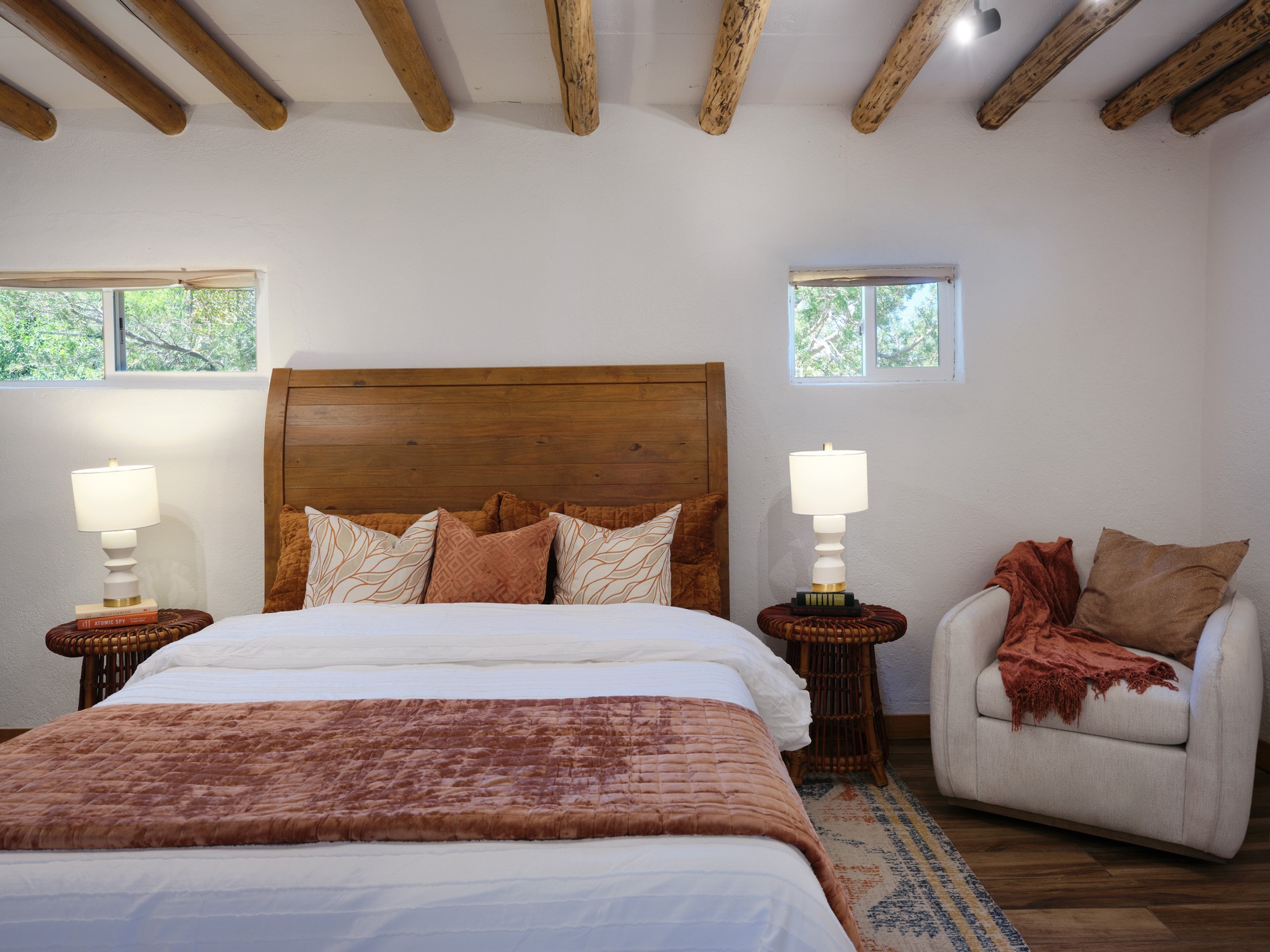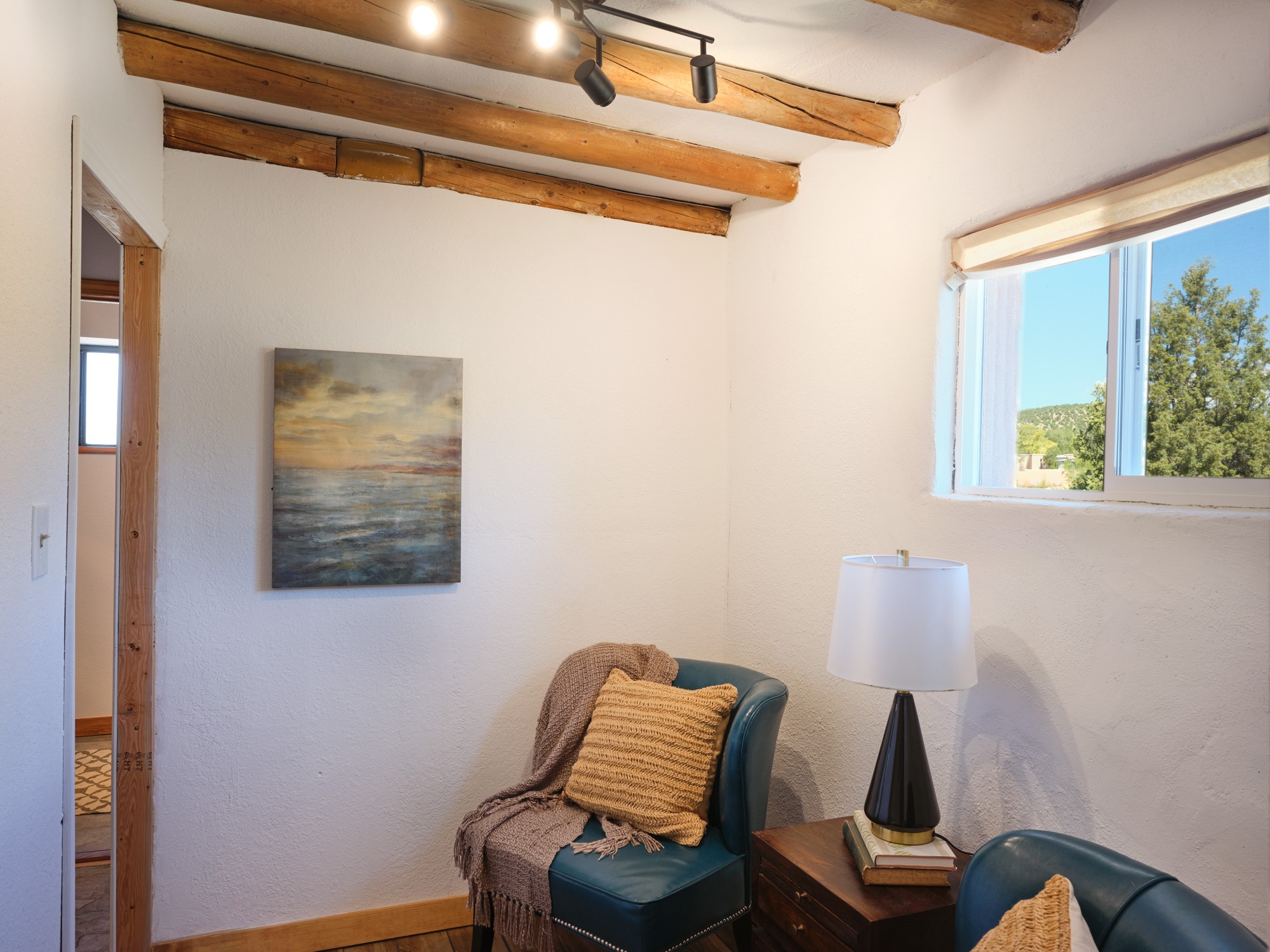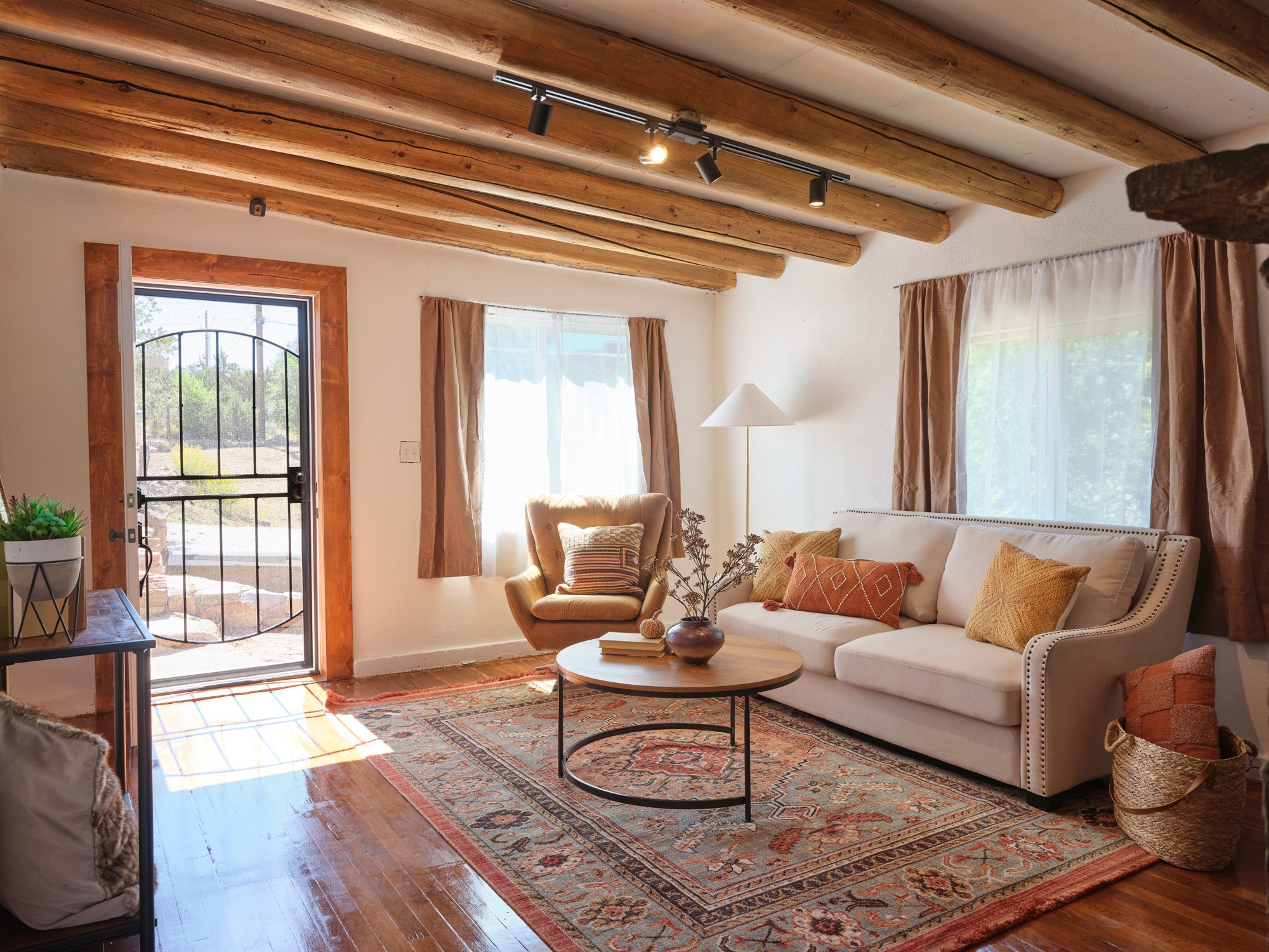 Nestled in one of Santa Fe's most desirable neighborhoods, this 2 bedroom, 1 bathroom home sits on one of the largest lots currently available in the area at .42 acres. This rare opportunity provides endless options add a casita, build another home, create a garage, or design outdoor living spaces that take full advantage of the hillside setting.The existing home is filled with Southwestern character, featuring viga ceilings and a cozy fireplace. Natural light flows through the inviting floor plan, offering a comfortable balance of charm and functionality.Step outside to terraced grounds with room to expand and enjoy stunning views of the Sangre de Cristo Mountains. located near St. John's College, The Santa Fe Watershed, Santa Fe Ski Basin, Preparatory school, Cristo Rey Church and several elementary schools. Canyon Road, galleries, shops, and 5 minutes from downtown Santa Fe Plaza.