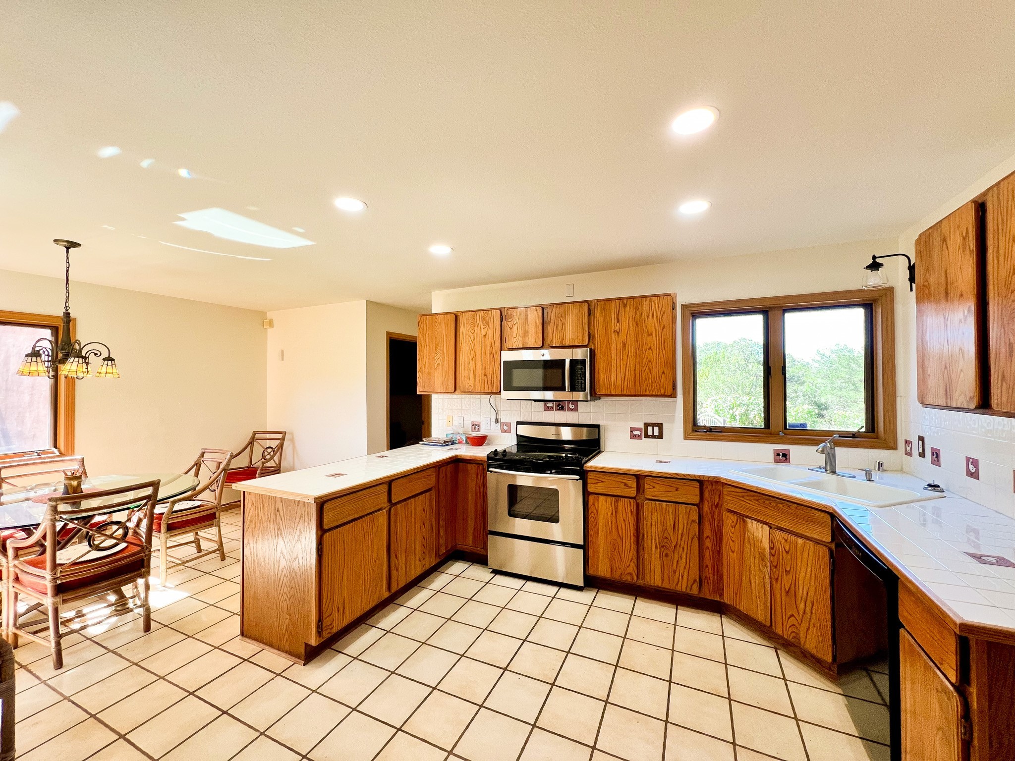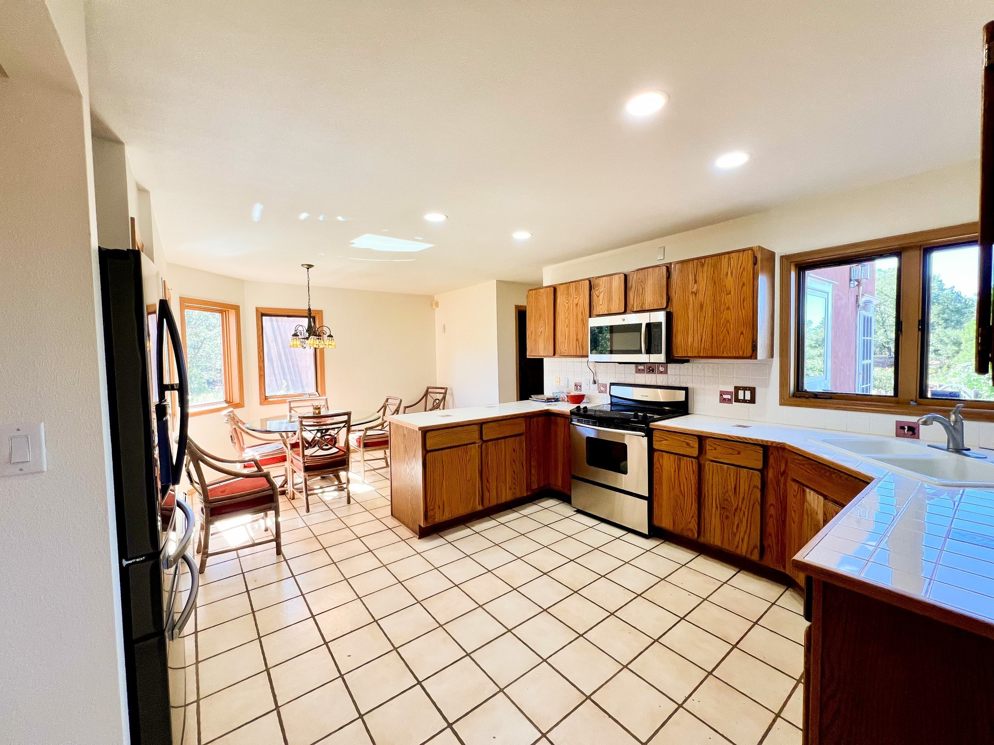 Set on nearly 6 acres in the coveted Hondo Hills, this property combines privacy, views, and versatility just minutes from town. The home offers an airy two-story living room with a wood-burning fireplace, formal dining room, and a spacious kitchen with a breakfast area framed by mountain views. The primary suite is generous in scale with an oversized bath. Two additional bedrooms plus a bonus room with a private entrance offer flexible options for an office, studio, den, or guest space. An attached two-car garage provides everyday convenience. Outdoors, the setting is equally impressive. Pinon and juniper trees surround the property, which is cross-fenced and gated at the driveway. Equestrian facilities include a barn, tack room, and pipe corral with a separate driveway. A large storage building with roll-up door adds further utility, and a deck with gazebo provides the perfect perch to take in Jemez Mountain sunsets. Community water through Sunlit Hills and a recently updated septic system add peace of mind. This well-maintained property, with a new TPO roof, offers immediate comfort with room to customize and make it your own. Enjoy the peace and seclusion of Hondo Hills while being only minutes to Santa Fe favorites like Harry's Roadhouse and El Gancho. A rare opportunity to own a private retreat with space to live, work, and ride--without giving up city access. Schedule a showing today!
