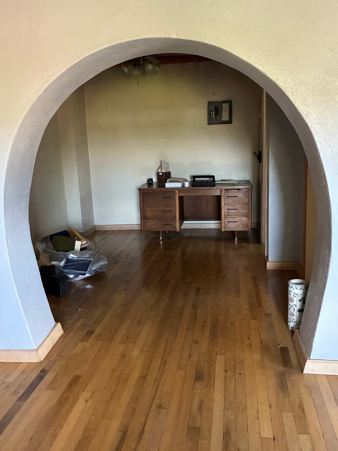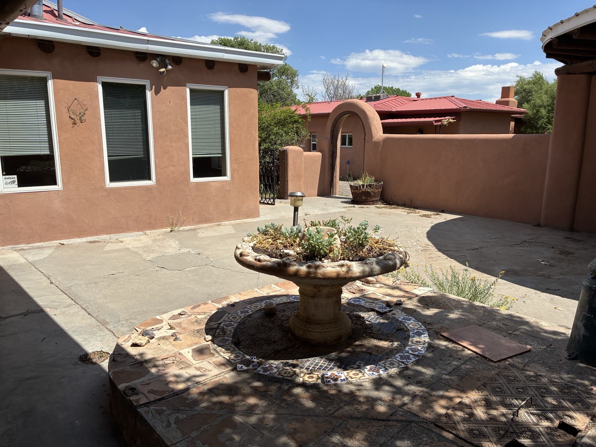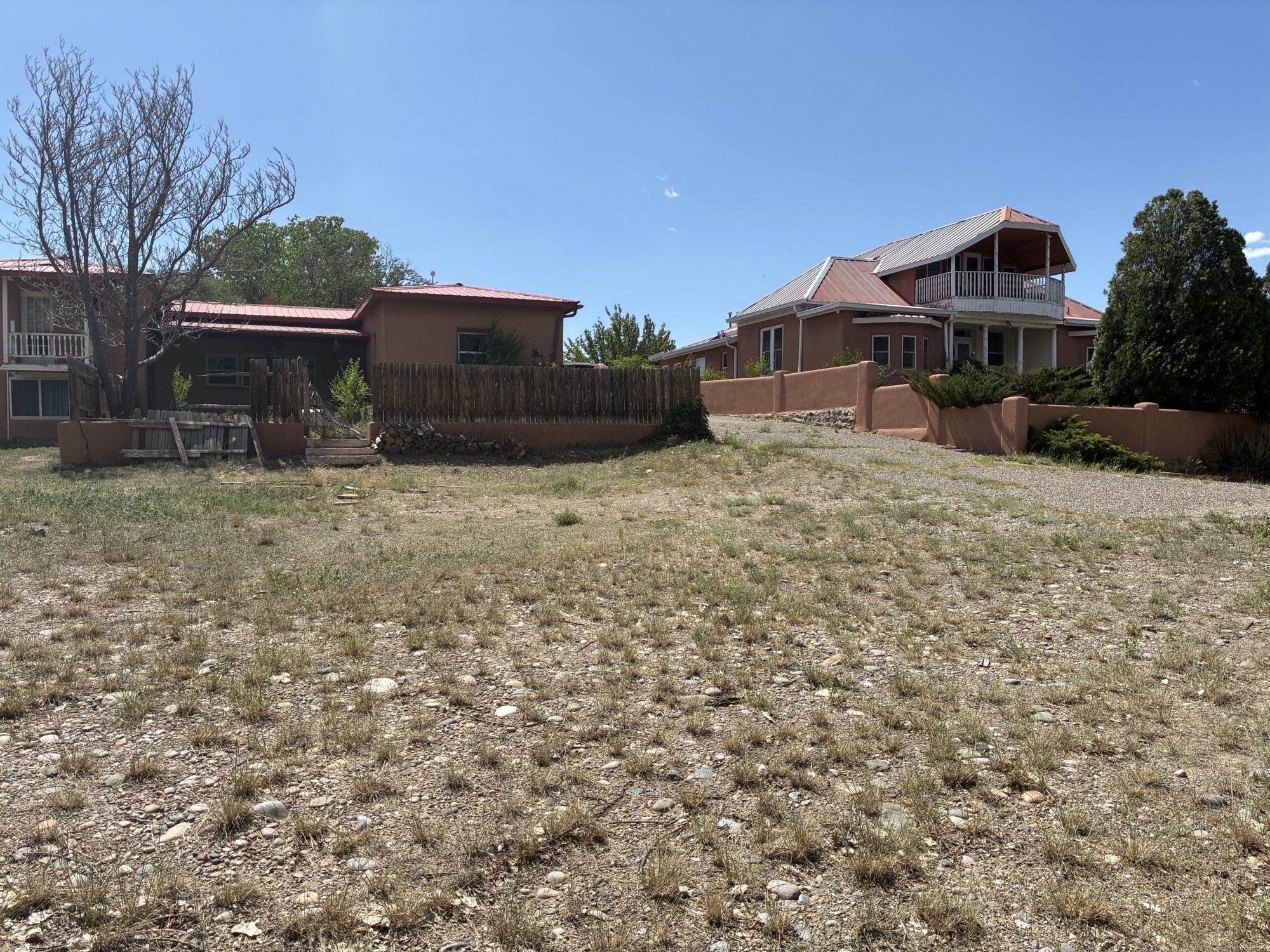 Spacious 6 bedroom, Northern New Mexico-style home with a casita on a little over an acre. The main home, in its original section, dates back to 1913. Home has a formal living and dining area. Home has vigas, wood floors, and a kiva-style fireplace. 2 bedrooms along with 3 bathrooms are downstairs. One of the upstairs bedrooms includes a balcony, perfect for enjoying your morning coffee or simply relaxing.. This home offers plenty of room for you and your family with a separate casita that can be turned into a private quarters or guest home. The guest home is approx. 1,298 square feet, which includes a kitchen, 2 bedrooms, a 3/4 bathroom, and wood flooring with vigas. The property has an oversized 2-car garage that has been upgraded to electric. There is also a 3-car carport for extra car space. The property contains a gated, paved driveway and has a zoning of ROI, which is residential, institutional, and office, and can be used for multiple purposes. There is a stream that runs through the property. The spacious yard is ideal for cookouts and outdoor gatherings.