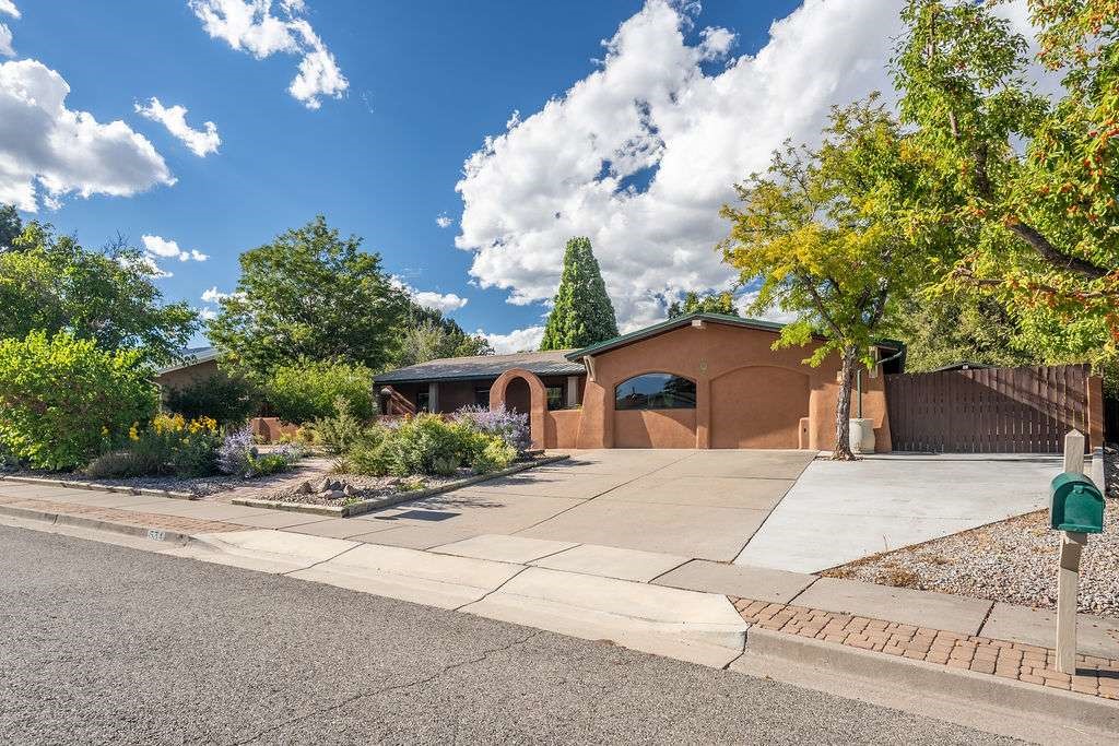Gorgeous single-level home with an open floor plan and numerous updated architectural finishes. Property includes spacious bedrooms and office, expansive kitchen, and large great room with built-in bar. The primary bedroom has an en suite bath and walk-in closet. Additionally, property has an oversized detached garage and a separate storage shed for your treasures. Mature landscaping with cherry and apple trees is included! Amenities include stainless steel appliances, two fireplaces, convenient location, radiant floor heat, central air conditioning, private fenced back yard, two living room areas, large laundry room with more storage, private walled-off patio adjacent to primary suite with fire pit. Landscaped yard with irrigation system and rainwater collection features. Front driveway gate closes off access to garage and back patios. Best of all, no HOA dues.