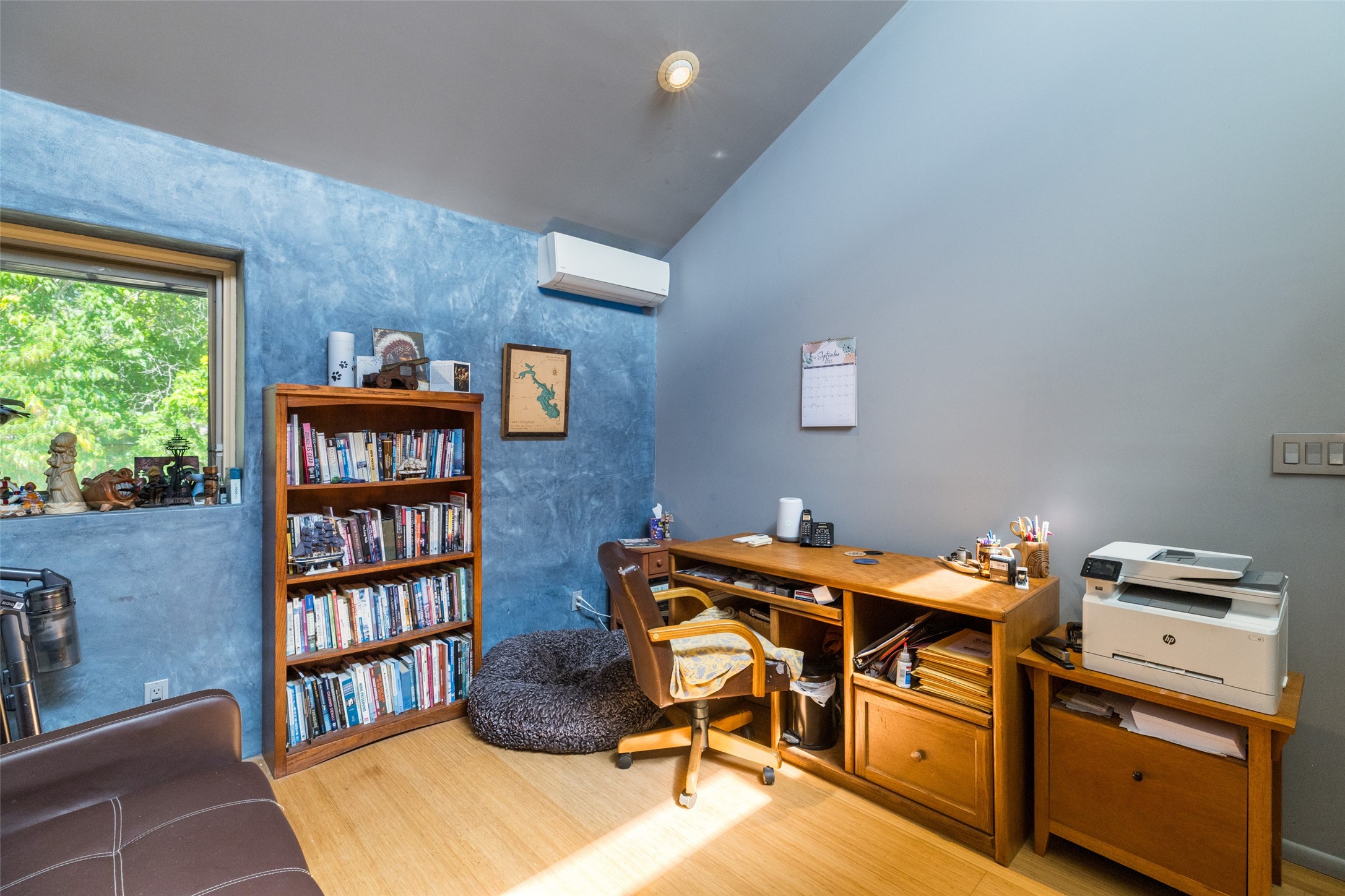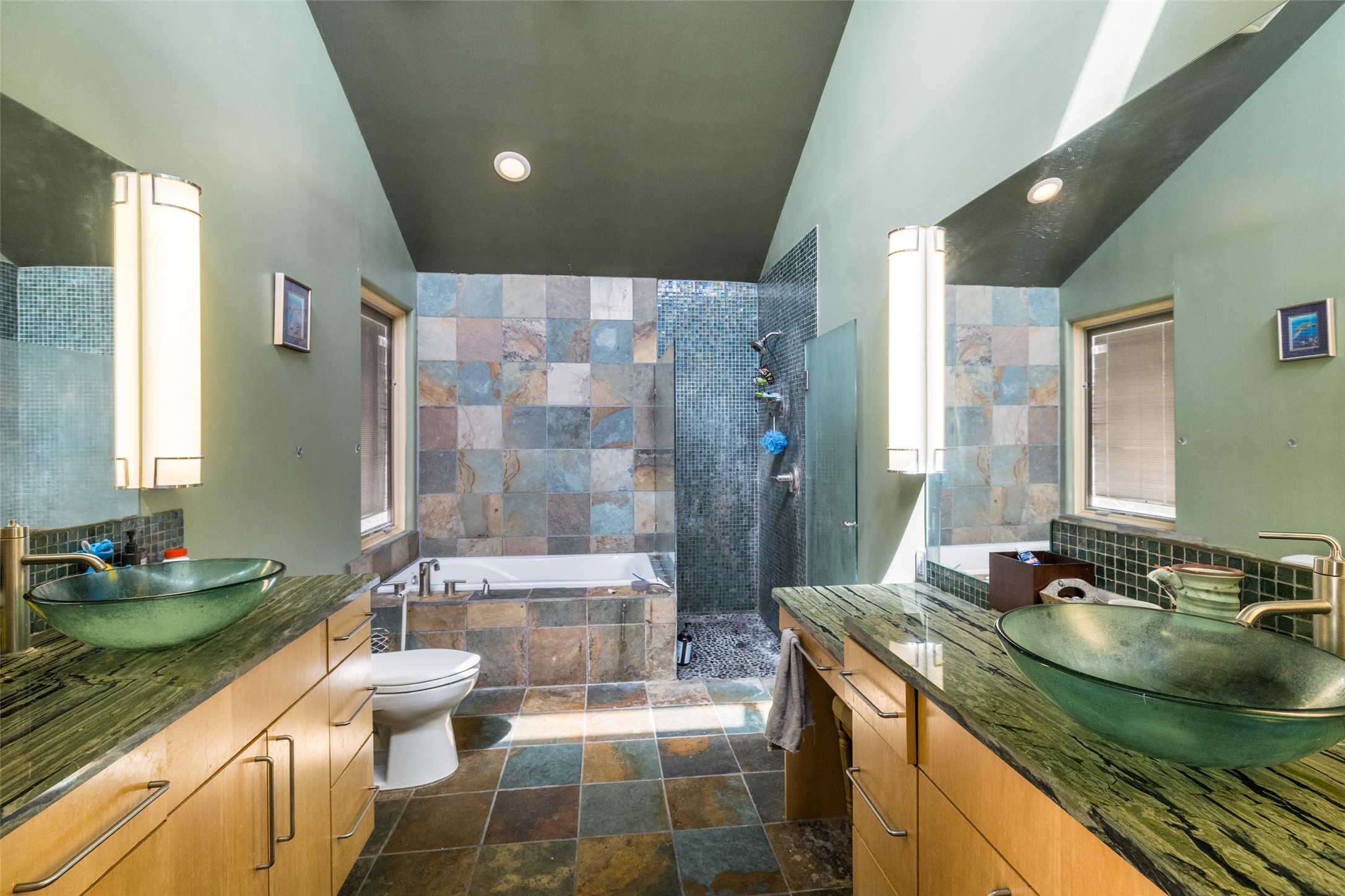 Located within the Nambe/Pojoaque greenbelt, this unique property sits on over an acre of land w/ WATER RIGHTS & a valve for flood irrigation. Enjoy mature cottonwoods, Osage orange, apple, apricot, & pear trees in a lush, meadow-like setting. The Trombe wall in the living area & bedroom utilizes passive solar principles! Other features include radiant floor heat, mini splits, a durable metal roof, bamboo & slate tile flooring, granite countertops, & wood-beamed ceilings. The open kitchen flows seamlessly into the great room, while the primary suite includes a huge walk-in closet & private patio. Use the 840 sq ft (80 ft X 21ft) heated garage space to park up to four cars or to create a unique studio or flex area. Don't miss this opportunity!