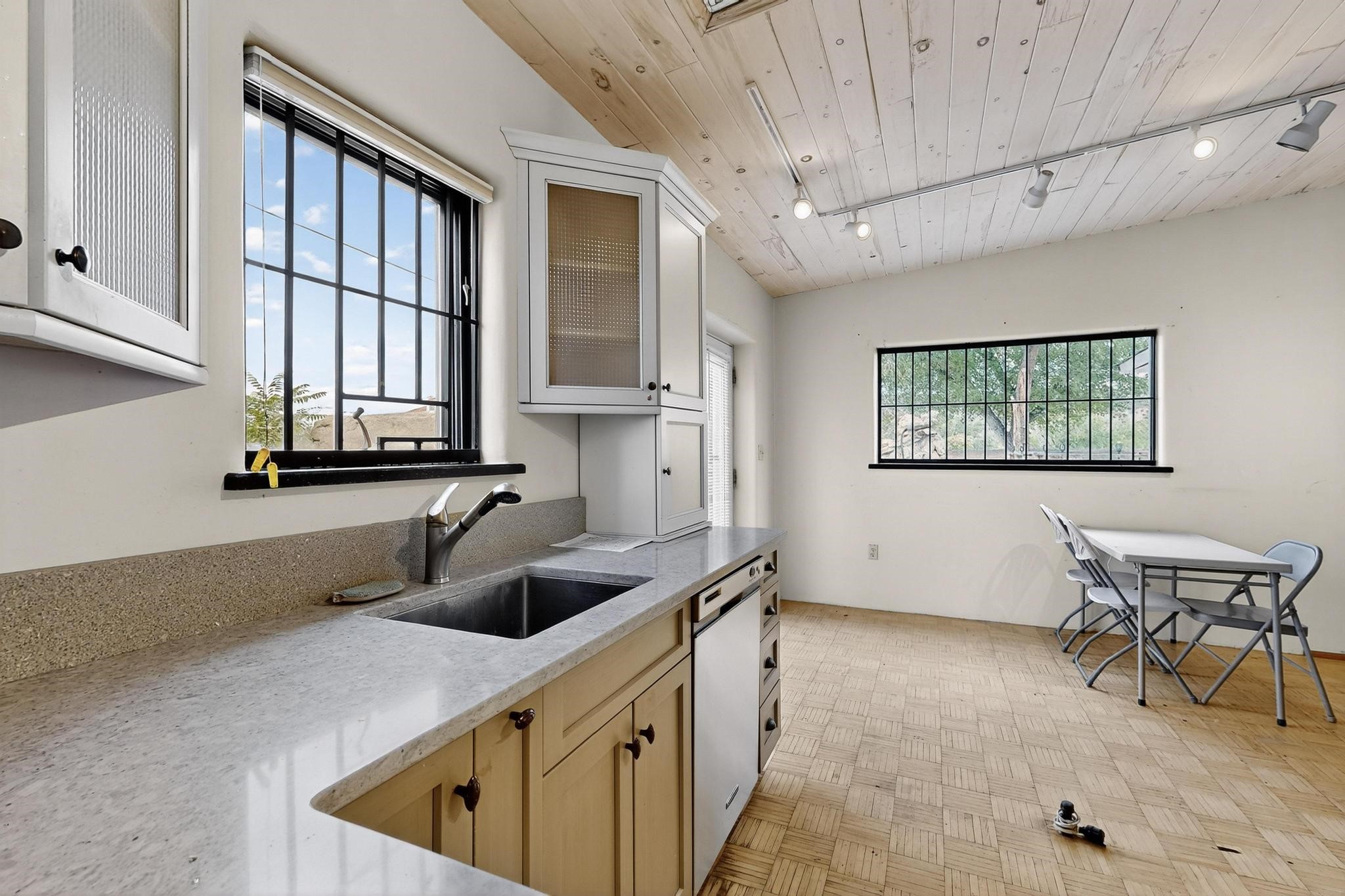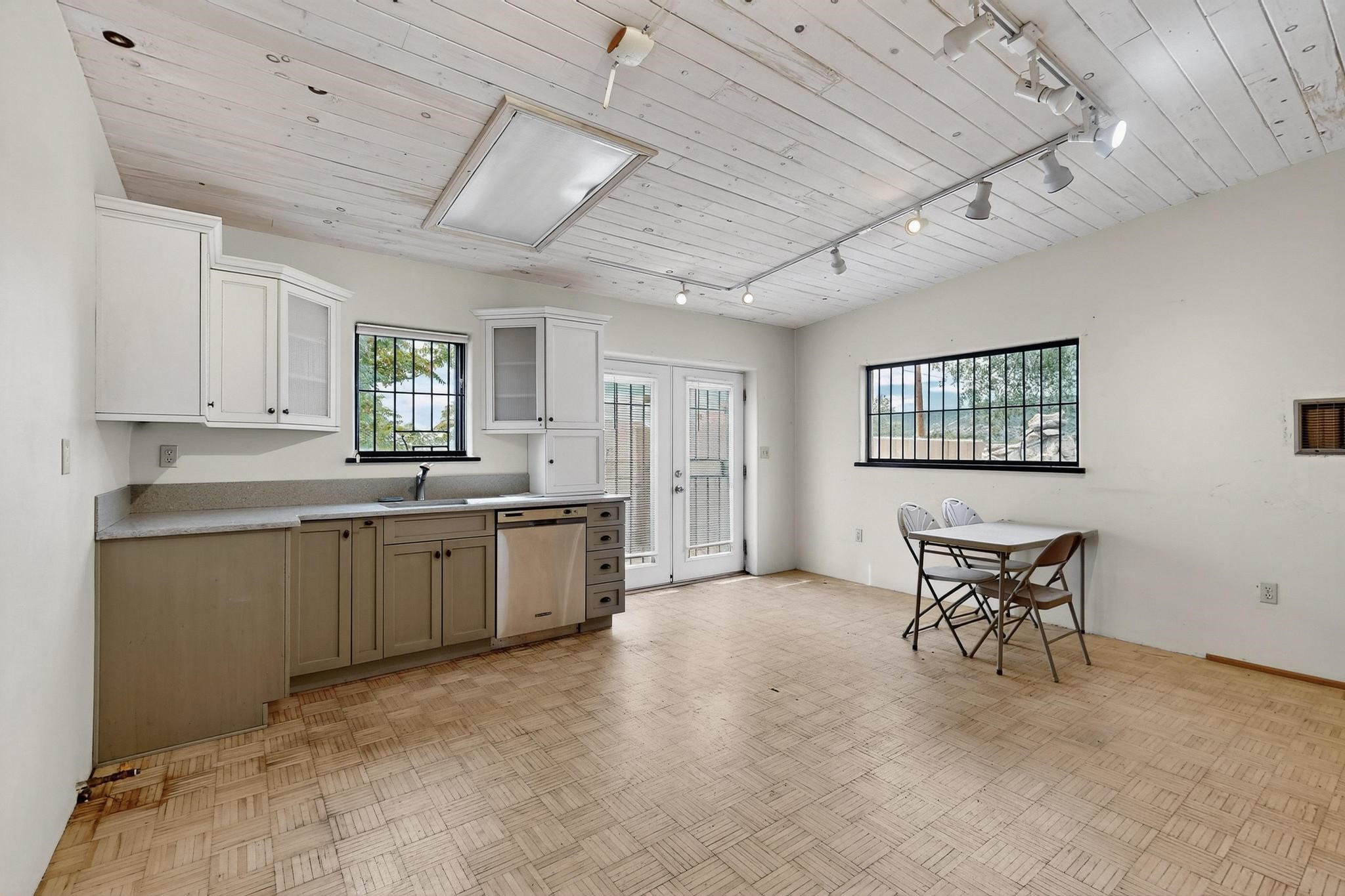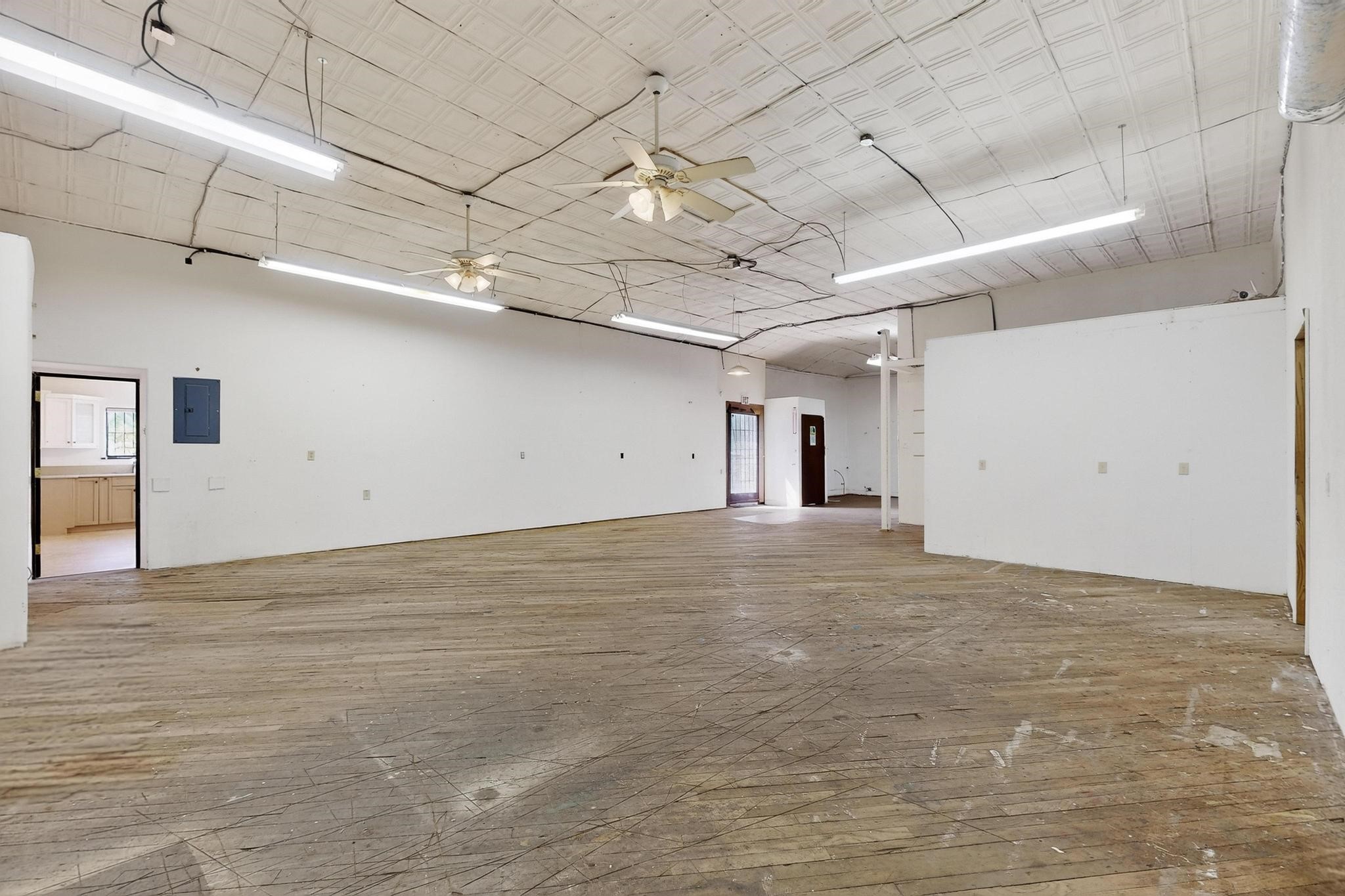 Historic Adobe Charm, home and workshop studio. The original 2950 sq ft. Adobe was built in 1910 as a community dance hall. The walls are 2' thick adobe with the ceiling height of 12'. The tin roof and tin ceiling were delivered on the old Chile line Railroad. This unique adobe building in Northern New Mexico has a rich history, having served various purposes over the years. From a Dancehall and a rollerskating rink in the 1950s to a pub in the 1960s and 1980s it has seen it all. More recently, it housed a custom cabinet shop with a show room, and then a winery. Over the past century, additional rooms have been added increasing the livable area to 5427 ft.. As well as an Adobe wall enclosed patio of 1650 ft. This home could be used as a live workspace with plenty of room to spread out. Located just east of the Rio Grande and east of the Black Mesa with its many petroglyphs, bountiful orchards, and thriving Apple production. It's amazing to think about all the stories these walls could tell, and I'm sure the new owners will be ready to make their own history here.