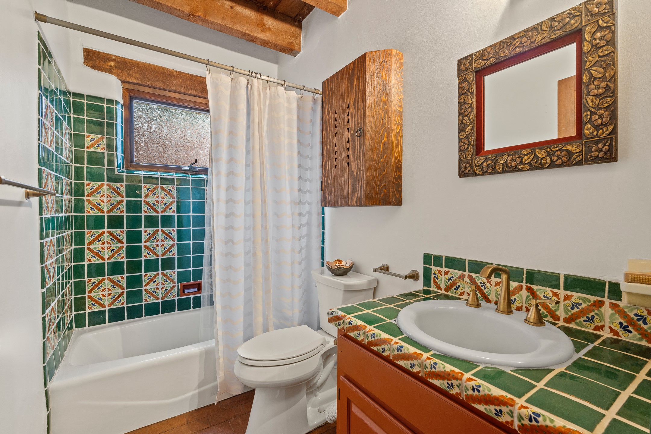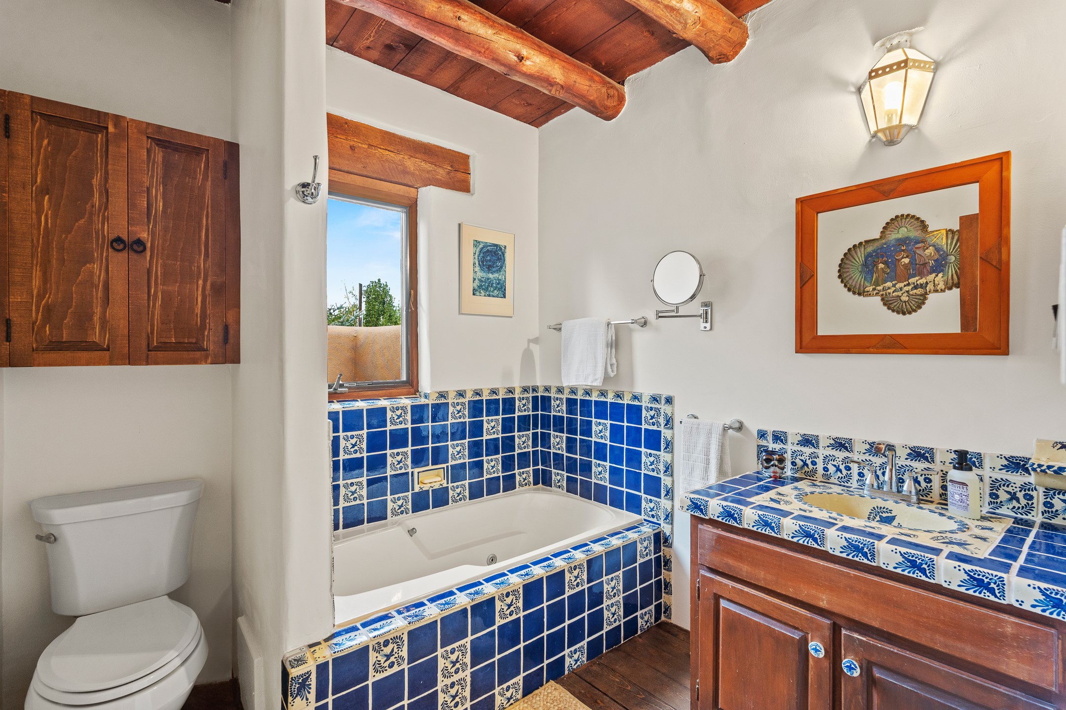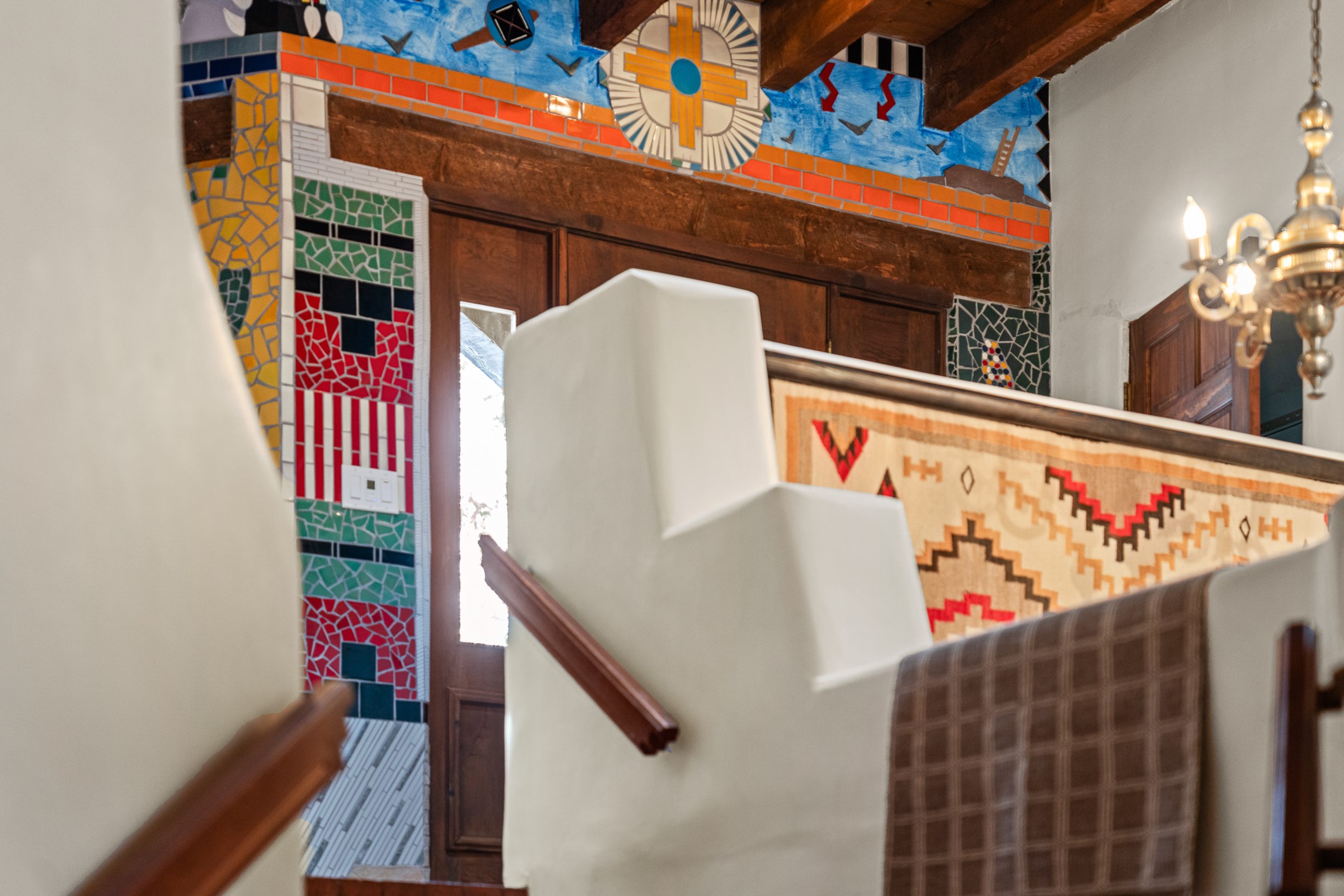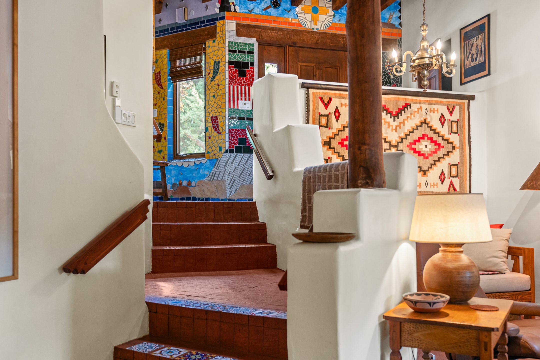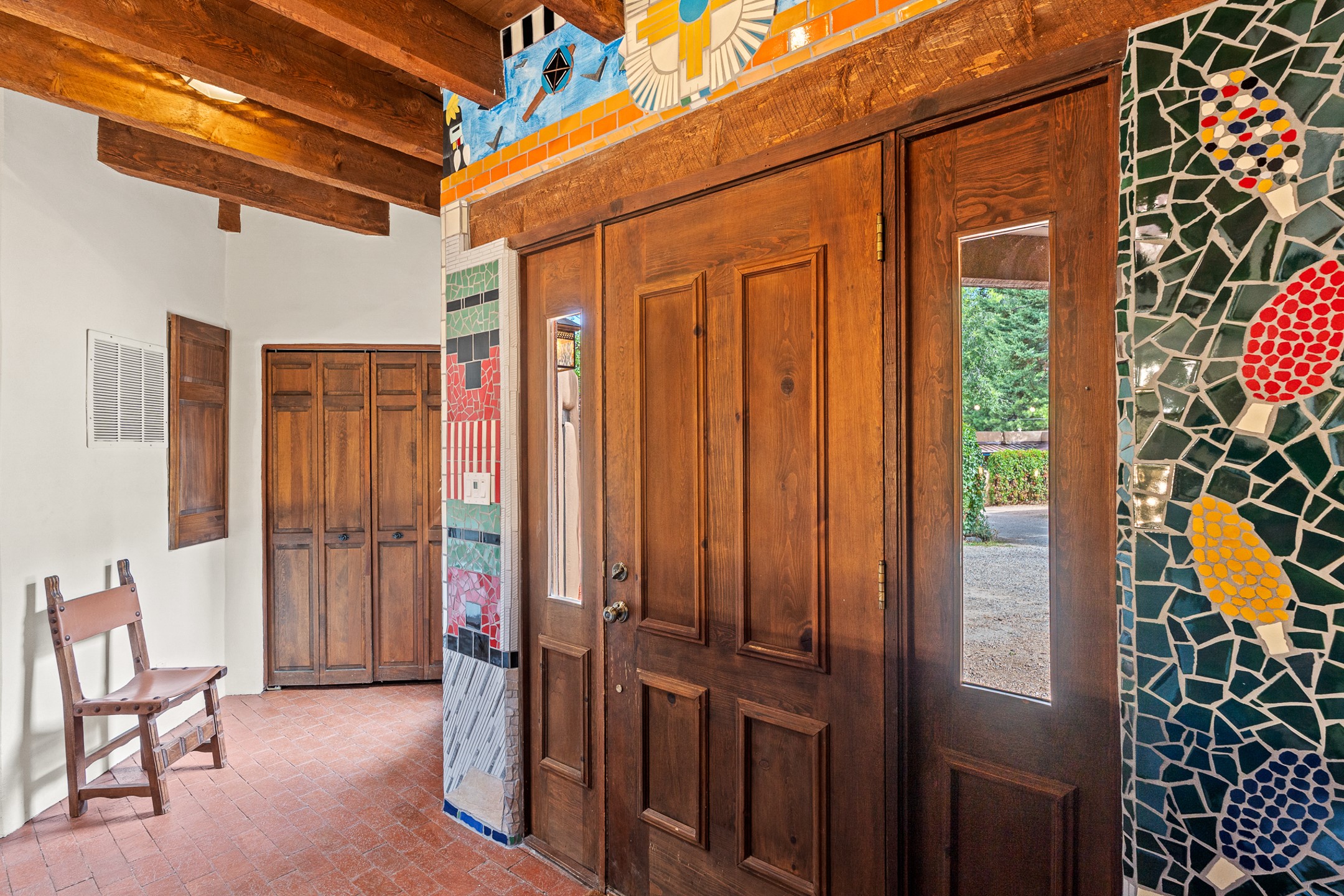 Rare opportunity to claim your slice of historic Eastside magic on Santa Fe's treasured Johnson Lane. The perfect pied--terre or a comfortable full-time residence, this beautifully cared for 3BD-2BA home (with two-car garage!) masterfully combines function with Southwest elegance. Finishes include brick and wood floors throughout, wood beams, and decorative tile work in numerous spaces. Down a modest flight of stairs, the living room offers high ceilings, bountiful natural light, and a wood-burning kiva fireplace. Outside, the fenced-in backyard offers shade from mature trees, low-fuss tiered garden beds (drip irrigation in-place), and an oversized flagstone patio for dining and outdoor leisure. The kitchen offers charm of its own--equipped with Fisher and Paykel appliances (2023), open shelving, and a custom Hopi mosaic backsplash behind the range installed by an indigenous artist. Upstairs, the primary suite is a retreat of its own with a cozy wood-burning fireplace and private outdoor balcony. Recently installed mini-splits throughout keep the home cool on hot summer days, and providesupplemental heating to the existing forced-air heating system in the colder months. Meticulously maintained, with recent roof replacement (2020), new stucco (2025), upgraded 200 Amp electrical service (2023), and many more fantastic improvements for a future homeowner to enjoy immediately. One of the most storied, quiet, streets on Santa Fe's historic Eastside, Johnson Lane offers a welcoming neighborhood, close proximity to coffee shops, restaurants, neighborhood grocery stores, and an easy stroll to famed Canyon Road.