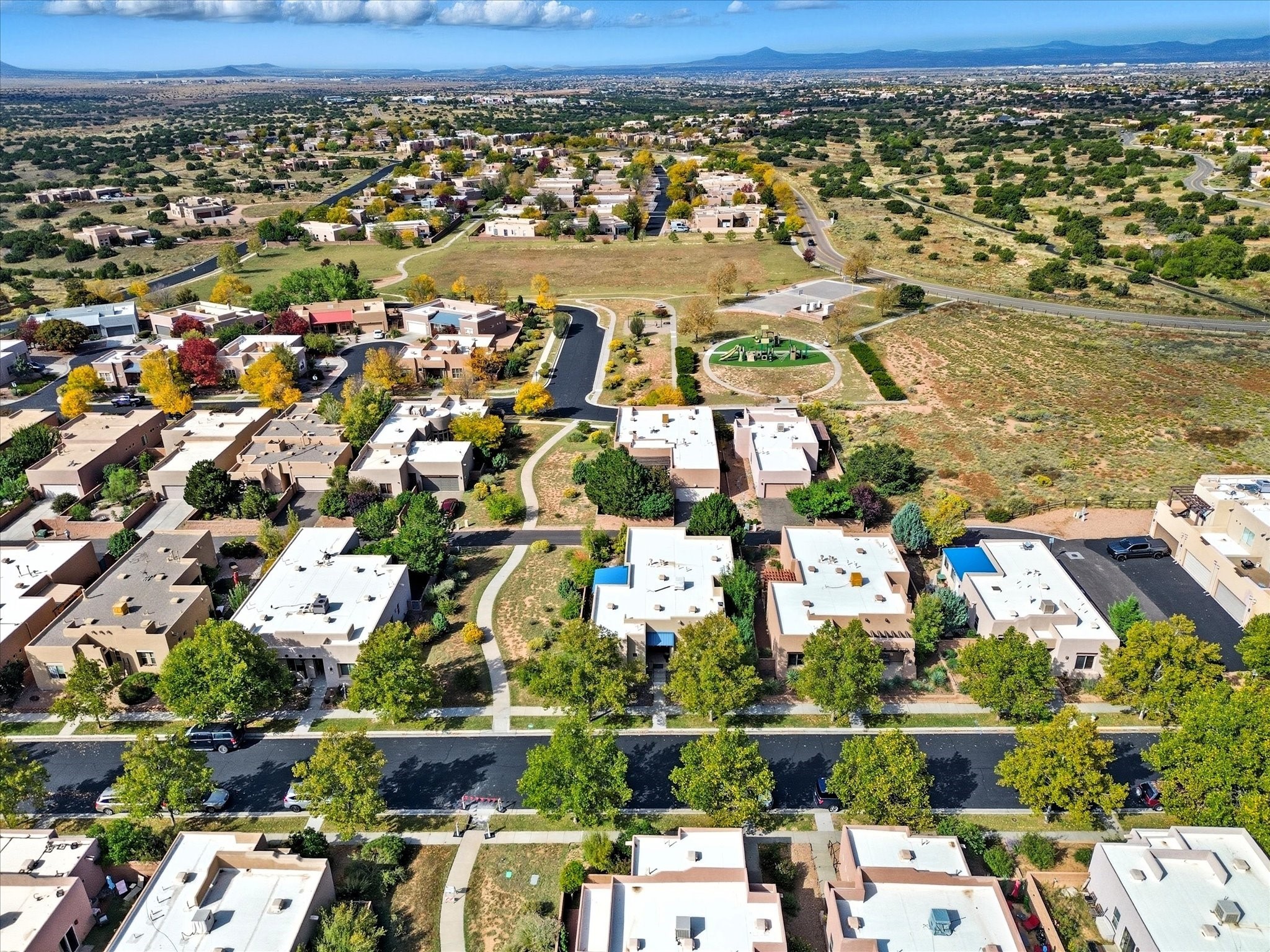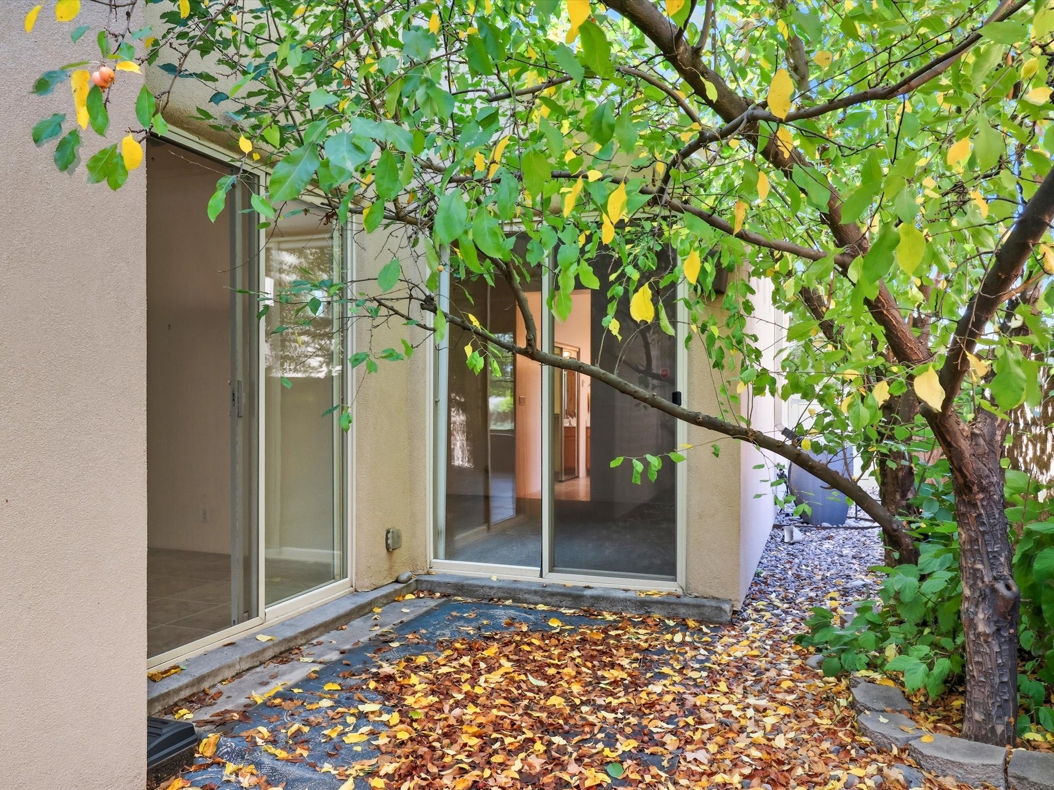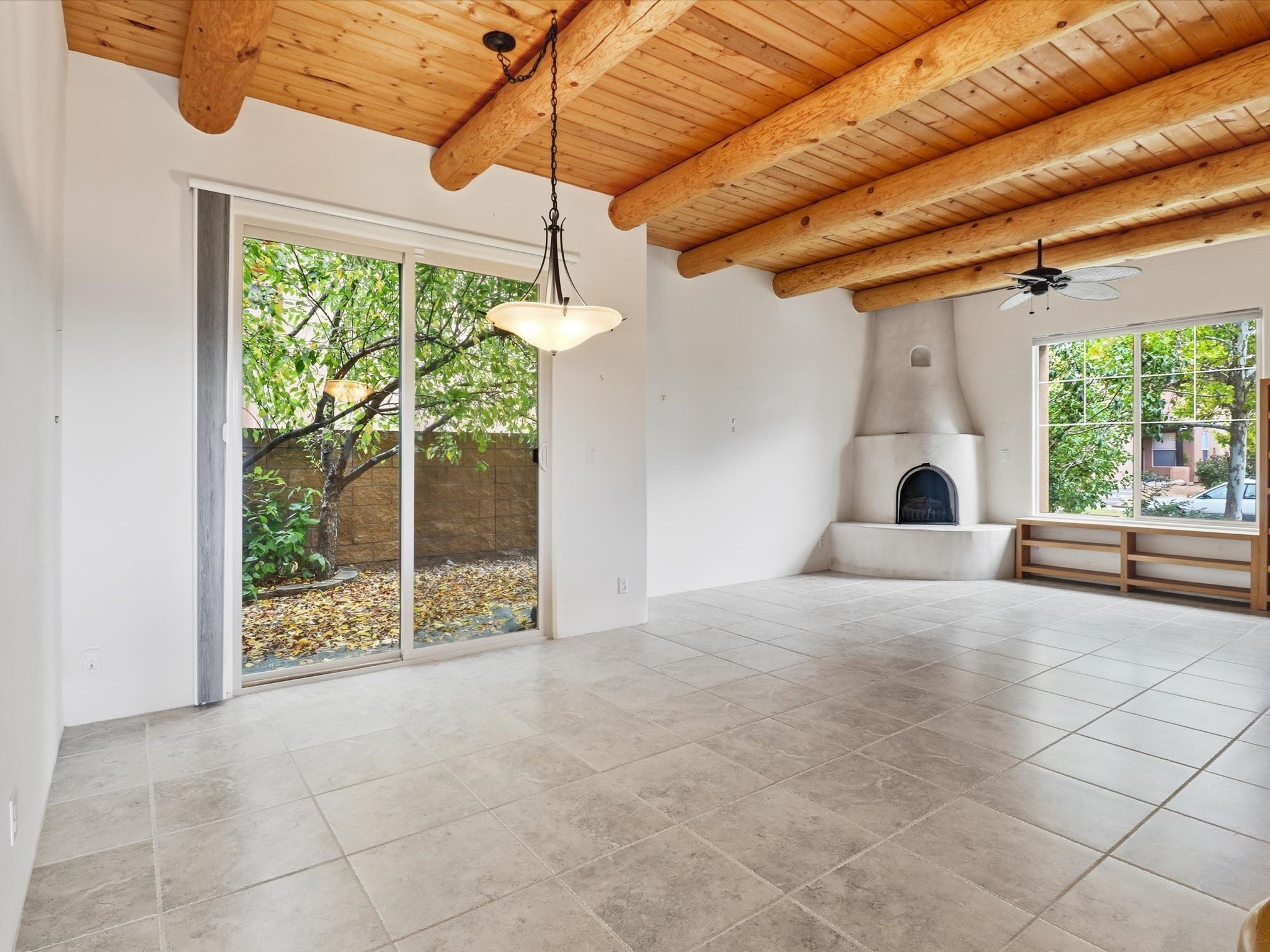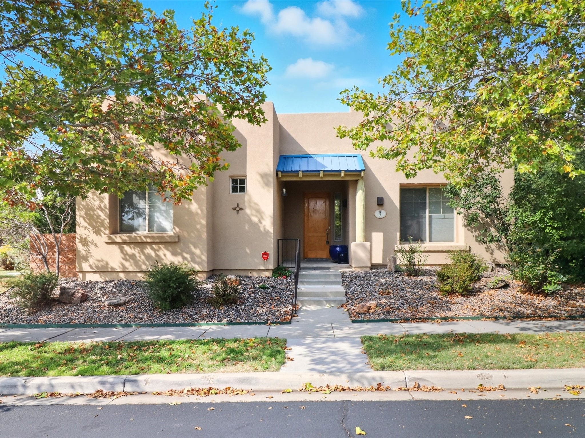 Step inside and be greeted by a stunning living room featuring a classic viga ceiling with latilla accents and custom built-in book shelving, creating a perfect blend of character and functionality. The open-concept living and dining area offers a seamless flow, ideal for entertaining or relaxing in style.The fully equipped kitchen has stainless steel appliances, a breakfast counter, and glass door access leading to the beautiful outdoors--inviting natural light and effortless indoor-outdoor living. The bright dining area opens directly to the stone-paver patio covered by a pro-panel style roof, perfect for morning coffee or evening gatherings surrounded by a mature garden filled with roses.Enjoy the thoughtful layout that connects the backyard effortlessly to both the kitchen and primary bedroom. The primary suite is a serene retreat, featuring direct access to the outdoors, a walk-in closet, and an ensuite bath with dual sinks and an enclosed shower.Situated on the south side next to the spine park walkway, this home enjoys extra sunlight, privacy, and open space--a rare find in Rancho Viejo. The covered patio and front faade framed by mature trees add to the home's peaceful and welcoming ambiance.Whether you're relaxing in the garden, hosting guests under the covered patio, or curling up with a book in the living room, this home offers the perfect balance of style, comfort, and tranquility.
