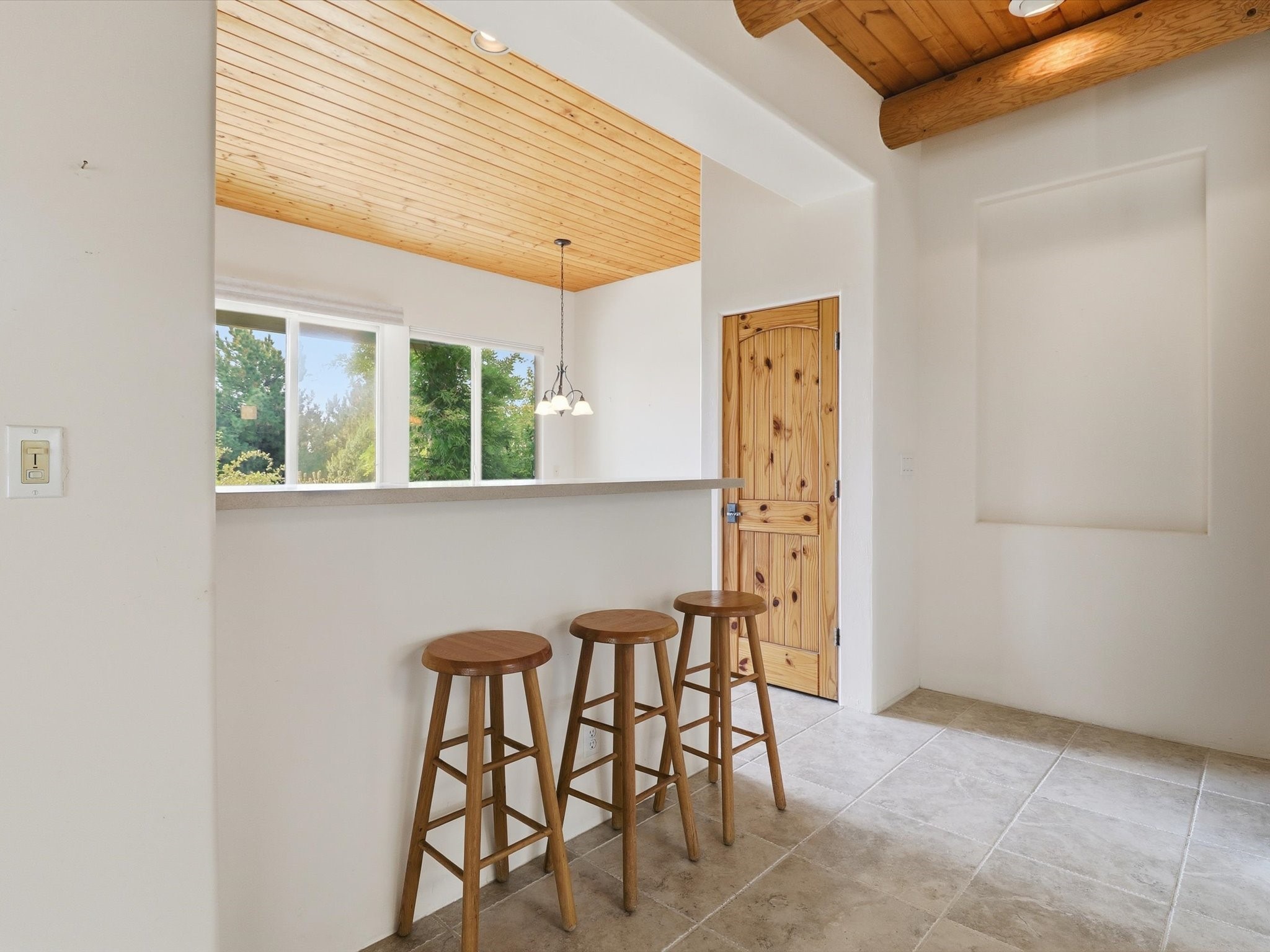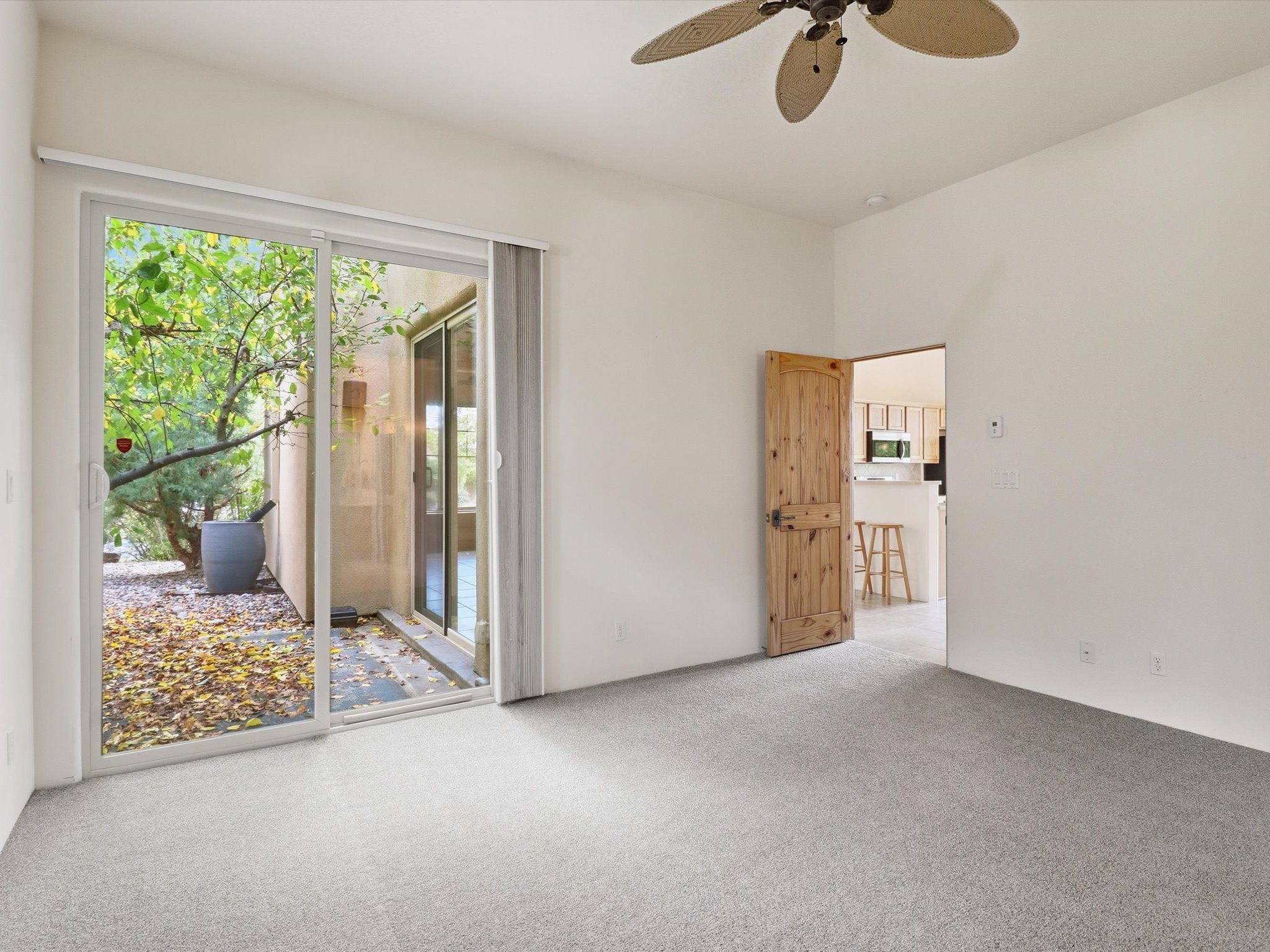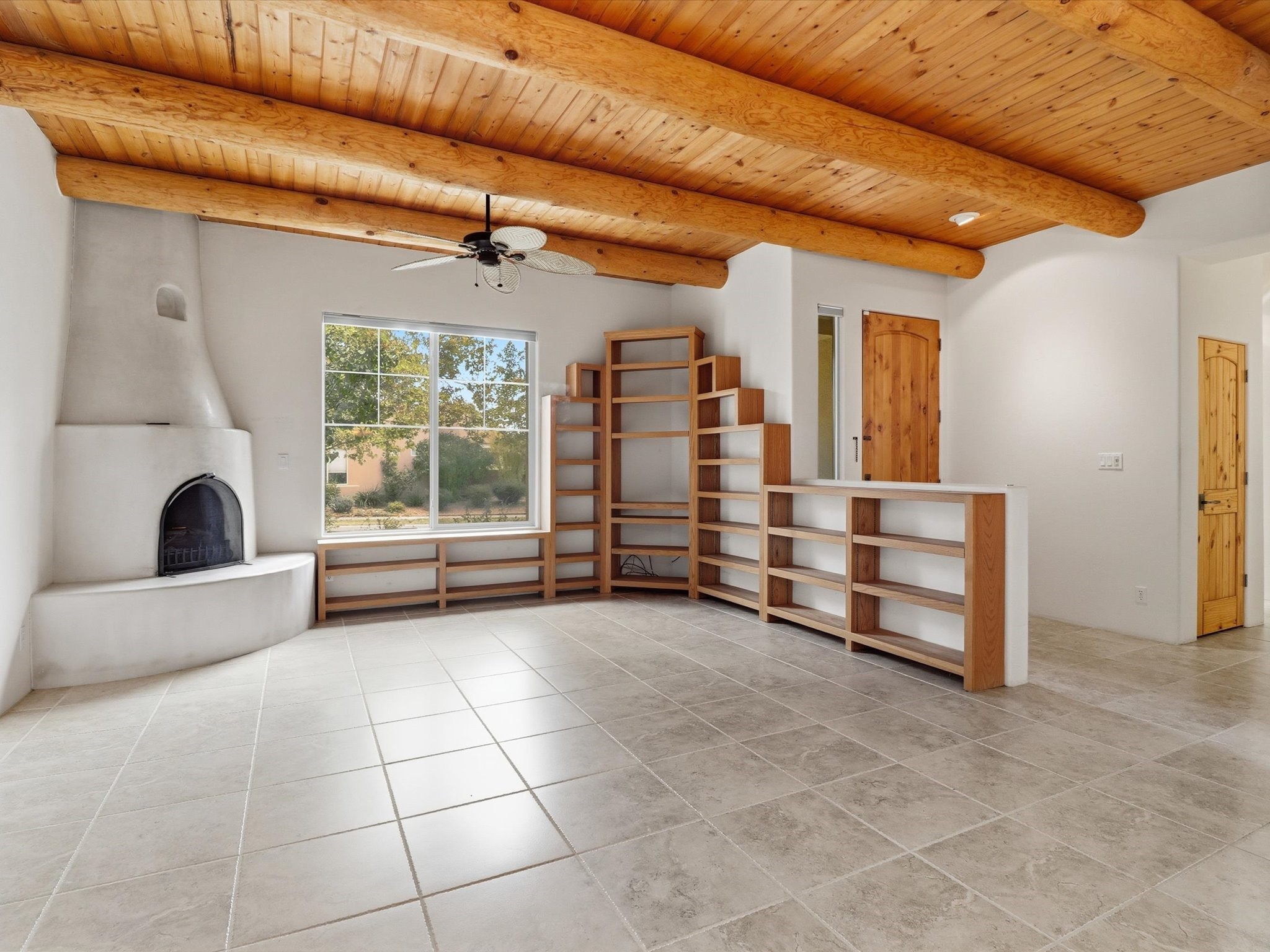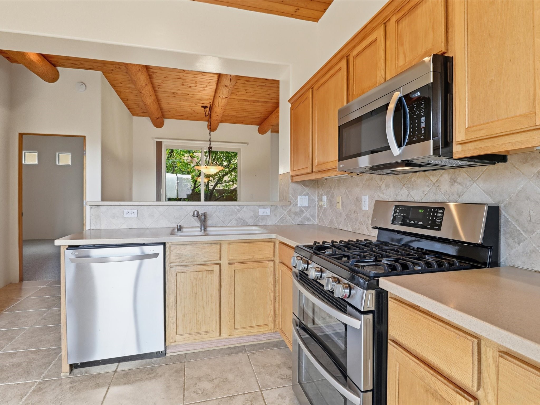 Step inside and be greeted by a stunning living room featuring a classic viga ceiling with latilla accents and custom built-in book shelving, creating a perfect blend of character and functionality. The open-concept living and dining area offers a seamless flow, ideal for entertaining or relaxing in style.The fully equipped kitchen has stainless steel appliances, a breakfast counter, and glass door access leading to the beautiful outdoors--inviting natural light and effortless indoor-outdoor living. The bright dining area opens directly to the stone-paver patio covered by a pro-panel style roof, perfect for morning coffee or evening gatherings surrounded by a mature garden filled with roses.Enjoy the thoughtful layout that connects the backyard effortlessly to both the kitchen and primary bedroom. The primary suite is a serene retreat, featuring direct access to the outdoors, a walk-in closet, and an ensuite bath with dual sinks and an enclosed shower.Situated on the south side next to the spine park walkway, this home enjoys extra sunlight, privacy, and open space--a rare find in Rancho Viejo. The covered patio and front faade framed by mature trees add to the home's peaceful and welcoming ambiance.Whether you're relaxing in the garden, hosting guests under the covered patio, or curling up with a book in the living room, this home offers the perfect balance of style, comfort, and tranquility.