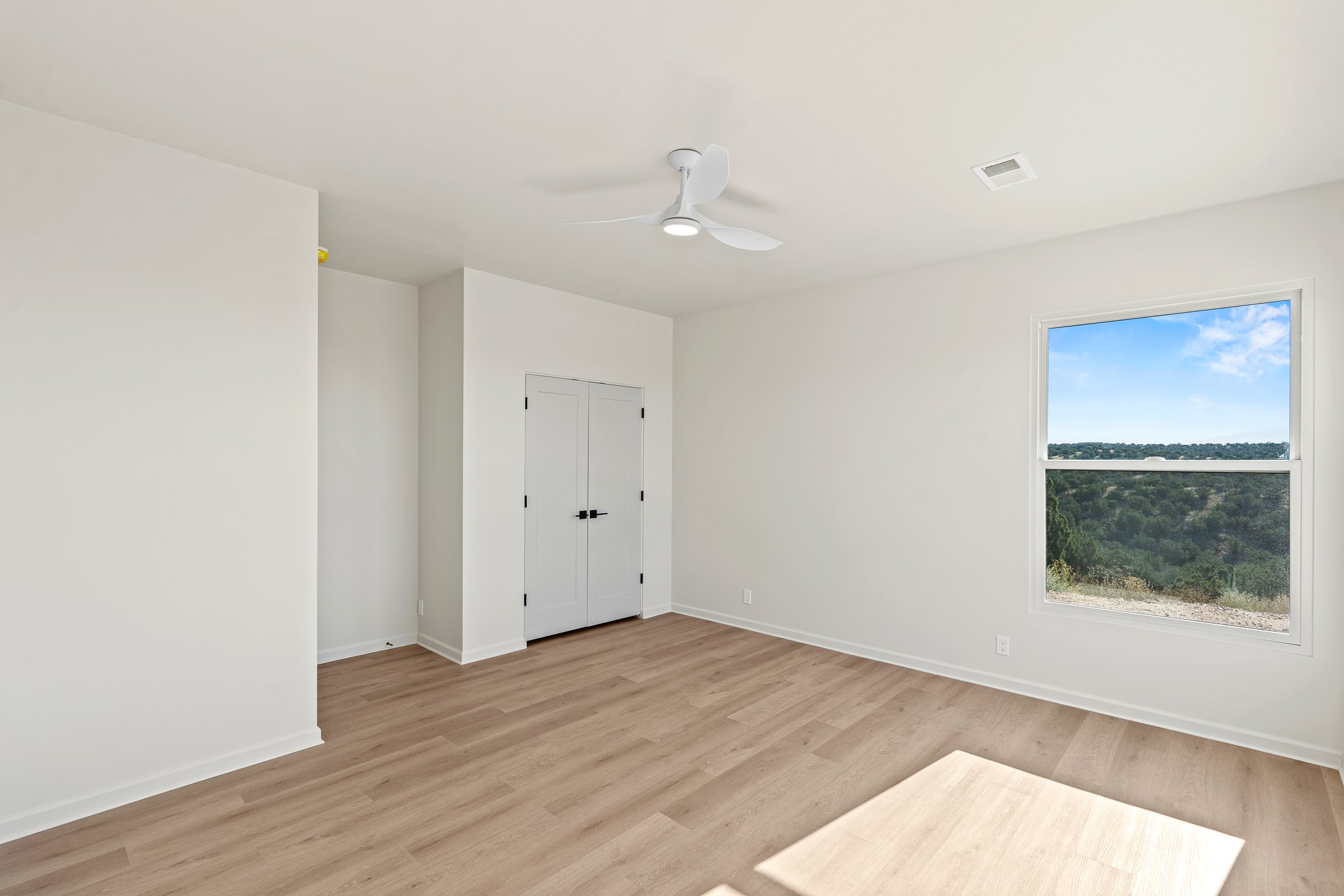 Just completed and ready for occupancy! Mountain views from every window in this new custom built contemporary pueblo style home with open floor plan situated on a huge 10.0 +/- ac. private lot in Lamy. Convenient access to US-285, the Agora shopping center, bank and restaurants. Perfect for indoor and outdoor entertaining. Open kitchen/family/dining room has floor to ceiling windows and double sliding glass doors to take in the fabulous views and access to the portal. The contemporary kitchen has a huge island bar and large walk in pantry. Every room has large picture windows with fabulous mountain views. Owner's bath has double sinks, soaking tub and large walk in shower room with double shower heads and rain showers and a large walk in closet. Home features contemporary style vigas in living areas. Three bedrooms with good separation and 2 baths. A guest house and equestrian structures are allowed, as well as 10 horses or cattle. (1 large animal per acre.) No HOA, recreational vehicles are allowed if parked inconspicuously. Connected to the Eldorado community water system. Located only 20 minutes from Downtown Santa Fe this home offers gorgeous views, rural living and easy access to everything Santa Fe has to offer. This home has it all; new home, fabulous views, great outdoor spaces, contemporary open floor plan, large private lot. Buyer to verify all information and Covenants. Seller gives $4000 credit to the buyer at closing for Range, dishwasher and microwave. Open House Sunday, Nov 23. 1:00 - 4:00 PM.