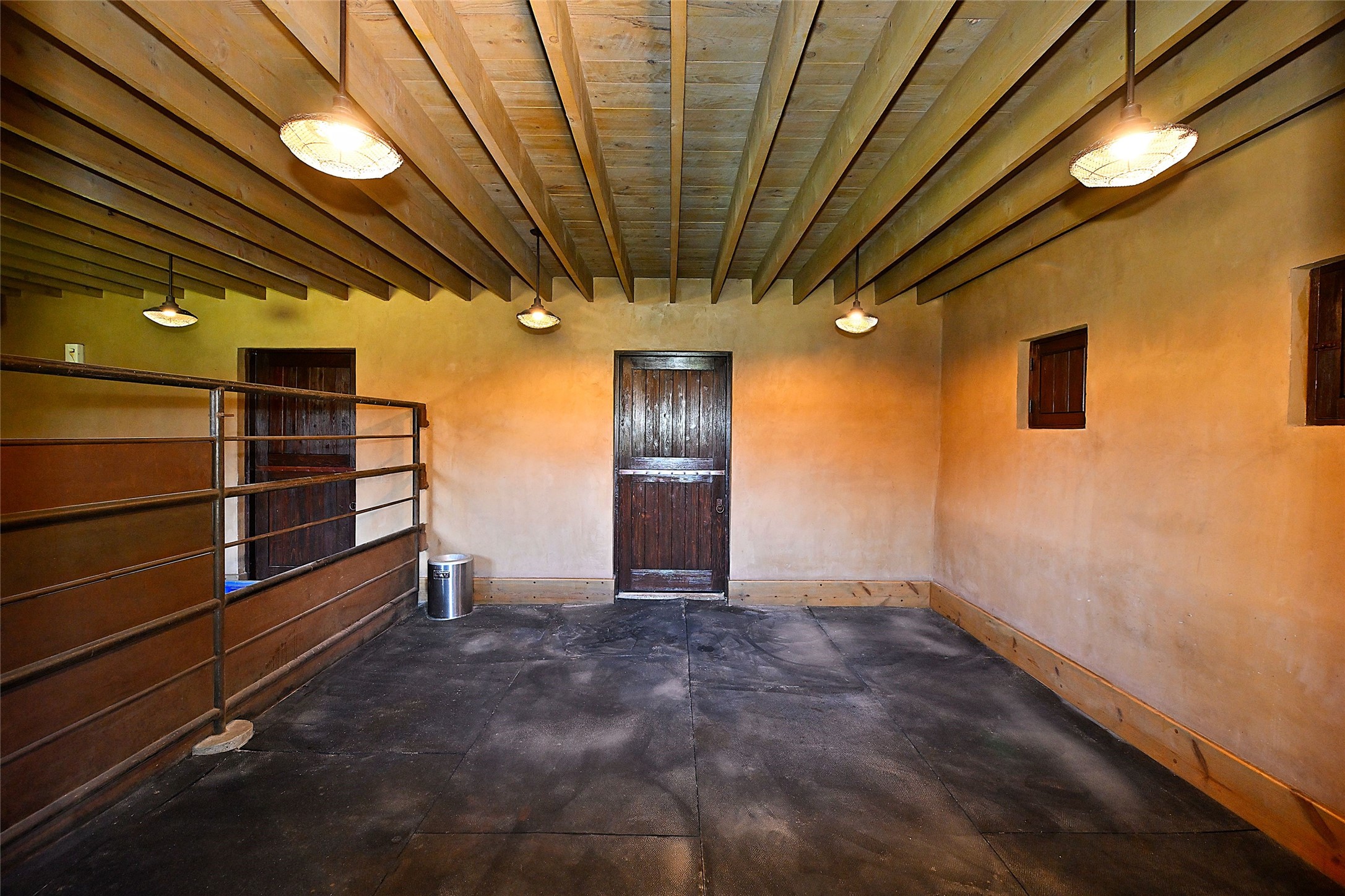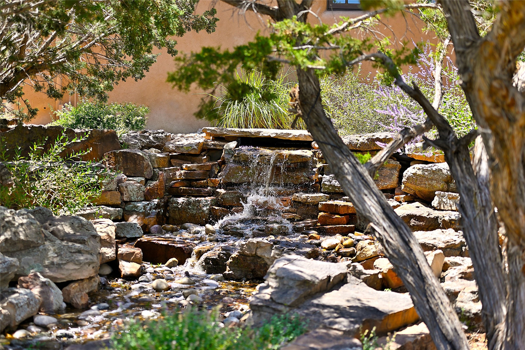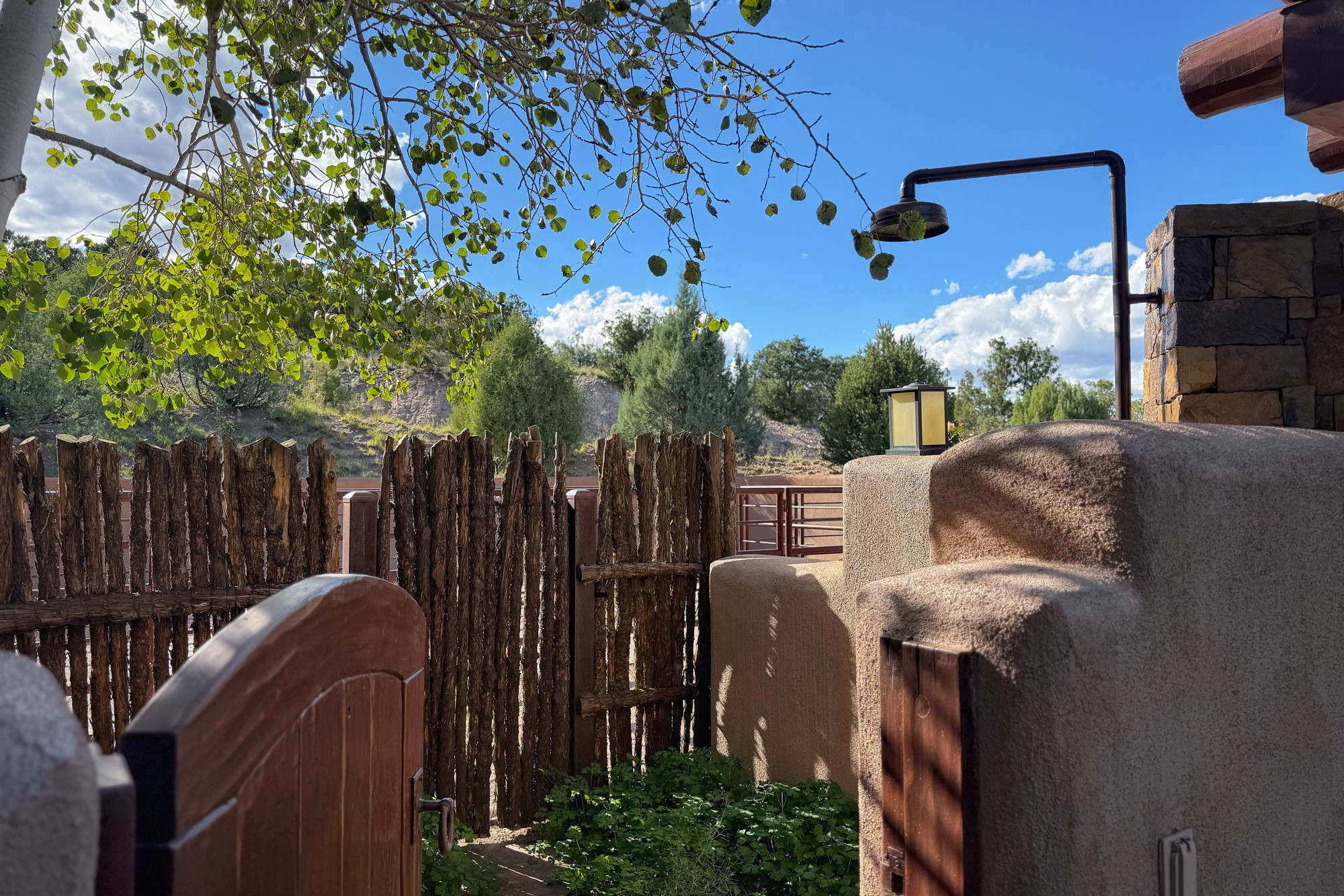 Welcome to 'The Dusty Boot', a 25.3-acre sanctuary where the spirit of the Old West meets the artistry of modern living. Set on a buildable ridgetop with sweeping 360 views of the Sangre de Cristo and Jemez Mountains, this 5,186 sqft estate combines a luxury residence, guest compound, and world-class equestrian facility within the gated community of La Tierra Nueva, minutes from Santa Fe and The Club at Las Campanas. Designed by Steven Samuelson Studio and built in 2007, the Pueblo-revival residence (2 BD/3BA) radiates rustic sophistication: a grand great room centered on a stone-and-copper fireplace beneath soaring ceilings, an infinity patio that seems to float above the desert horizon, and an outdoor chef's kitchen anchored by a wood-fired pizza oven. Your guests will enjoy comfort and hospitality in a cozy standalone guest house (1BD/2BA) just steps from the main living area. The equestrian compound (1 BD/2BA), envisioned by Pedro Marquez, extends far beyond function. Four oversized heated stalls with turnouts, automatic waterers, tack room, horse wash, arena, round pen, and horse walker support the finest in equine care. Cantilevered vigas and lush courtyards with a sala, double water-trough waterfall, and firepit create a striking architectural setting for entertaining. At the heart of the stable complex lies a spacious studio and office suite, climate-controlled, connected, and light-filled space ideal for various endeavors: a fully integrated, executive-level remote office, professional art studio, music recording and production studio, or a serene environment for yoga, pilates, tai chi, or fitness. This flexible environment bridges creativity and productivity, all within the serenity of Santa Fe's high desert. Completing the lifestyle and integrated with the exquisite landscaping are orchards, gardens, water features, and a hen house. The 'Dusty Boot' is more than a property, it is a private world where work, creativity, and leisure thrive in harmony.