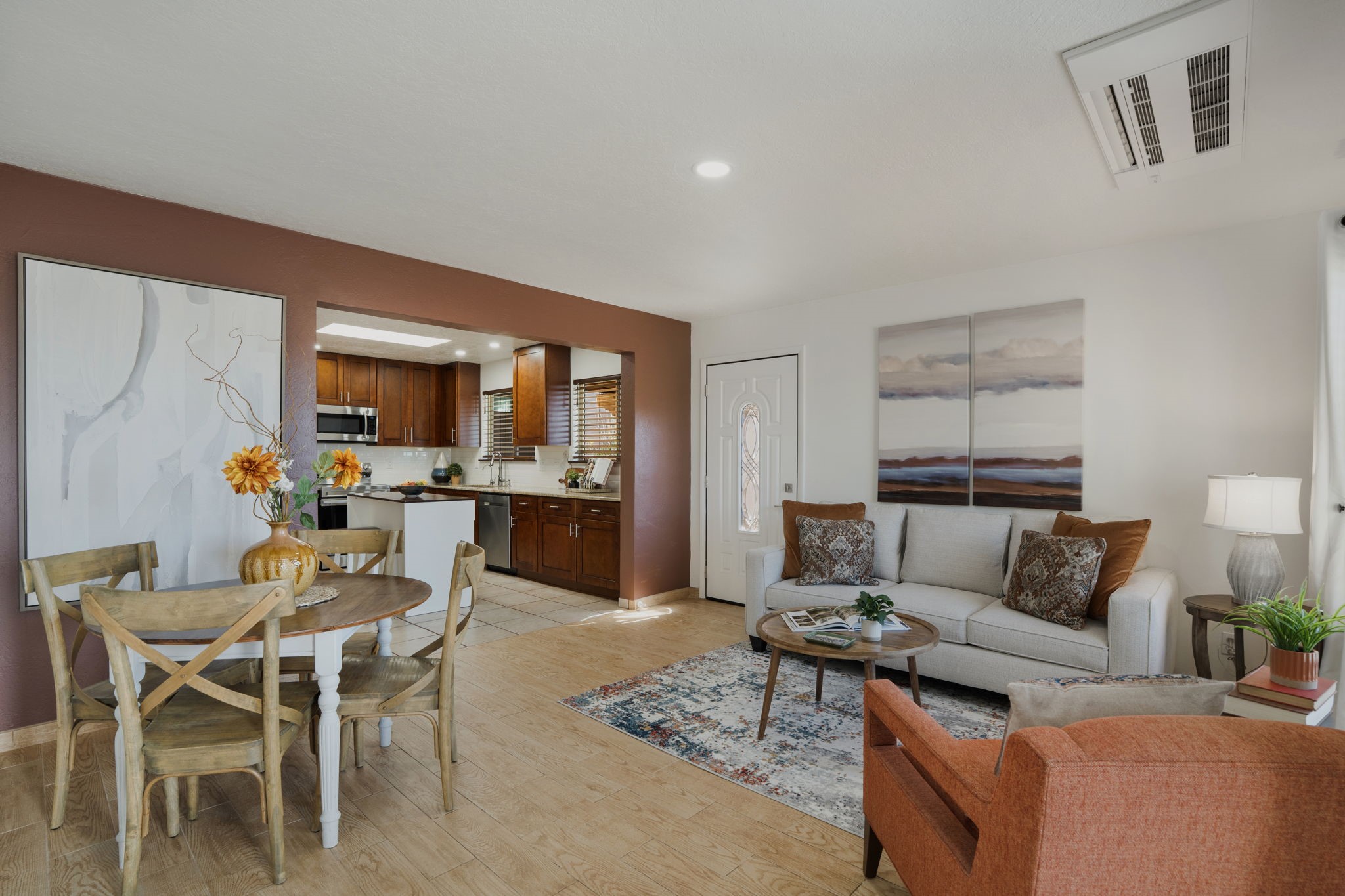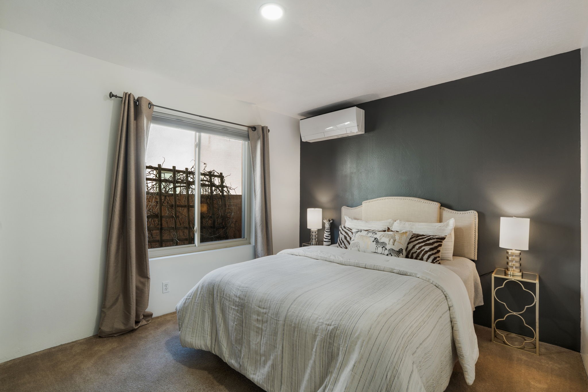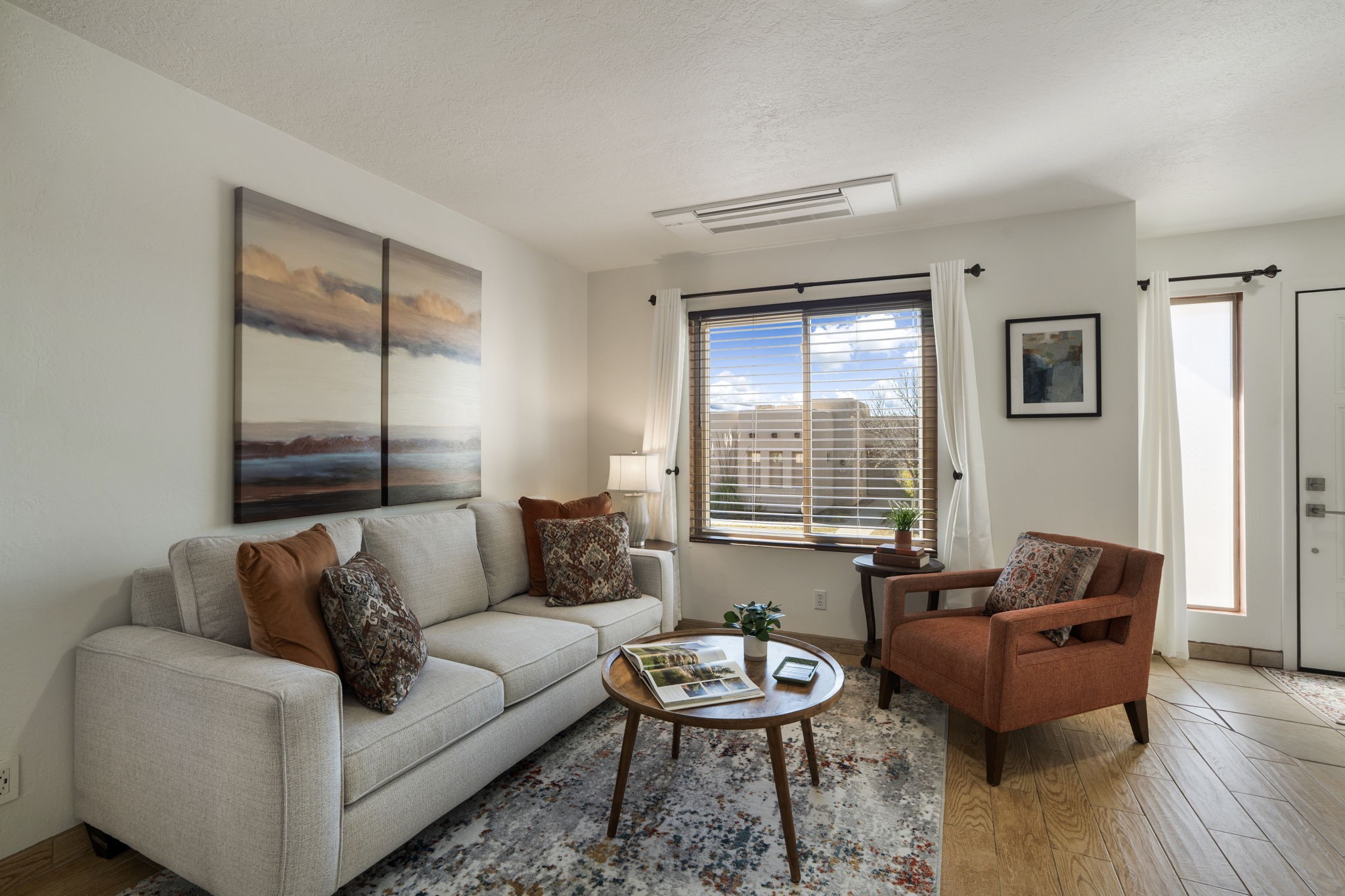 Welcome to this beautifully maintained 4-bedroom home, offering the perfect balance of modern updates and warm, inviting spaces. With 1,509 square feet of thoughtfully designed living area, this residence was built in 2006 and has been lovingly upgraded for efficiency and style.Step inside to a light-filled living room featuring elegant wood-look tile floors, inset lighting, and a seamless flow to the outdoors. A door leads to a large covered portal, running almost the entire length of the house, where carved wooden posts add a touch of timeless Southwestern character--perfect for relaxing or entertaining.At the heart of the home is a fabulous kitchen designed for both everyday living and culinary creativity. Enjoy granite countertops, a large, movable kitchen cart that functions beautifully as a central island, and stainless steel appliances that shine beneath newer skylights. The electric stove, subway tile backsplash, and beautiful cabinetry create a clean, contemporary aesthetic, while a large pantry with charming barn doors keeps everything neatly organized.The primary bedroom is a spacious retreat with three large windows that fill the room with natural light. The ensuite bath has been tastefully remodeled, offering a spa-like atmosphere, and the walk-in closet provides ample storage. All bedrooms feature plush carpeting for personalized comfort.This home is as efficient as it is beautiful, boasting a whole house solar electric system that also powers the mini splits in the 4 bedrooms and living room (fully paid off), a foam roof with membrane (4-5 years old), newer skylights, radiant in-floor heating, a 5-year-old boiler, and a 5-year-old gas water heater. The attached two-car garage at the back of the home adds convenience and privacy.With its combination of thoughtful upgrades, energy efficiency, and inviting style, this home truly offers the best of modern Southwestern living in the delightful Rancho Viejo neighborhood, replete with mountain views, walking trails and lots of open space.