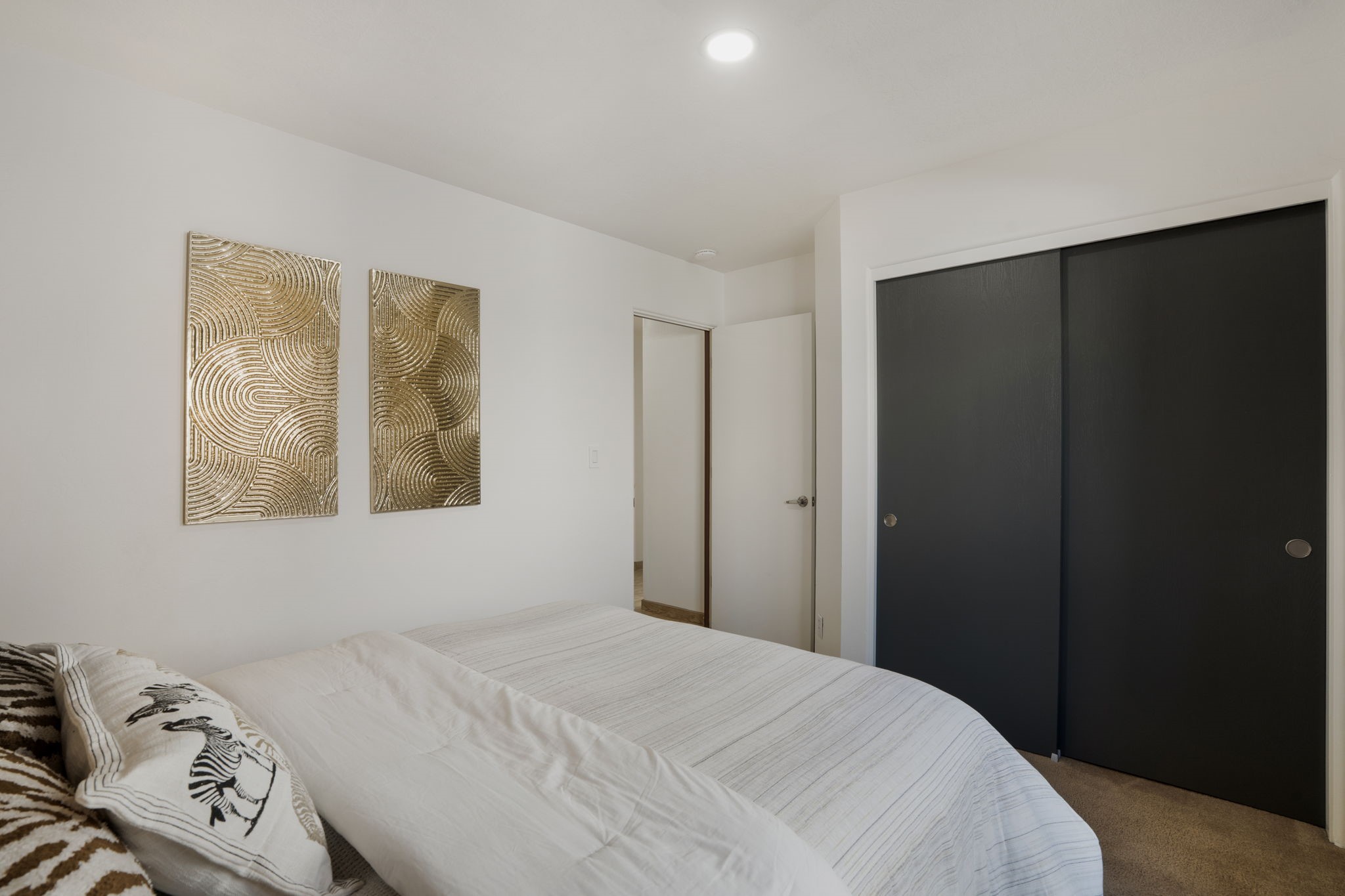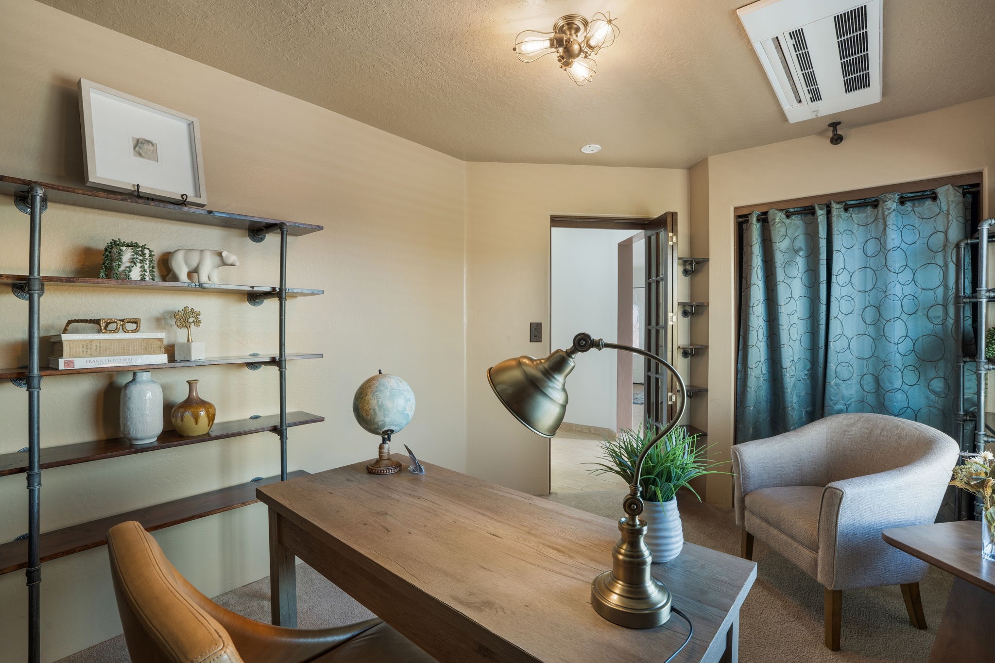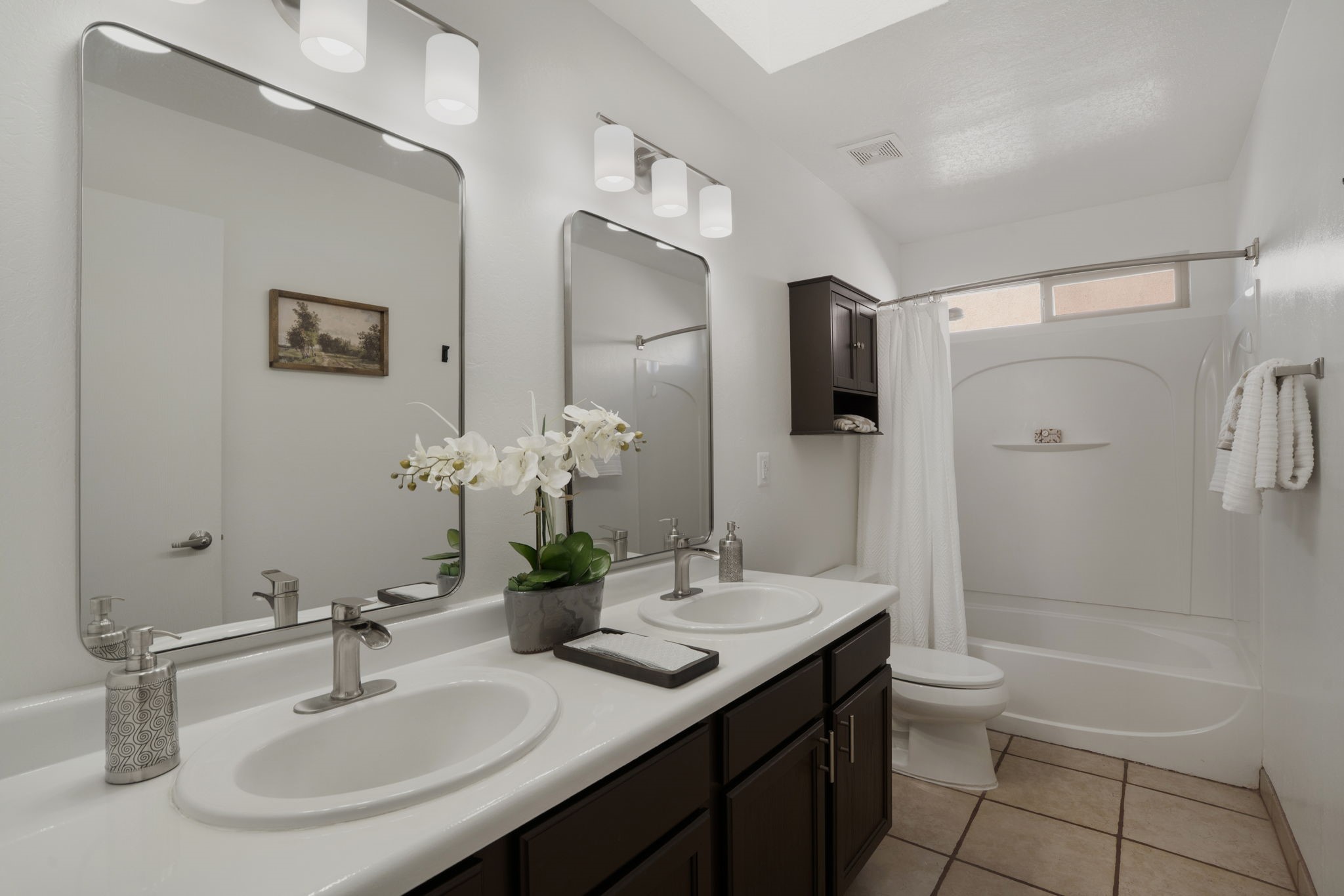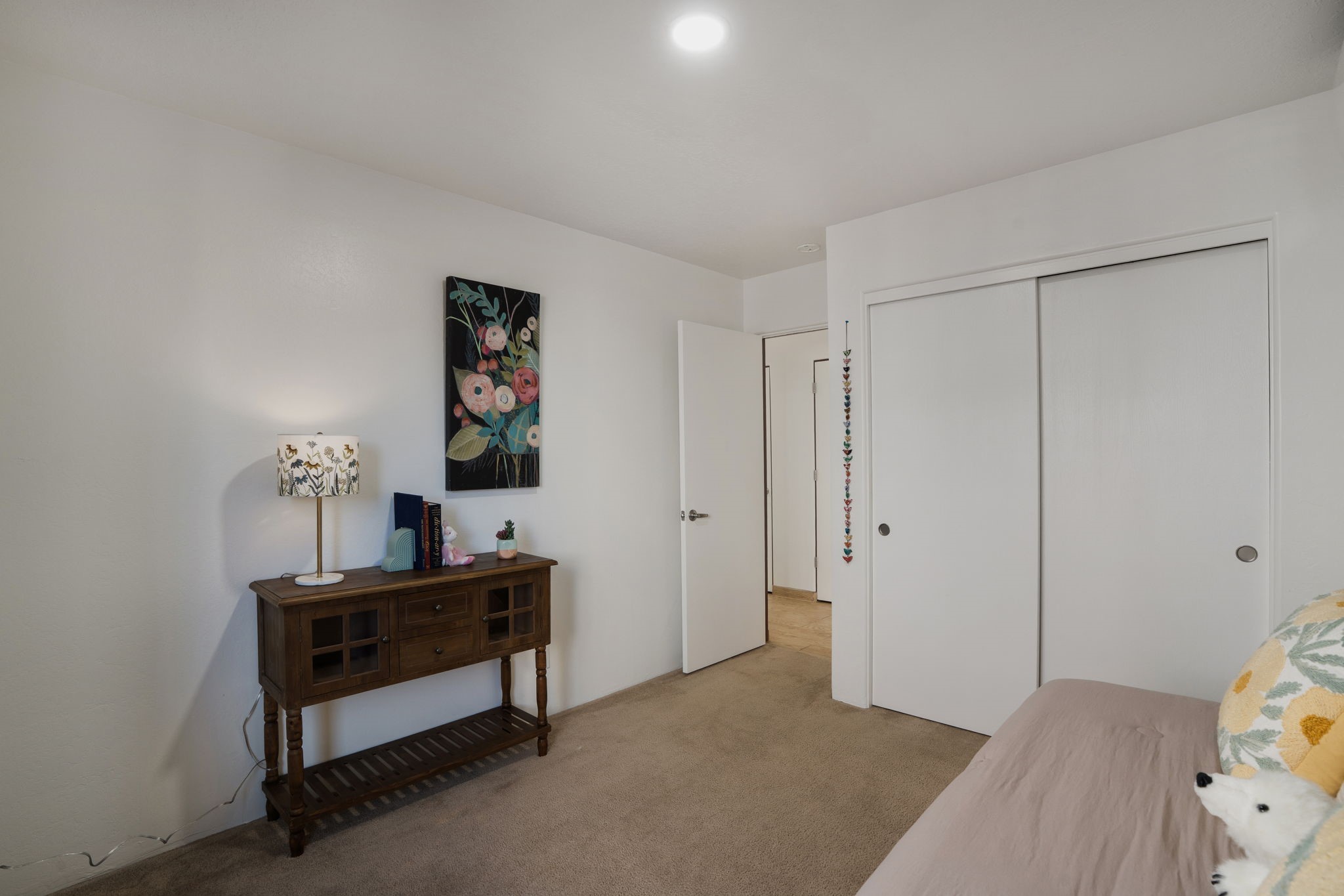 Welcome to this beautifully maintained 4-bedroom home, offering the perfect balance of modern updates and warm, inviting spaces. With 1,509 square feet of thoughtfully designed living area, this residence was built in 2006 and has been lovingly upgraded for efficiency and style.Step inside to a light-filled living room featuring elegant wood-look tile floors, inset lighting, and a seamless flow to the outdoors. A door leads to a large covered portal, running almost the entire length of the house, where carved wooden posts add a touch of timeless Southwestern character--perfect for relaxing or entertaining.At the heart of the home is a fabulous kitchen designed for both everyday living and culinary creativity. Enjoy granite countertops, a large, movable kitchen cart that functions beautifully as a central island, and stainless steel appliances that shine beneath newer skylights. The electric stove, subway tile backsplash, and beautiful cabinetry create a clean, contemporary aesthetic, while a large pantry with charming barn doors keeps everything neatly organized.The primary bedroom is a spacious retreat with three large windows that fill the room with natural light. The ensuite bath has been tastefully remodeled, offering a spa-like atmosphere, and the walk-in closet provides ample storage. All bedrooms feature plush carpeting for personalized comfort.This home is as efficient as it is beautiful, boasting a whole house solar electric system that also powers the mini splits in the 4 bedrooms and living room (fully paid off), a foam roof with membrane (4-5 years old), newer skylights, radiant in-floor heating, a 5-year-old boiler, and a 5-year-old gas water heater. The attached two-car garage at the back of the home adds convenience and privacy.With its combination of thoughtful upgrades, energy efficiency, and inviting style, this home truly offers the best of modern Southwestern living in the delightful Rancho Viejo neighborhood, replete with mountain views, walking trails and lots of open space.