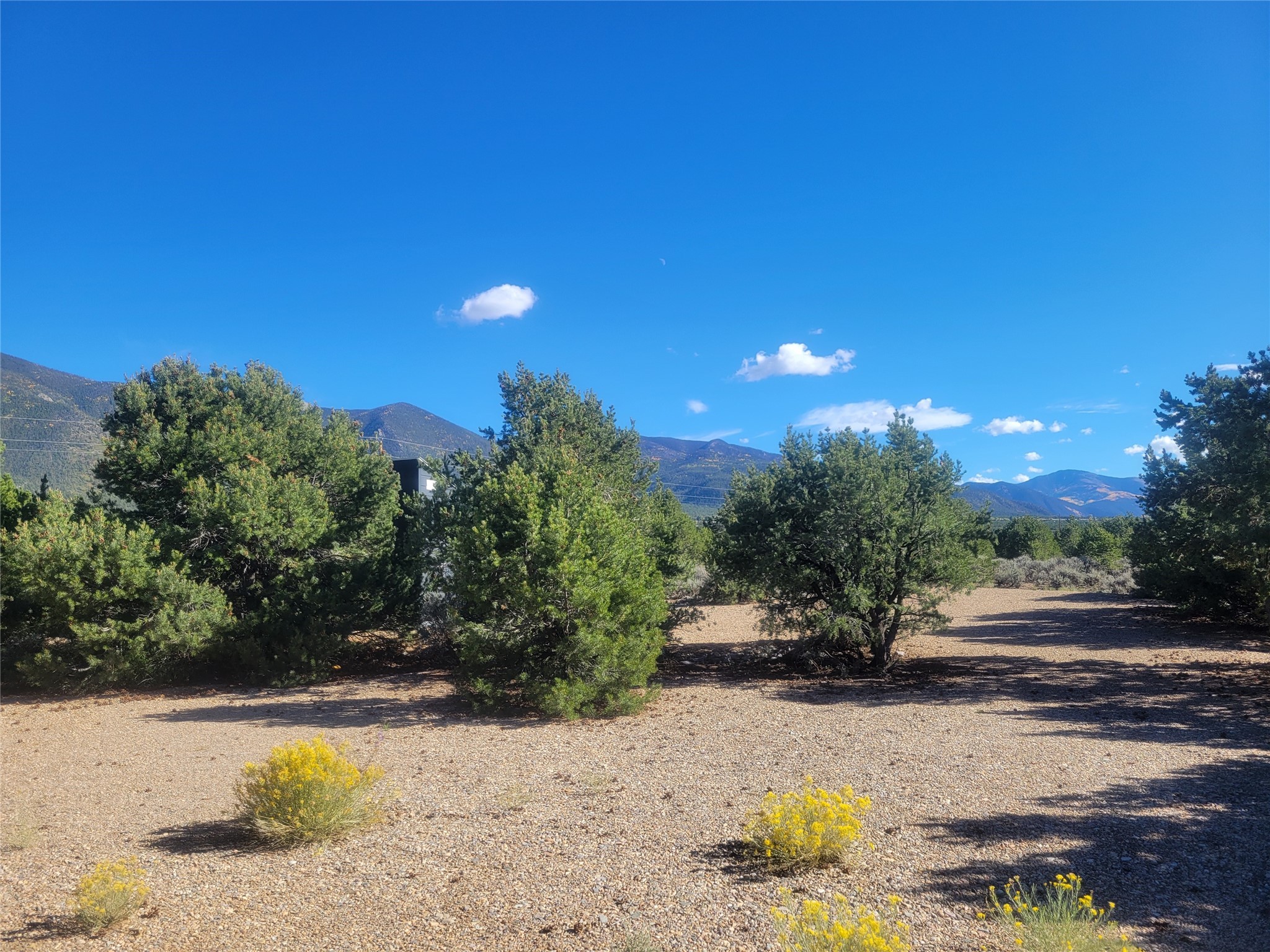 This is a place which needs to be seen in person as pictures won't do it justice. Nestled in between the pinon and juniper trees at the base of the Latirs, this peaceful and serene 5-acre improved lot has so much to offer. Three separate structures are already present. Each one is plumbed. Two of them can be turned into whatever your imagination brings. The current owner was going to house artists. The third structure houses the well, which is powered by solar cells. Electric is right by the lot however, should you want to tap into the grid. The lot has been cleared, and gravel driveways are already there. This is a must see for anyone looking for a special place.