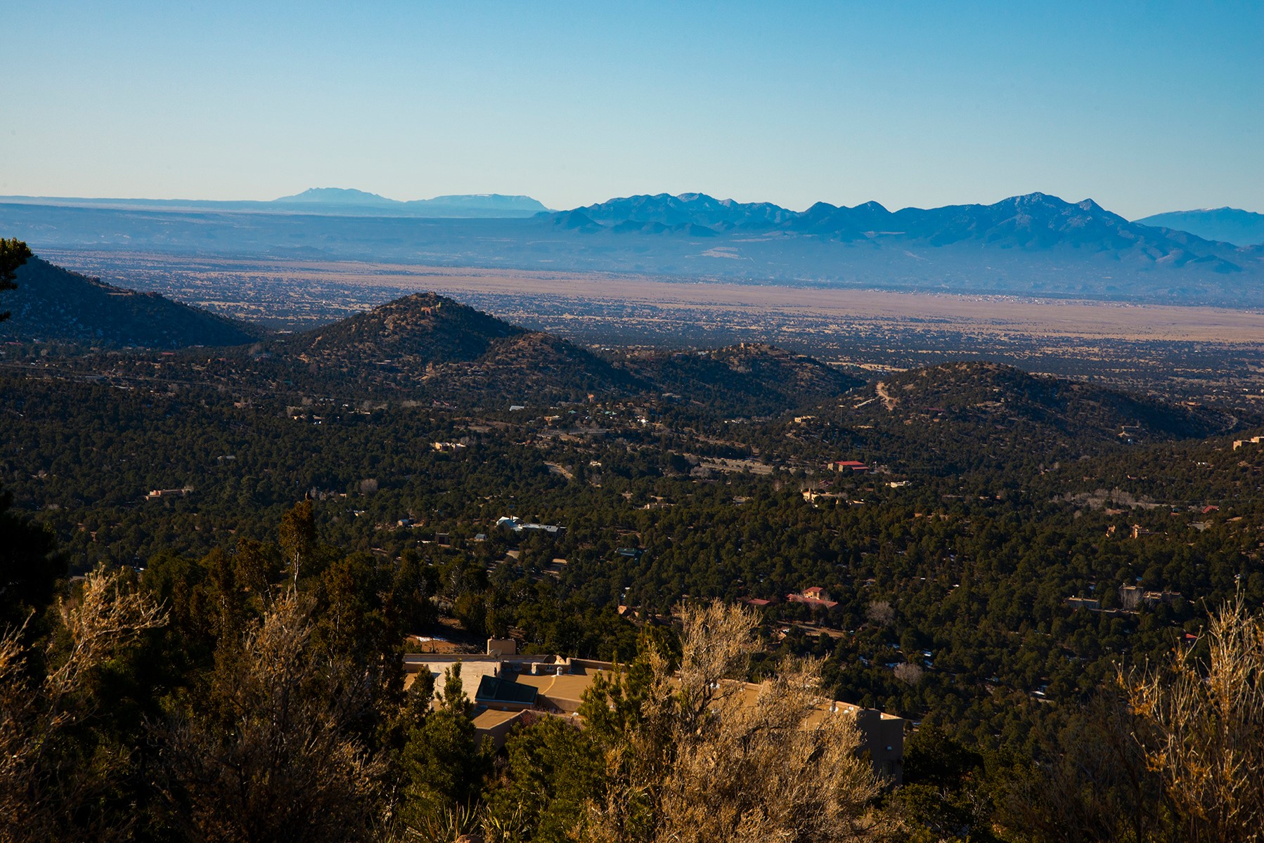 Panoramic views for miles from this elevated property high on the slopes of the Sangre De Cristo mountains. 5 acres on the highest lot on Coyote Mountain Road, with some dirt work done, shared well in place, and electrical transformer. 15 minutes from the Plaza, this can be the site for your top of the world sanctuary. Adjacent 5 acre parcel is for sale (MLS 202340314) for those wanting to combine the properties for more privacy and space. Beyond a locked gate, please make an appointment to see.