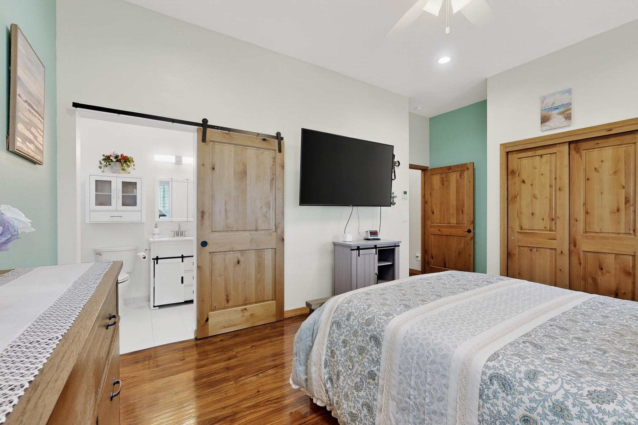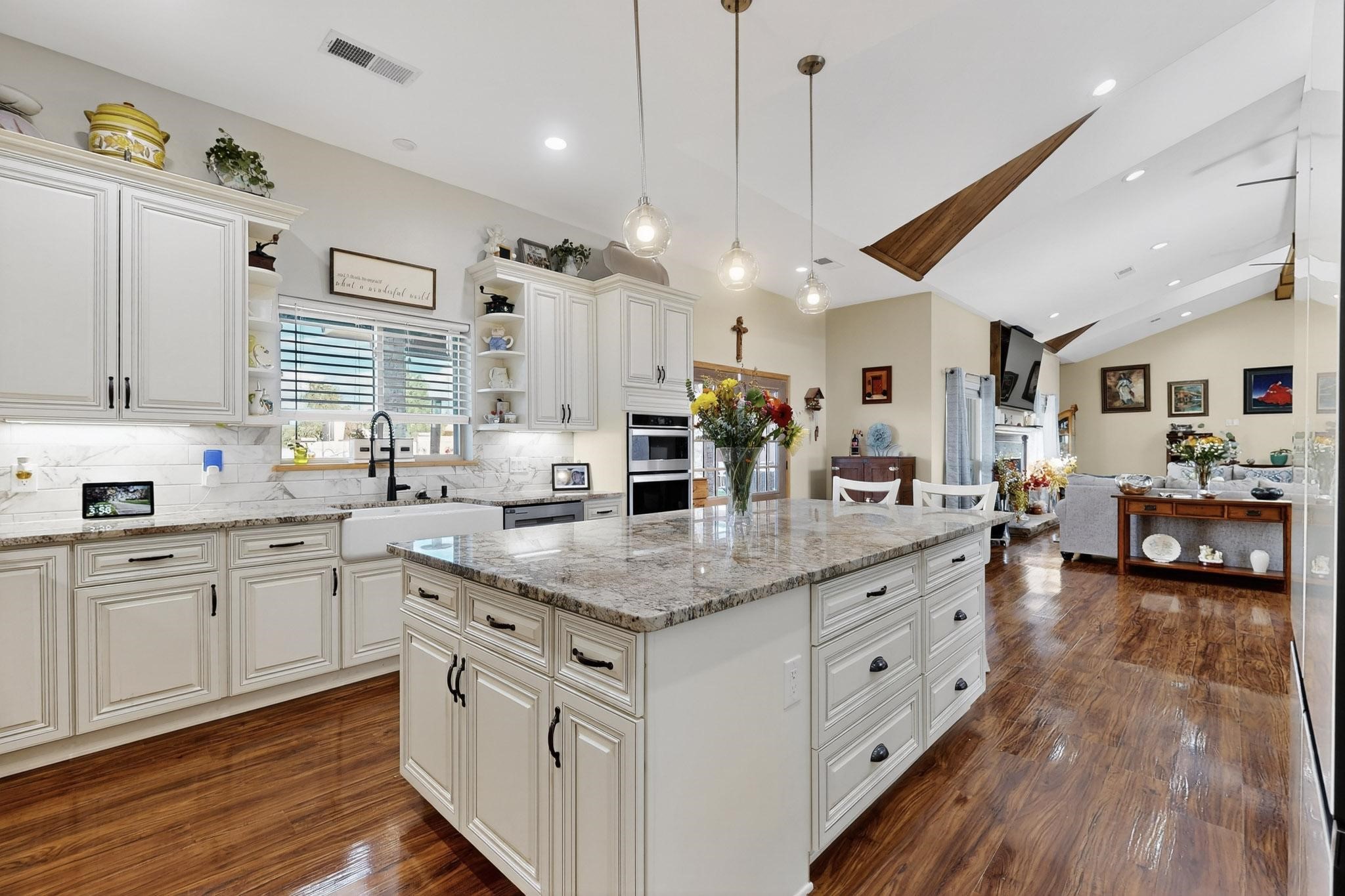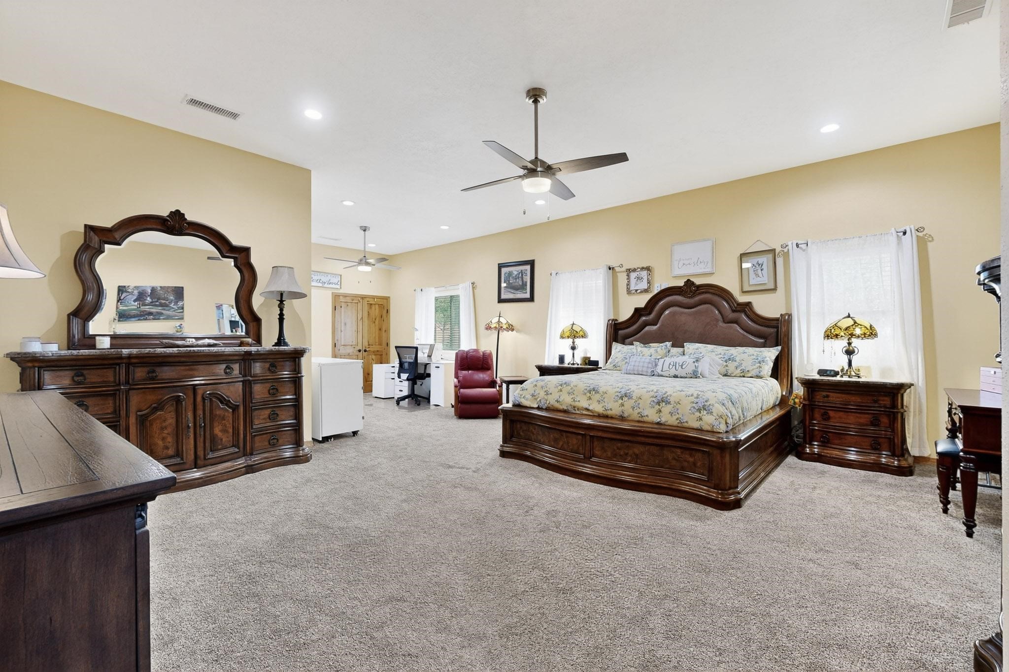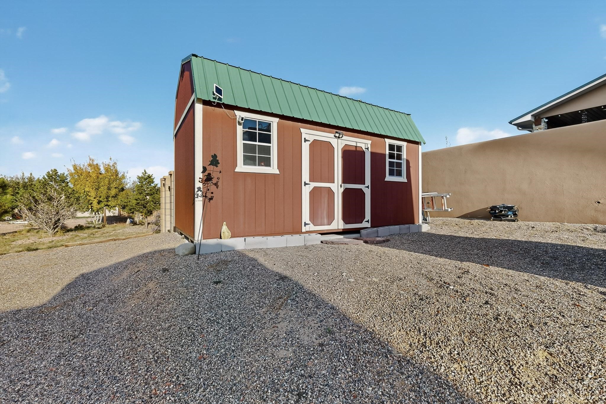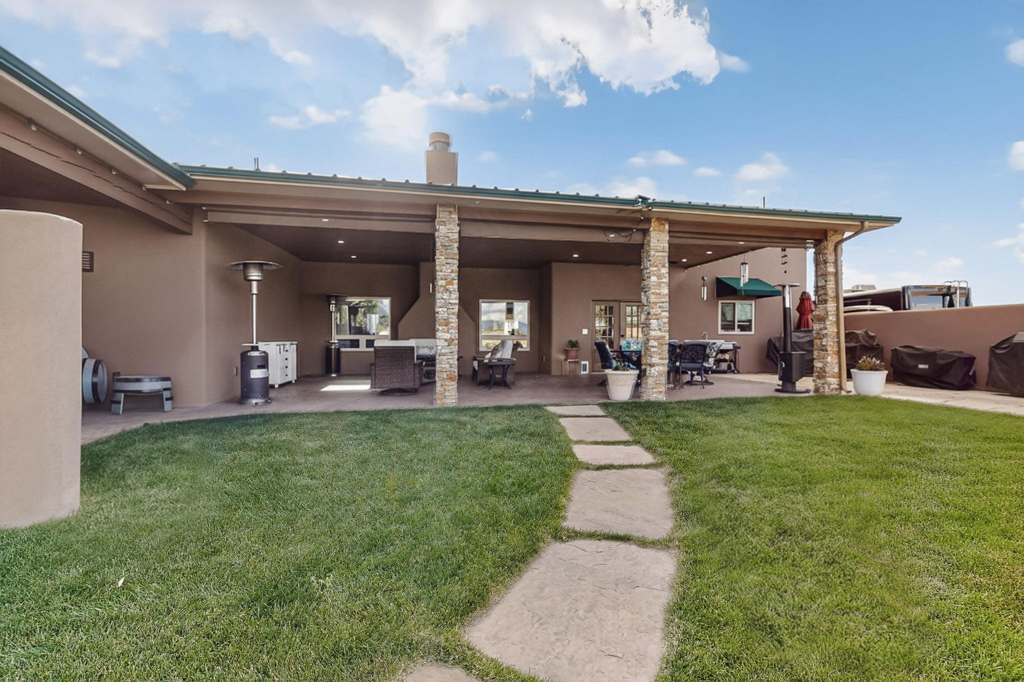 Nestled in the private, gated community of Valle Serena, this meticulously designed single-level home offers the perfect balance of comfort, luxury, and practicality. Built in 2022, the residence spans 3 bedrooms (two with ensuite baths) and includes an additional full bath and half bath for your guests' convenience. The bright, open-concept interior is both inviting and functional. The living area features soaring ceilings and a cozy wood-burning fireplace, ideal for enjoying Santa Fe's crisp fall evenings and snowy winter nights. Transition effortlessly into the chef's kitchen, a culinary haven outfitted with premium appliances, custom cabinetry, a large island, and a generous butler's pantry for all your storage needs.Step outside to experience your own private oasis -- the fully fenced backyard is beautifully landscaped with fruit trees, a vibrant rose garden, and delicate aspen trees, creating a serene setting to relax or entertain. Whether soaking in the luxurious hot tub or enjoying alfresco dining on the extended patio, you'll be treated to breathtaking views of the enchanting Sangre de Cristo Mountains. This home is not only aesthetically stunning but is also rich with thoughtful amenities, including a pitched pro-panel roof (with a transferable warranty), security system (audio/visual), central refrigerated air conditioning, two storage sheds, and RV parking with hook-ups for added convenience. A spacious 3-car garage, complete with extra storage and workspace, rounds out this home's exceptional offerings. Located just minutes from Santa Fe's world-renowned art galleries, fine dining, and unparalleled outdoor recreation, this residence offers a unique opportunity to embrace privacy, modern luxury, and unbeatable convenience. Don't miss the chance to make this exquisite Southwest retreat your own--schedule your showing today!