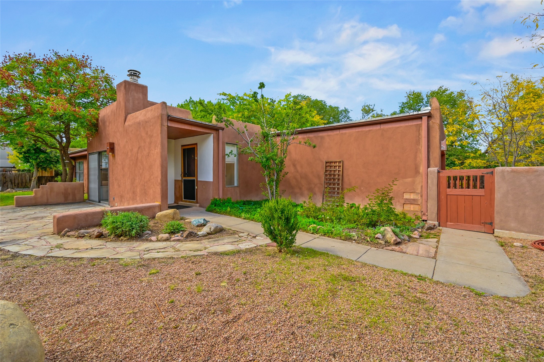 Nestled in the serene Pueblo Alegre neighborhood at the end of a quiet cul-de-sac, this bright and inviting home combines comfort with convenience. Situated opposite a lush park and surrounded by mature fruit trees, a vegetable garden, and a flagstone patio, the outdoor spaces are perfect for relaxation and connecting with nature. Inside, you'll discover new flooring and a well-maintained interior featuring a spacious, open layout and a primary bedroom with natural light and a custom closet. Enjoy easy access to scenic walking and biking along the nearby Santa Fe River Trail. Pueblo Alegre, a beloved subdivision opposite Frenchy's Field City Park, offers two small parks and a children's playground--creating an ideal setting for peaceful living just minutes from all Santa Fe has to offer.