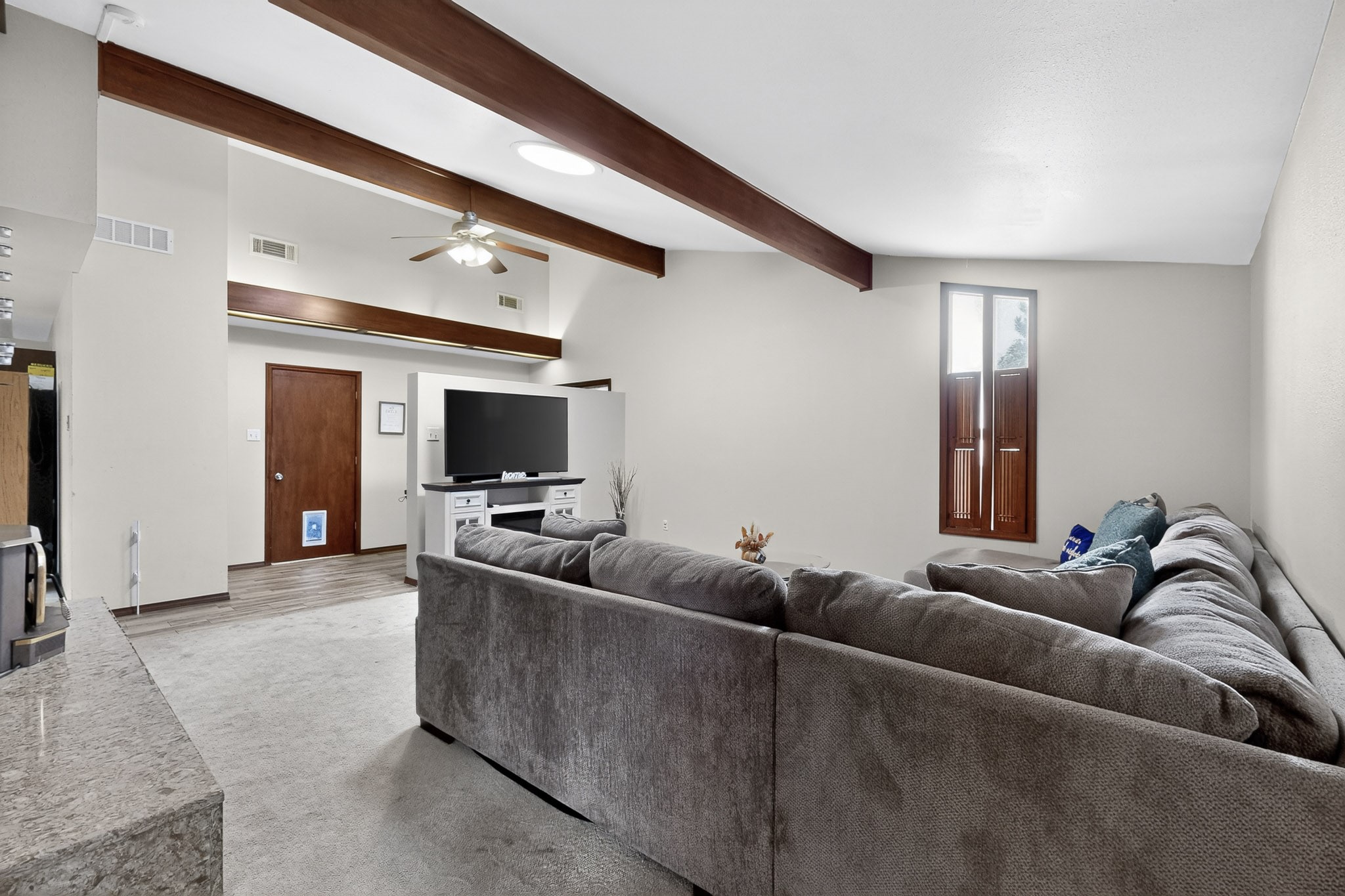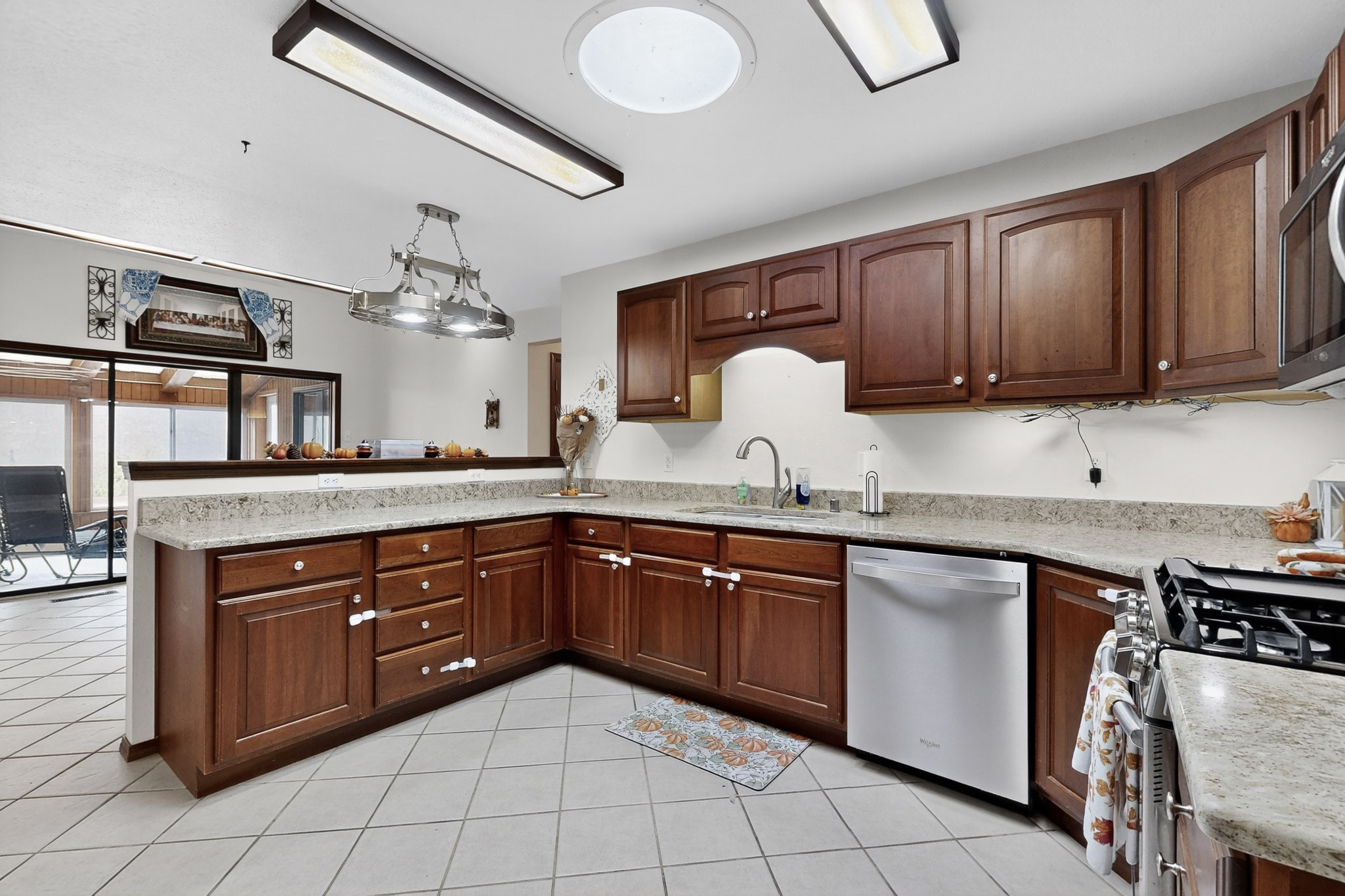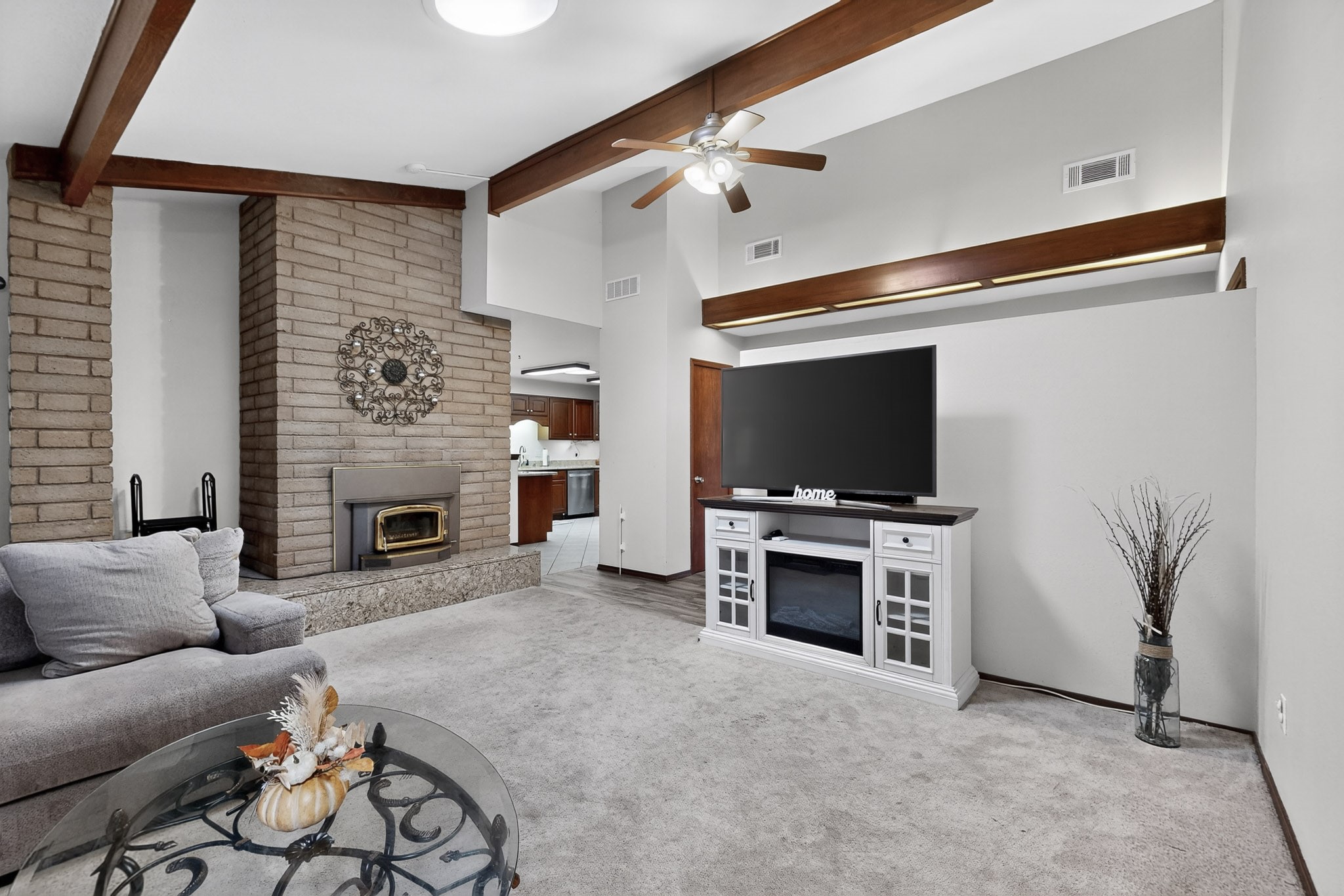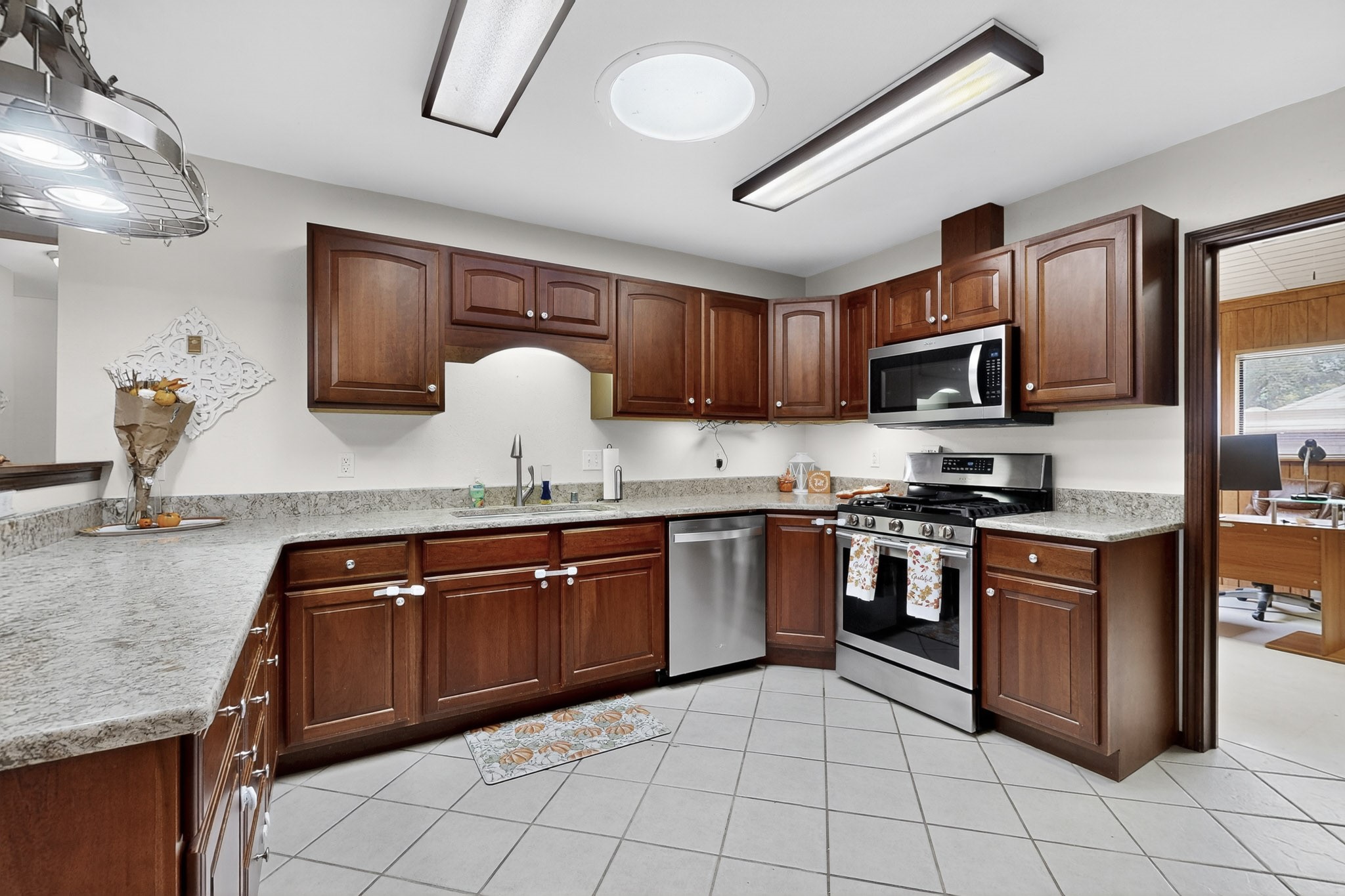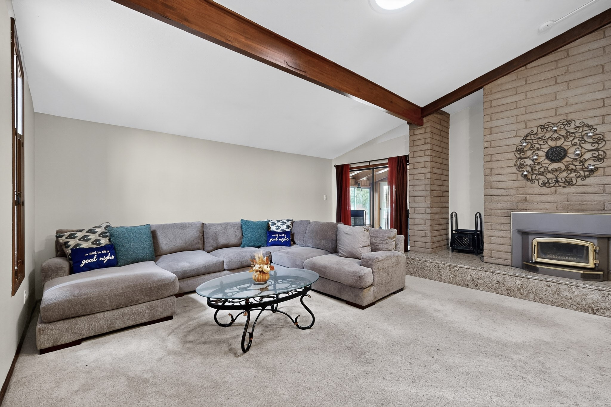 A beautifully kept 3 Bedroom, 2 bath home with a BONUS space, finished sunroom and modern comforts is up for grabs!This well loved single-family home features a spacious primary bedroom with an en-suite bathroom and walk-in closet, two additional bedrooms and a versatile bonus space ideal for a home office, gym, or whatever your heart desires. The kitchen is equipped with stainless steel appliances, granite countertops, ample cabinet space, and a dining area next to a finished sunroom, offering comfortable indoor/outdoor space for year round use. The skylights, refrigerated air, and an Aprilaire Air Purification System provide comfort throughout. The living room features tall ceilings, wood beams, and a wood burning fireplace to cozy up with. A newly replaced garage door motor was just added to the attached two car garage. Out front the curb appeal looks great and the backyard is spacious, low-maintenance, and thoughtfully sectioned. Conveniently located and move-in ready today! *Sunroom (157 sq ft) is included in total living square footage