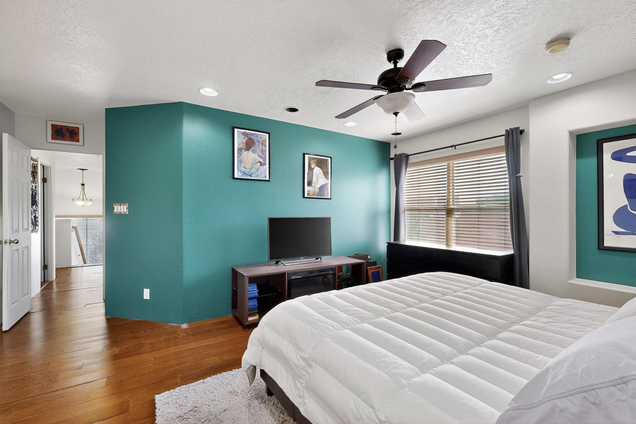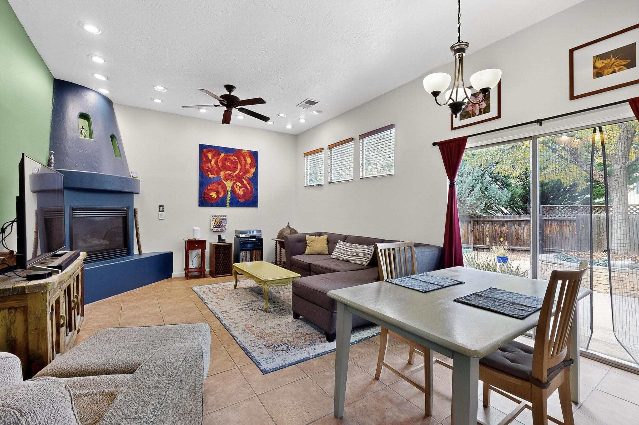 Welcome home to this warm and inviting 4-bedroom, 3-bathroom property located in one of Santa Fe's most convenient and family-oriented neighborhoods. Just minutes from top-rated schools, parks, and Southside amenities, this home offers the perfect blend of comfort and location. Enjoy a freshly updated interior with new kitchen appliances, new central heating and A/C, and professional paint throughout. The thoughtful 2-story floor plan provides room for everyone, including a spacious primary suite and three additional bedrooms, perfect for guests, family, or and a home office. Enjoy bright and colorful living areas with tall 10 foot ceilings, and nestle up by the cozy gas-powered kiva fireplace. The private fenced yard is ideal for kids, pets, and outdoor gatherings, and the 2-car heated and cooled garage can double as a year-round home gym or workshop. Move-in ready and close to everything your family needs!