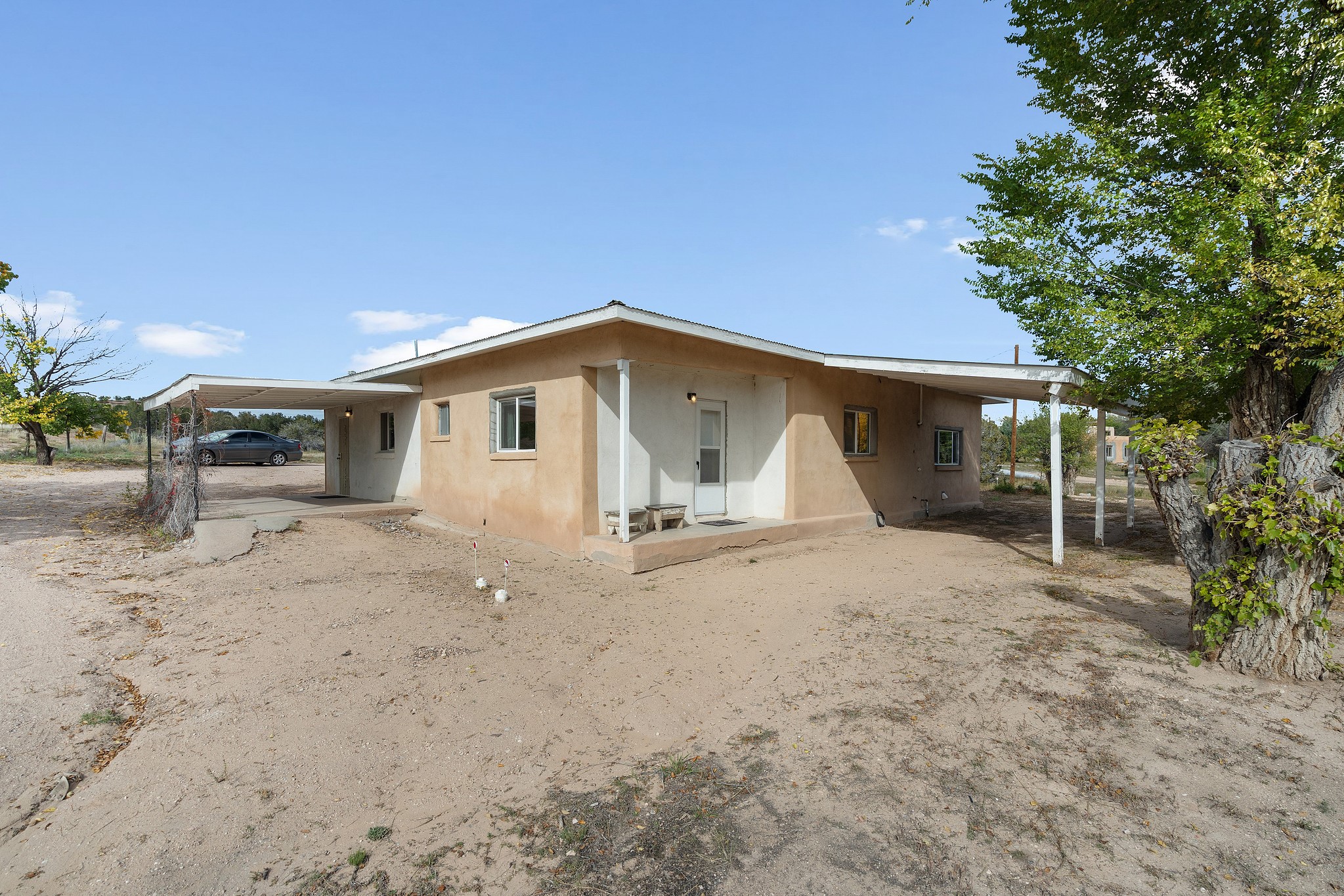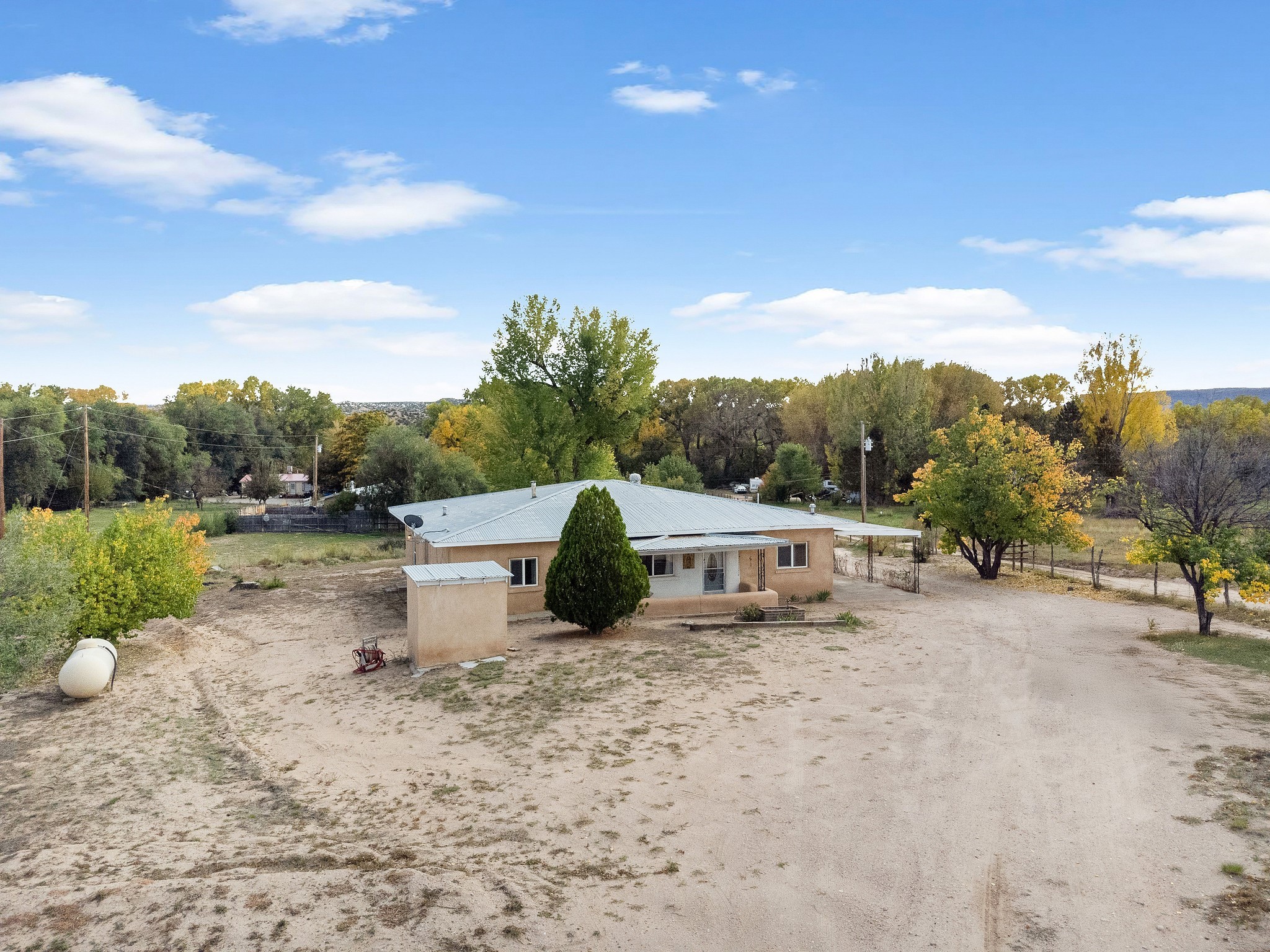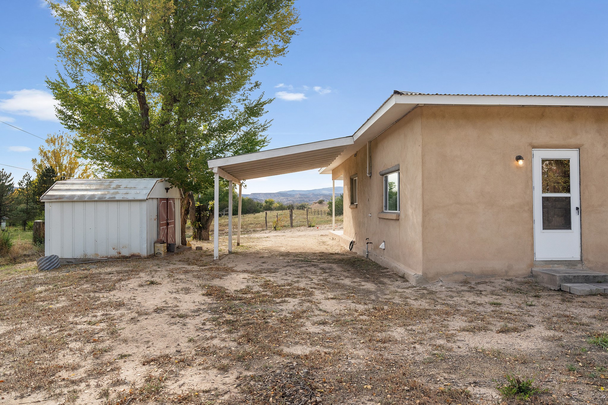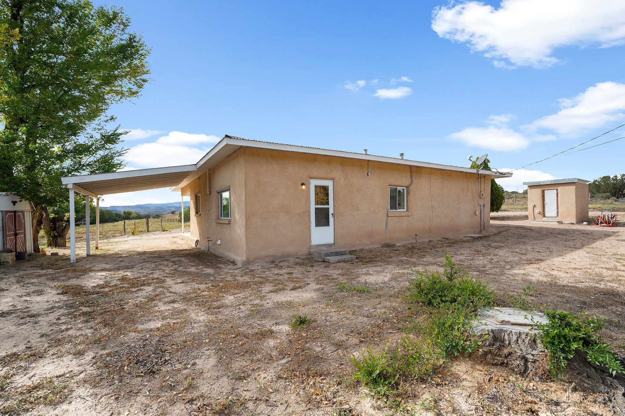 Welcome to this solid adobe home on a large 1.54 acre lot just outside of the Pojoaque Valley and near Los Alamos, NM! This home has been in the same family since its inception and it has been very well maintained. It boasts three bedrooms, one tastefully-remodeled full bath and a nice and bright open kitchen space. There are two carports to protect your cars from the elements and plenty of additional room to park all of your vehicles. Private well and updated septic system. Enjoy the convenience and easy 20 minute commute to Los Alamos and approximate 30 minute drive to Santa Fe.