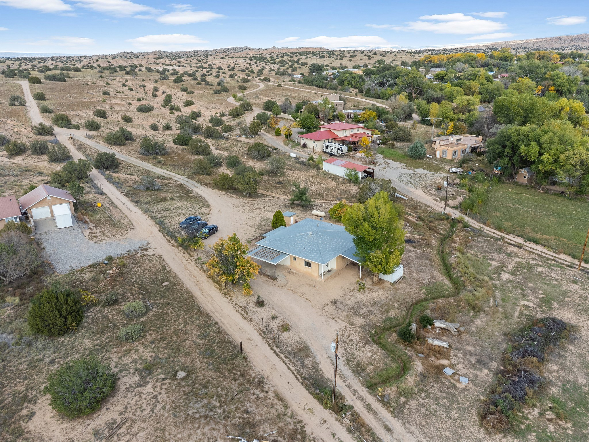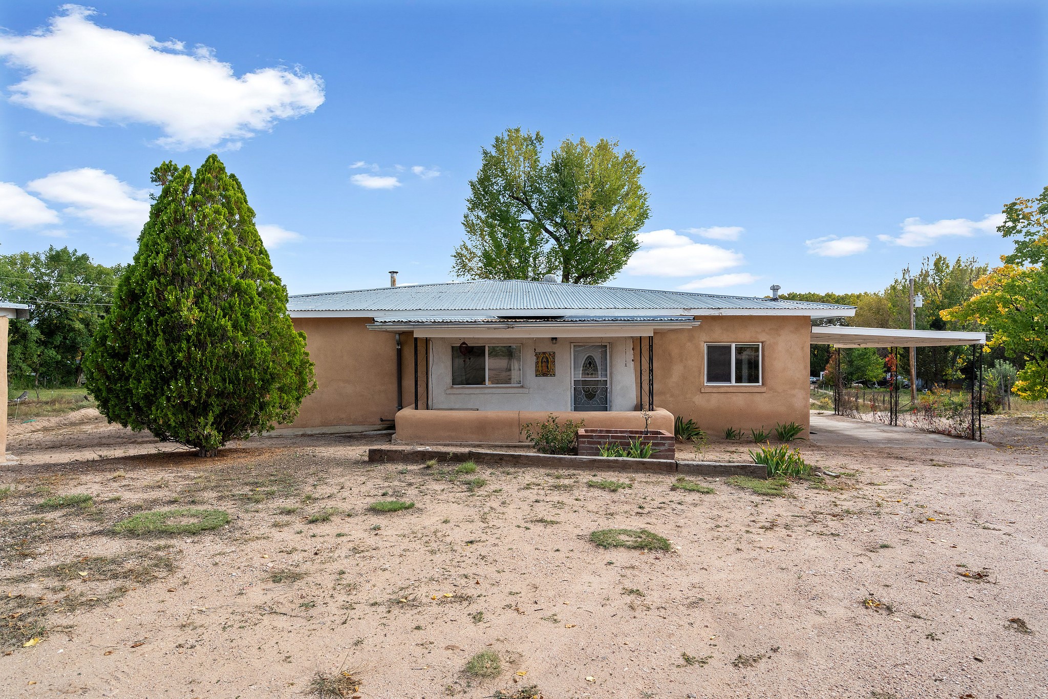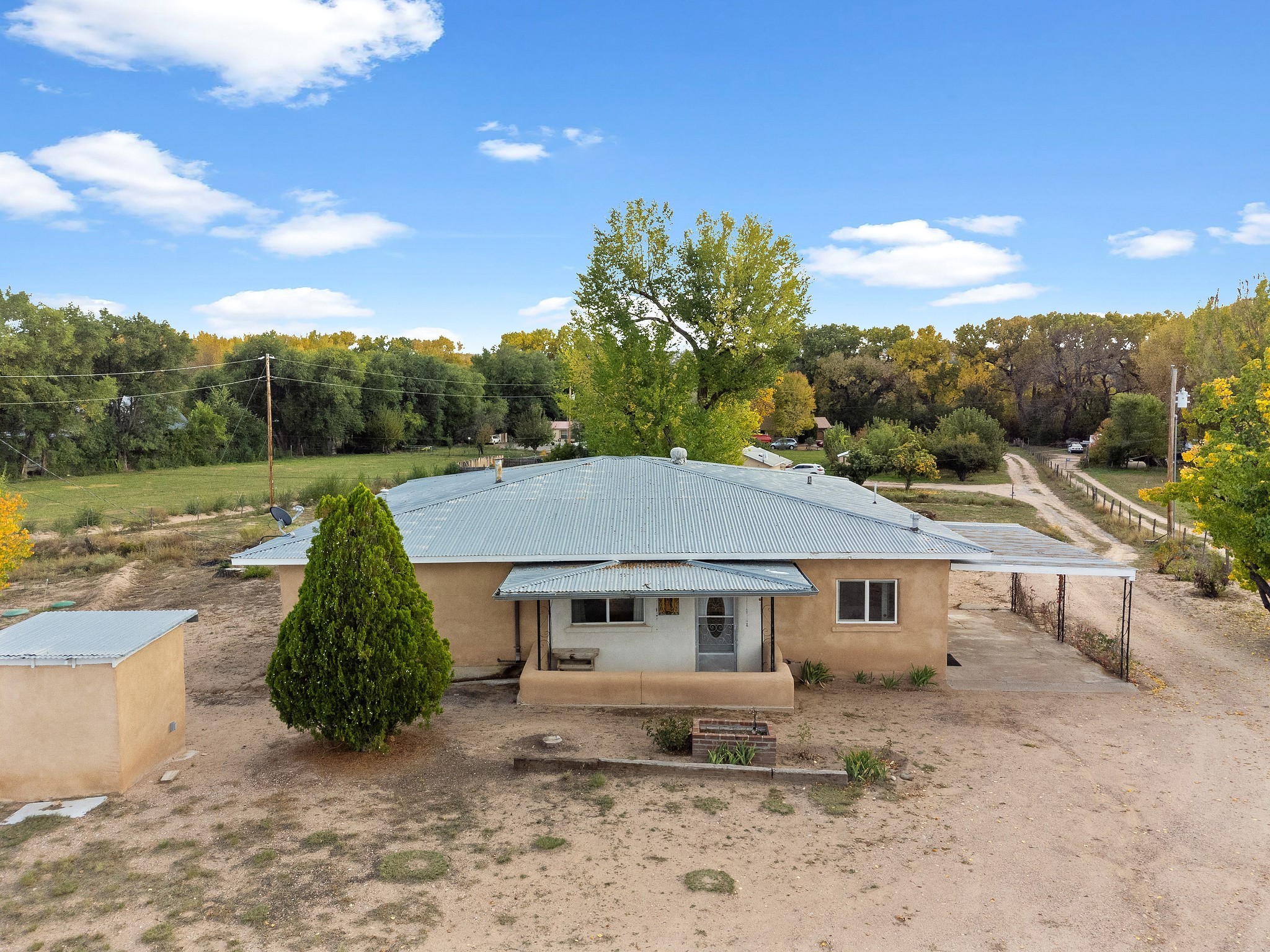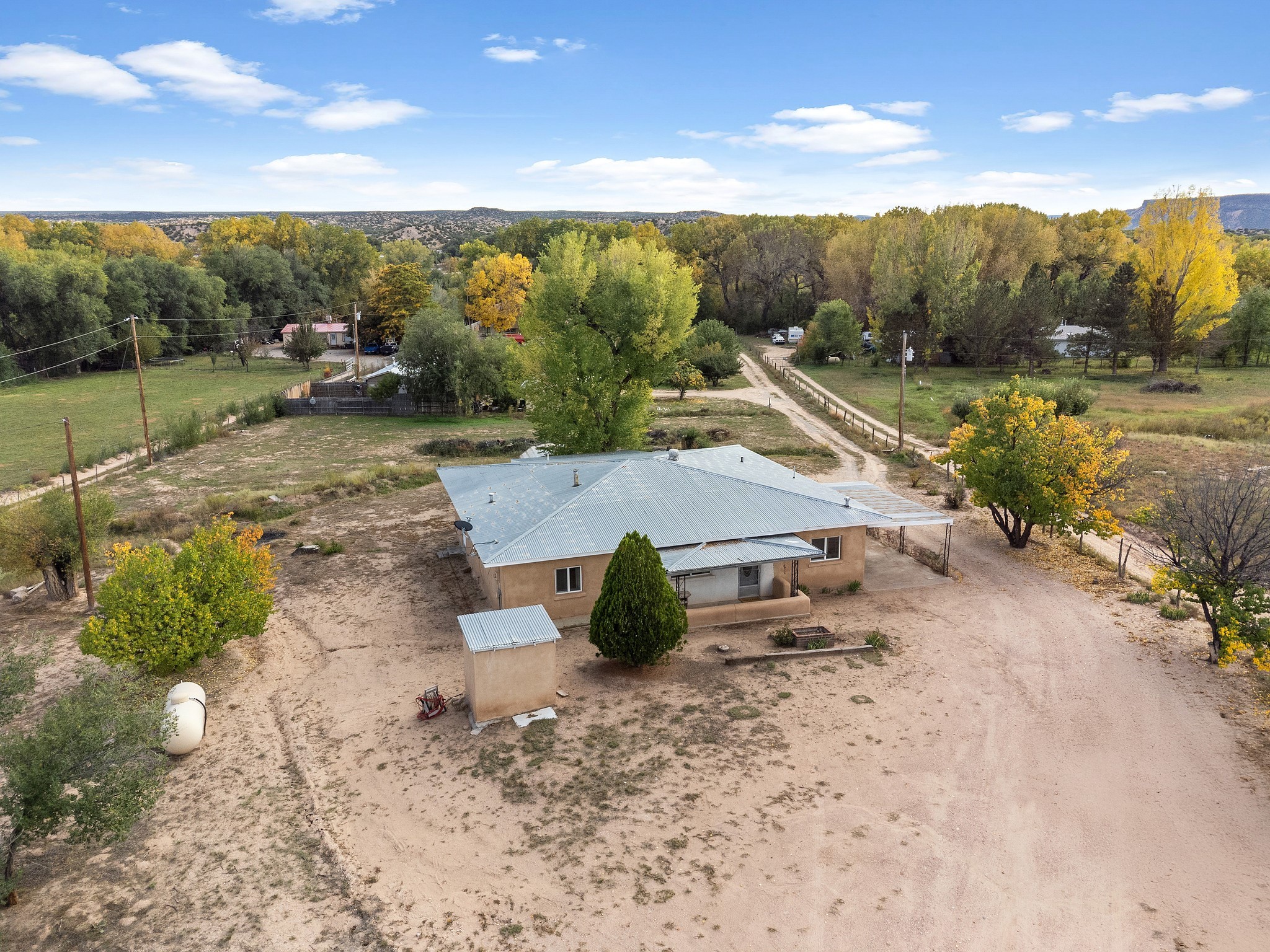Welcome to this solid adobe home on a large 1.54 acre lot just outside of the Pojoaque Valley and near Los Alamos, NM! This home has been in the same family since its inception and it has been very well maintained. It boasts three bedrooms, one tastefully-remodeled full bath and a nice and bright open kitchen space. There are two carports to protect your cars from the elements and plenty of additional room to park all of your vehicles. Private well and updated septic system. Enjoy the convenience and easy 20 minute commute to Los Alamos and approximate 30 minute drive to Santa Fe.