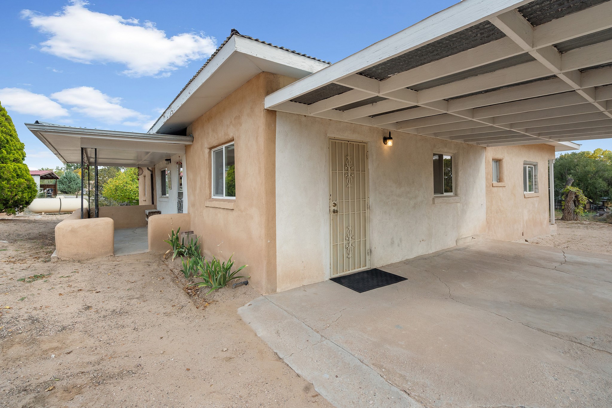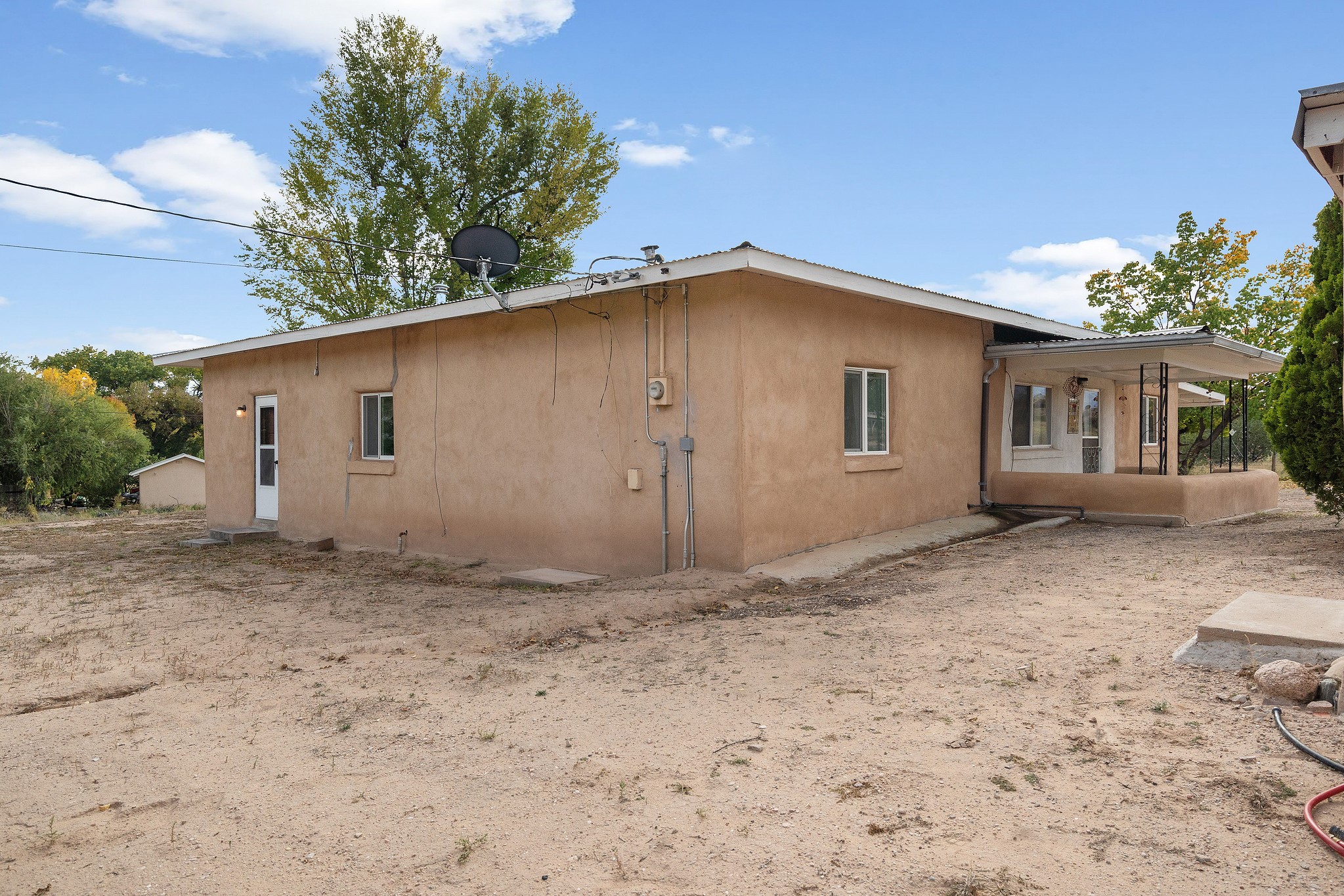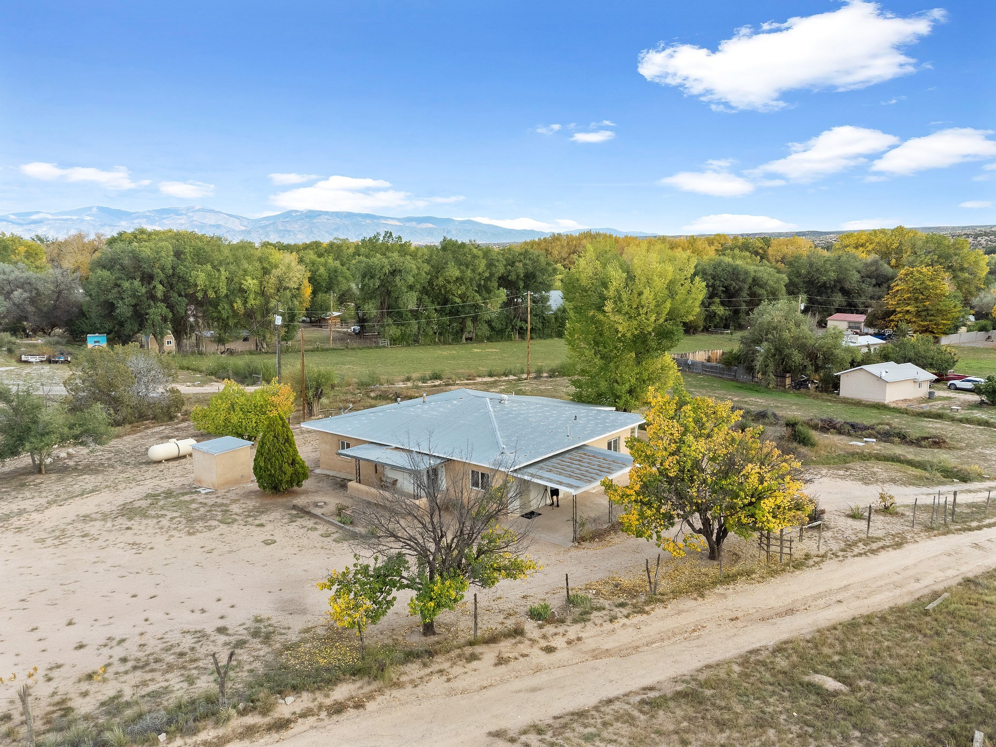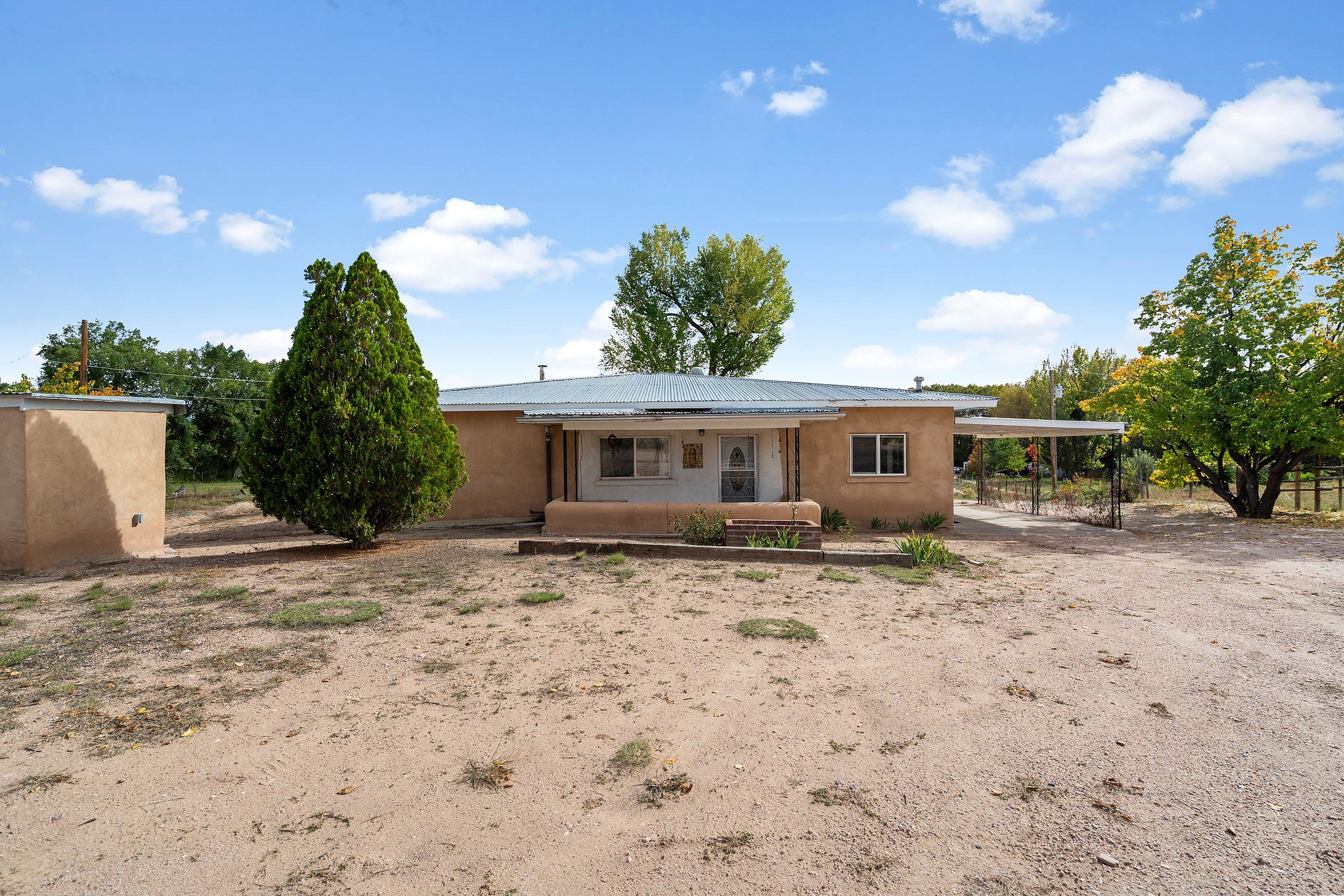 Welcome to this solid adobe home on a large 1.54 acre lot just outside of the Pojoaque Valley and near Los Alamos, NM! This home has been in the same family since its inception and it has been very well maintained. It boasts three bedrooms, one tastefully-remodeled full bath and a nice and bright open kitchen space. There are two carports to protect your cars from the elements and plenty of additional room to park all of your vehicles. Private well and updated septic system. Enjoy the convenience and easy 20 minute commute to Los Alamos and approximate 30 minute drive to Santa Fe.