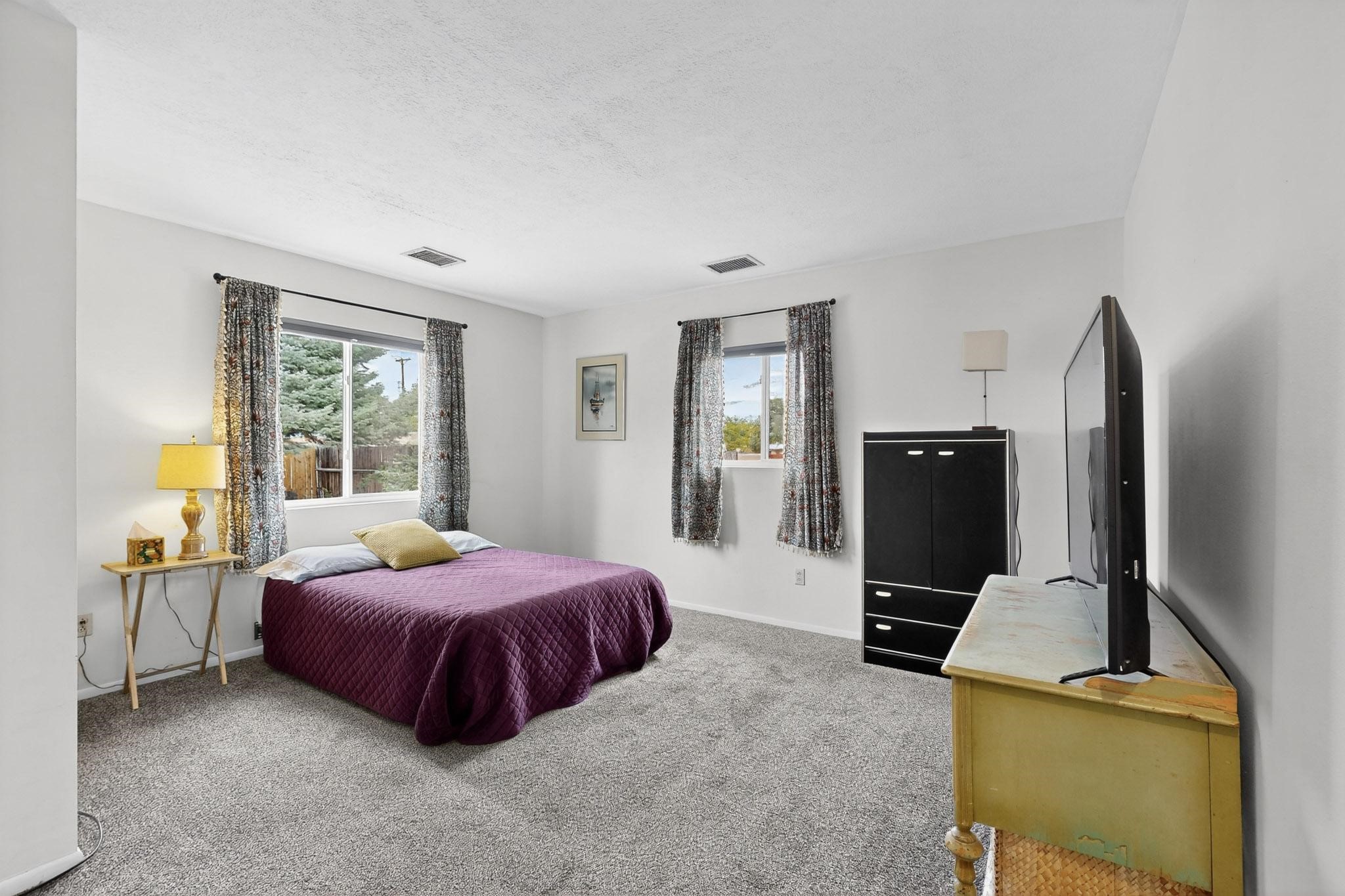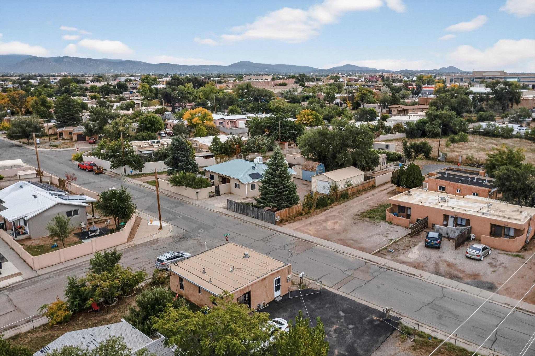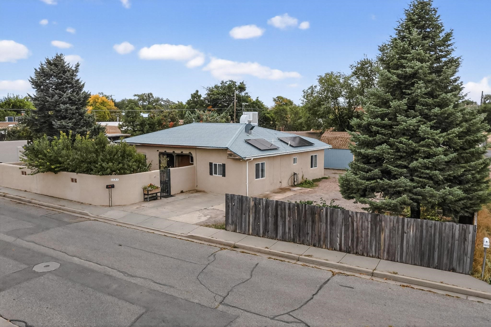 Enjoy country living in this well cared for .21 acre property in the heart of Santa Fe! The home's entry courtyard, with its new ramada, sets the tone for relaxed outdoor living. Inside, the adobe portion of the home, built in 1947, exudeswarmth and includes the spacious updated Kitchen, Living Room, Primary Bedroom; the newer stick-built wing features 2 substantial guest bedrooms, the primary bathroom and a remodeled bathroom. Interior improvements include newwindows, new paint, newer water heater, furnace and appliances. Owners have added a fabulous detached 18' X 30' garage, and will convey several sheds, a camping trailer, a green house and a hot tub, if wanted. Also included is fully paid for solar panels that were added in 2024. Lush and charming gardens with fruits, veggies and herbs plus mature trees on irrigation further enhance the property's appeal. A large basement is accessible from the side of the home for additional storage. Come see this sweet home at your first opportunity!