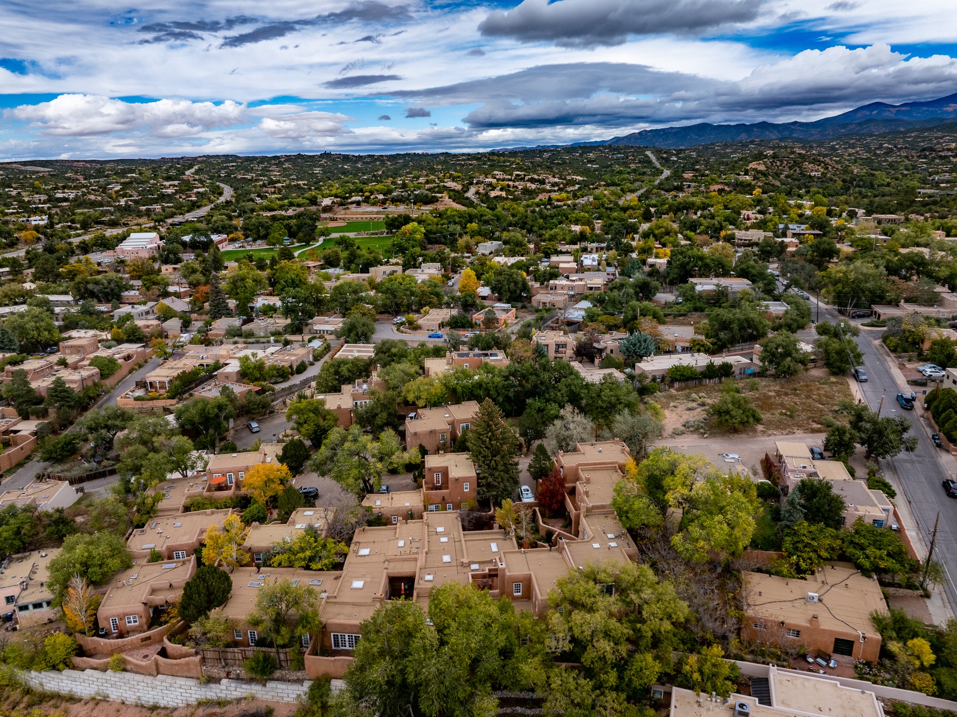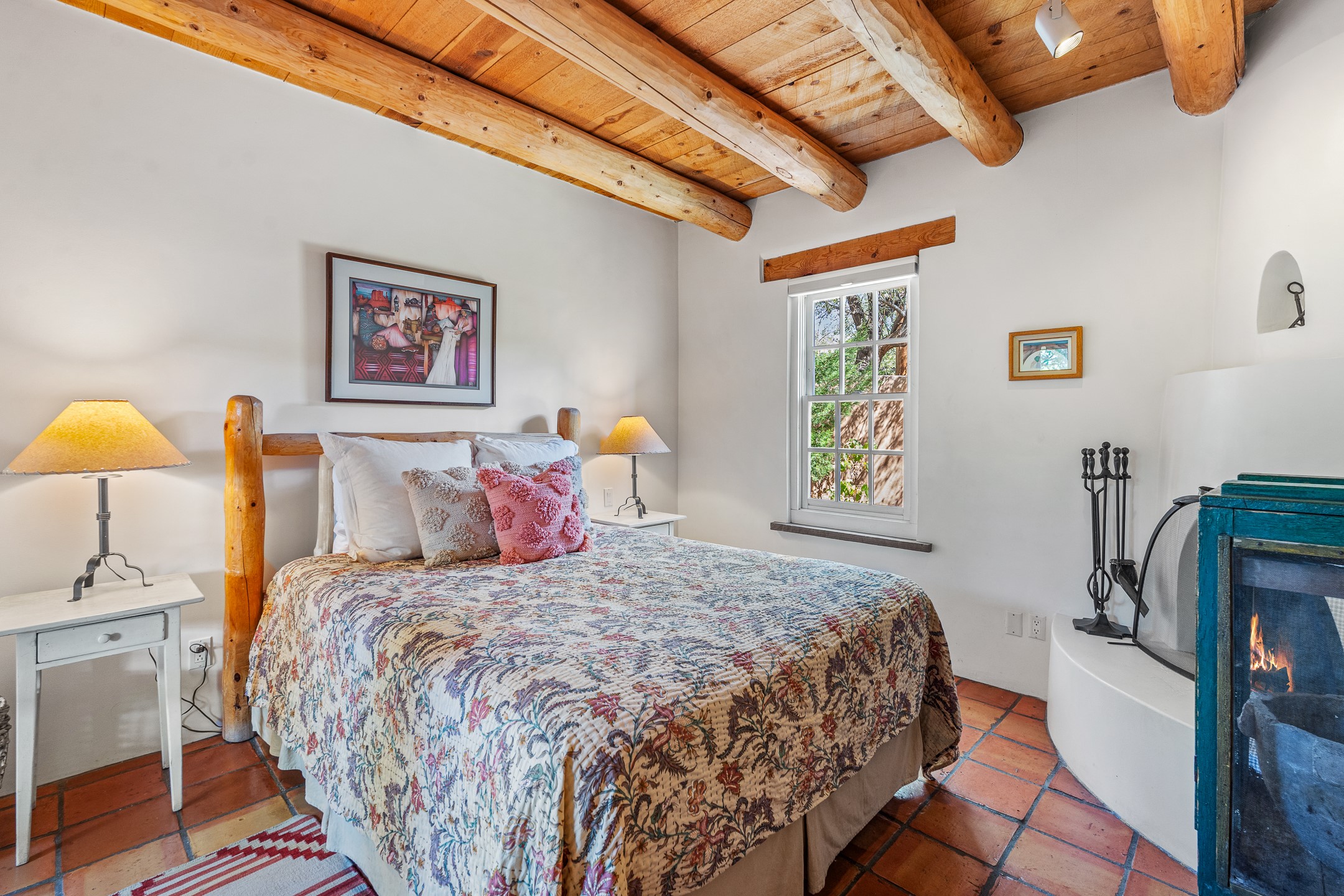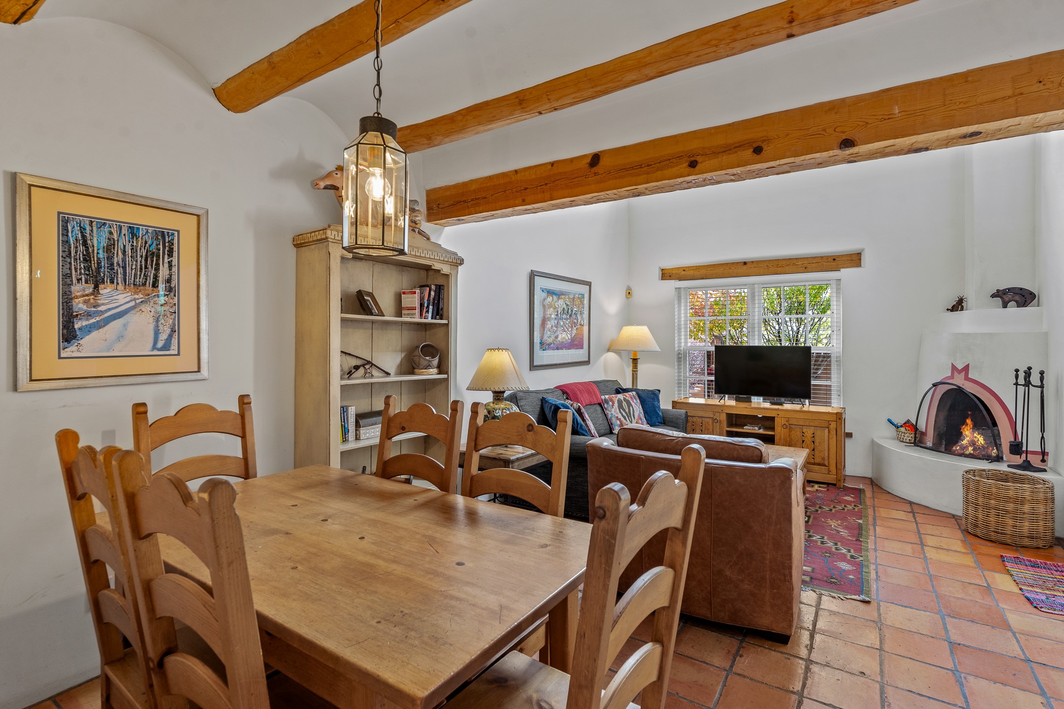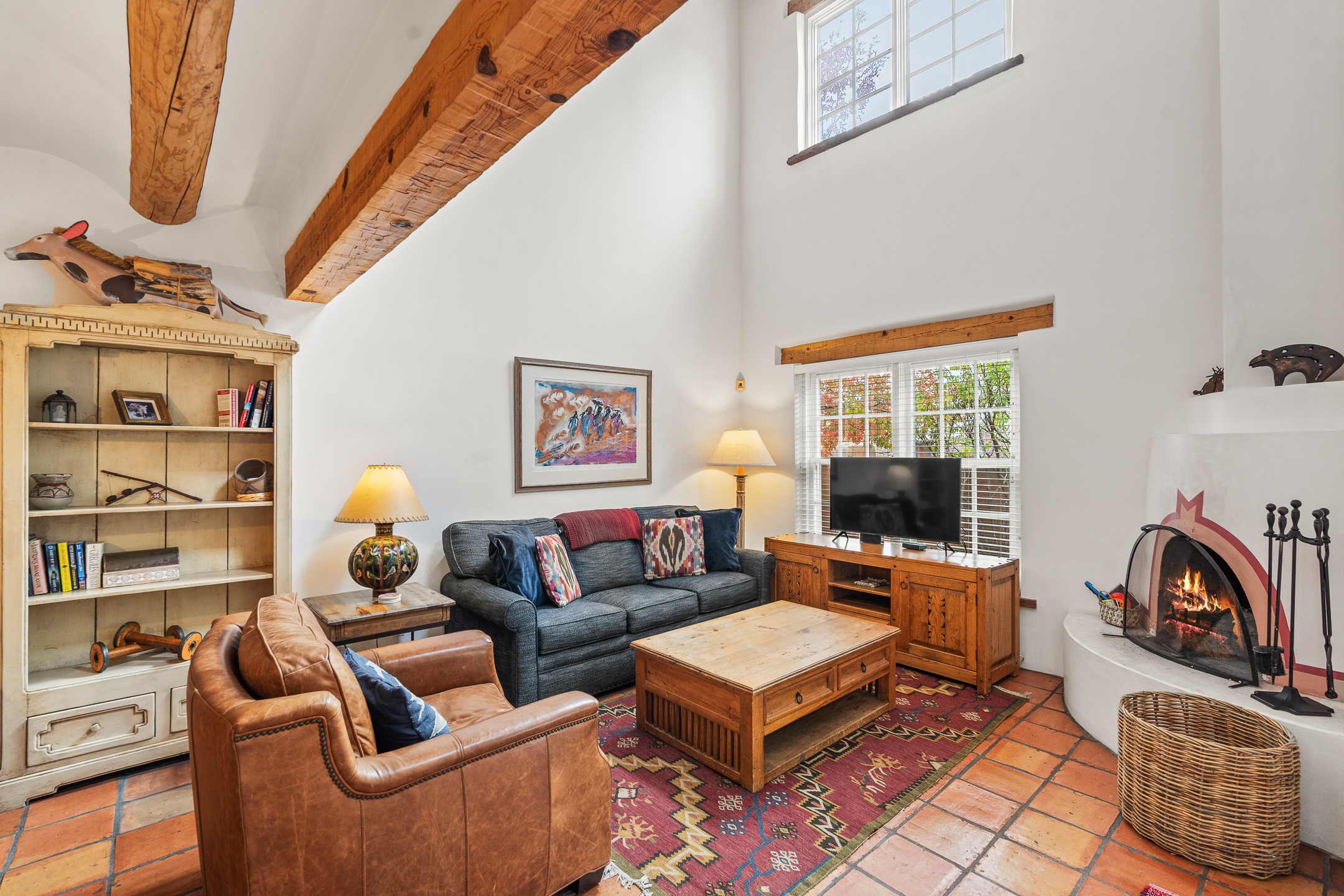 Enjoy effortless Santa Fe living in this fully furnished, professionally managed downtown retreat. Light-filled and full of Southwestern character, the living space offers soaring ceilings, vigas, and a cozy kiva fireplace -- perfect for recharging between Santa Fe adventures.The open kitchen, dining, and living areas flow naturally to a private walled courtyard with a Weber grill, perfect for outdoor dining. Upstairs, a sunny terrace offers both sunrise and sunset views. There's excellent separation between the bedrooms -- one on the main level with a nearby guest bath, and the other upstairs with its own en-suite. Both feature corner kiva fireplaces and direct outdoor access: the downstairs bedroom opens to the private courtyard, while the upstairs suite connects to the viewing terrace. A cozy loft also on the 2nd floor makes the perfect spot to read or unwind.Authentic details -- Saltillo tile & wood floors, vigas and colorful Talavera accents -- bring warmth and personality throughout. With all structures and contents maintained by the HOA, this is a truly turnkey getaway that captures the easygoing charm and vibrant spirit of downtown Santa Fe living. Each ownership retains 13 weeks/year on a rotating schedule. The new owner of 12-3 will enjoy the 2026 Holiday season with occupancy December 18-Jan 1, 2027!