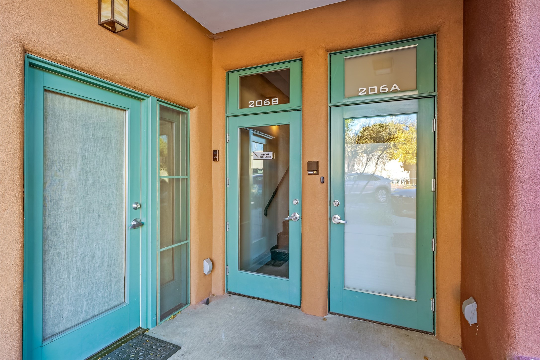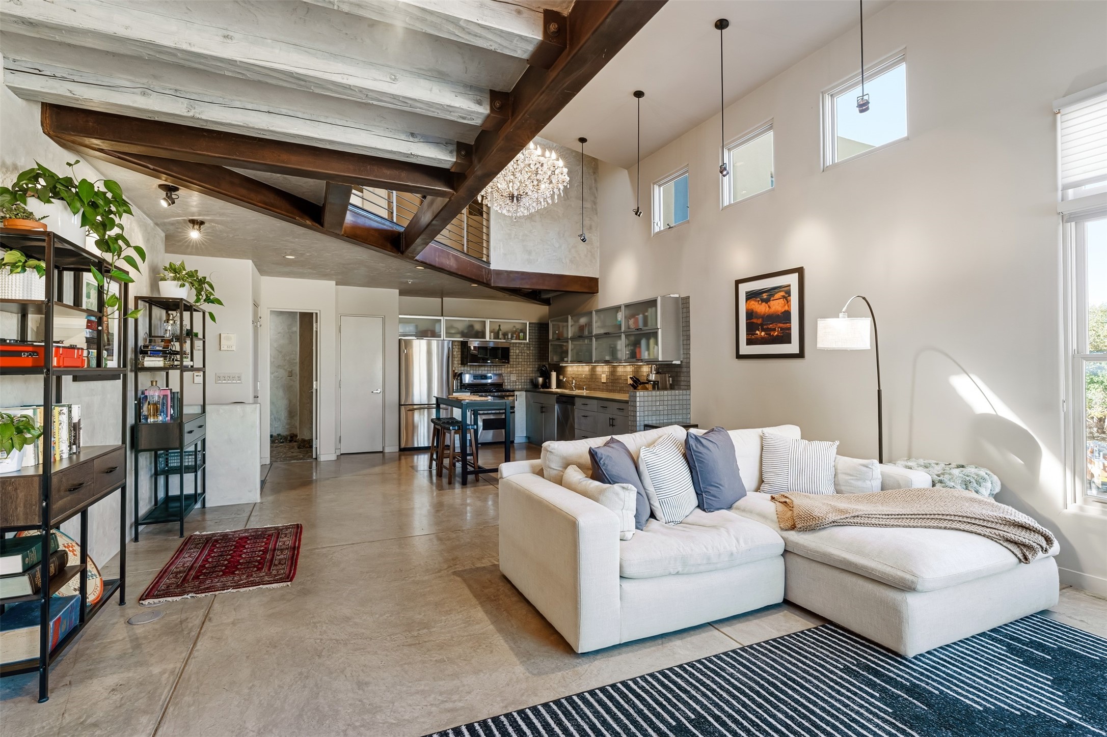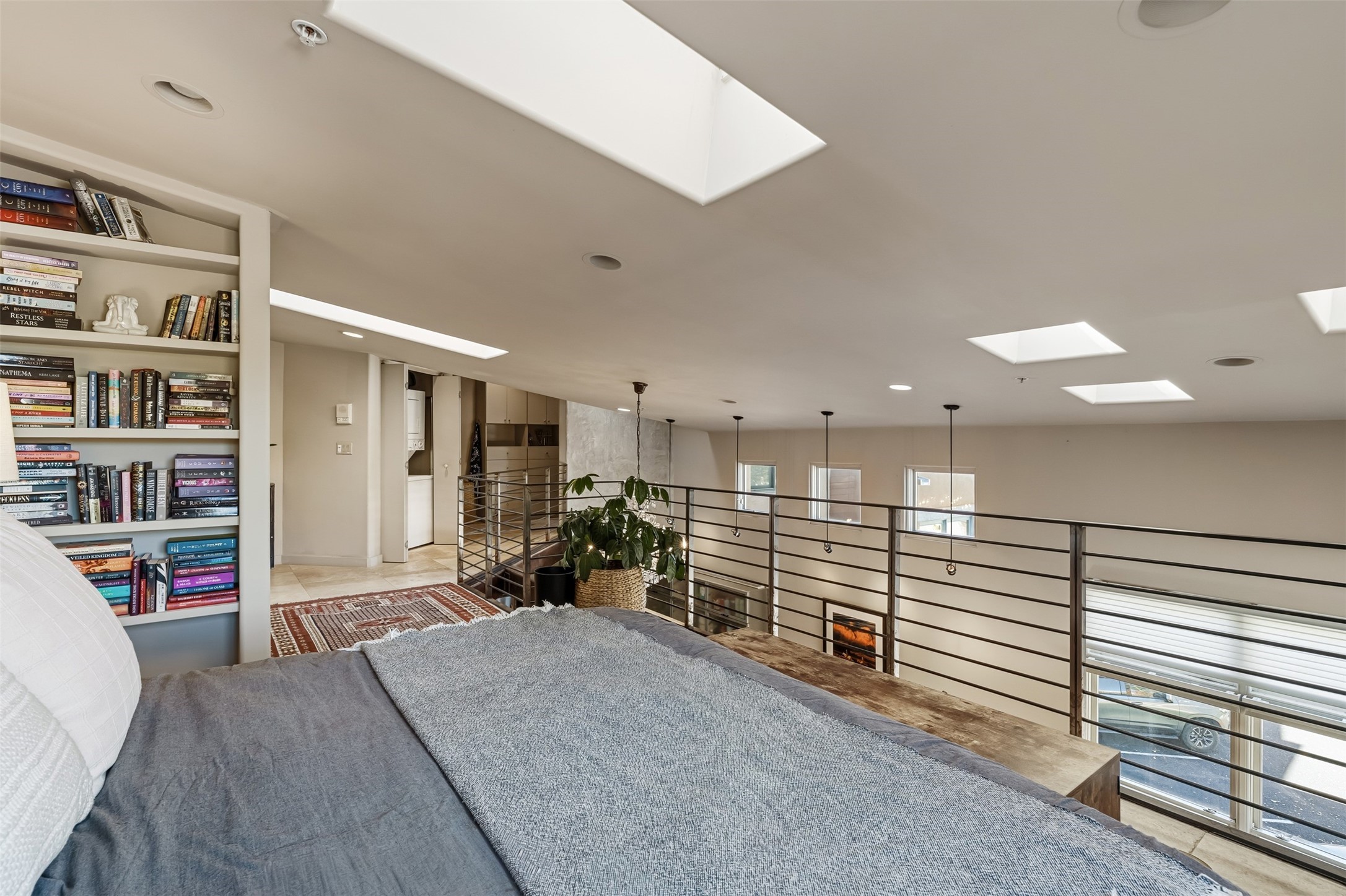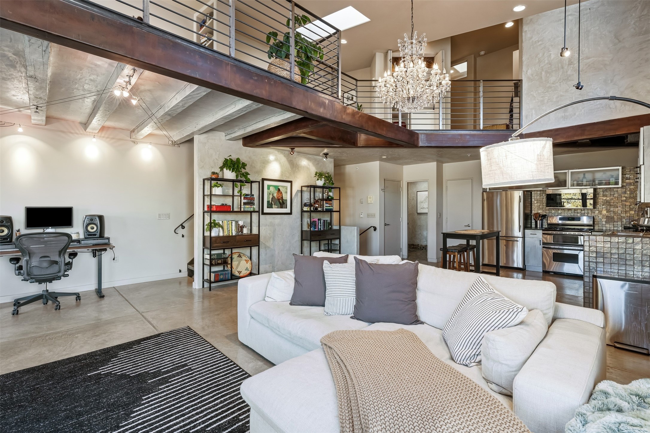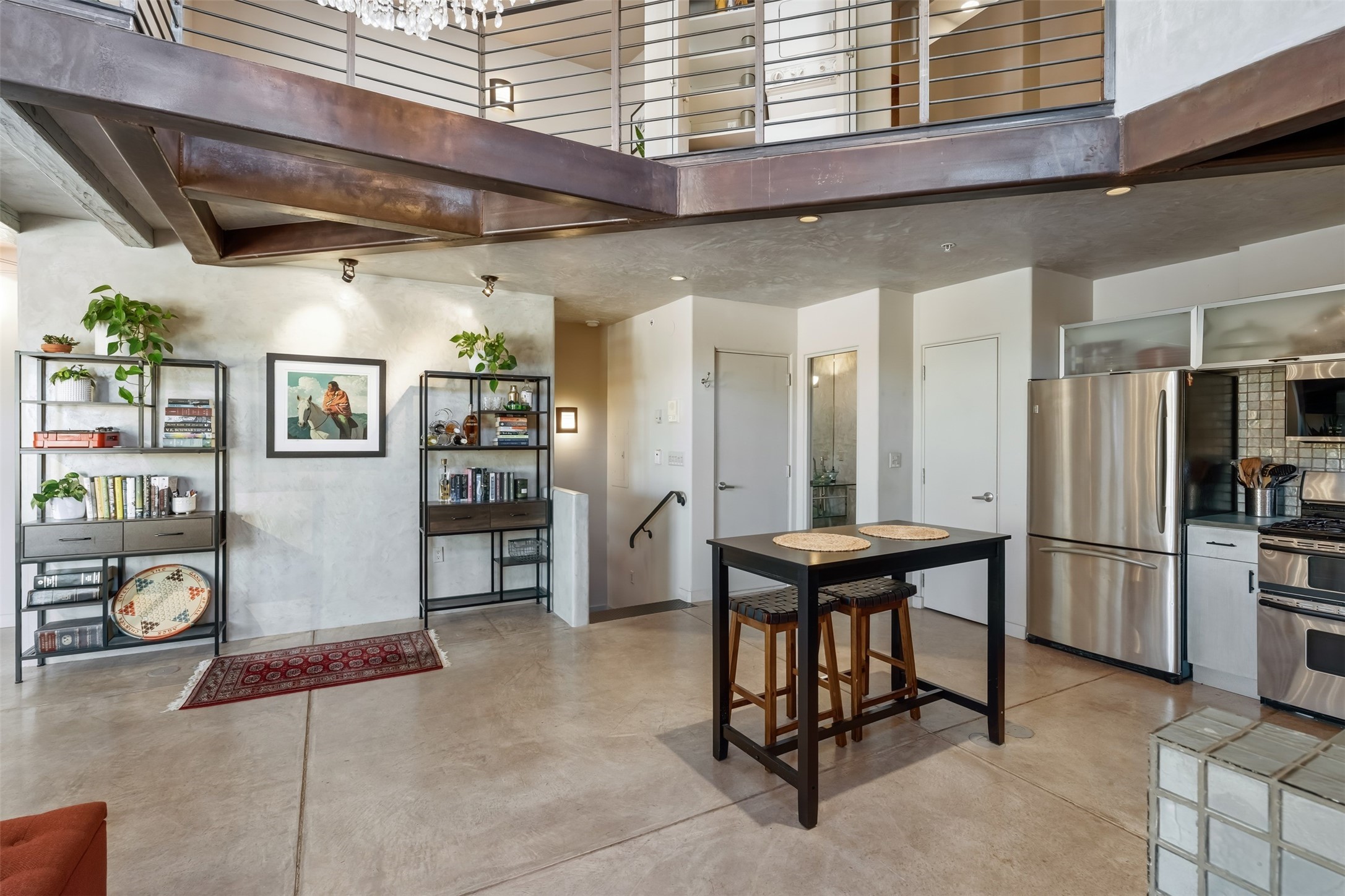 Contemporary live/work condo located in the highly sought-after South Capitol neighborhood--just a short walk to the Santa Fe Plaza and less than a mile from the Railyard District. Enjoy easy access to Whole Foods, Trader Joe's, Natural Grocers, popular restaurants, and a variety of local amenities. This two-level, second-floor residence offers 1 bedroom and 2 baths (1 full, 1 half) and is quietly tucked away at the back of the complex for added privacy. Expansive windows frame views of the Sangre de Cristo Mountains, while clerestory windows and soaring 17' ceilings fill the space with natural light.The open floor plan features a modern kitchen, sleek concrete floors with in-floor radiant heat, and new evaporative cooler. Step out from the living area onto a spacious deck to enjoy outdoor living and mountain views. Upstairs, the lofted bedroom offers generous closet space, a bath with a steam shower, and stackable laundry. Don't miss this unique opportunity to own a stylish and light-filled home in one of Santa Fe's most desirable neighborhoods.