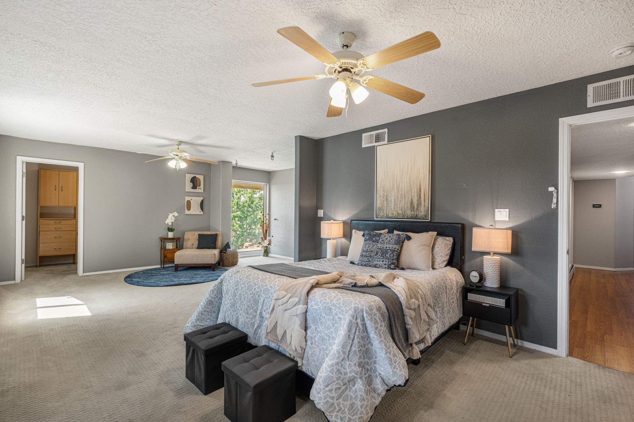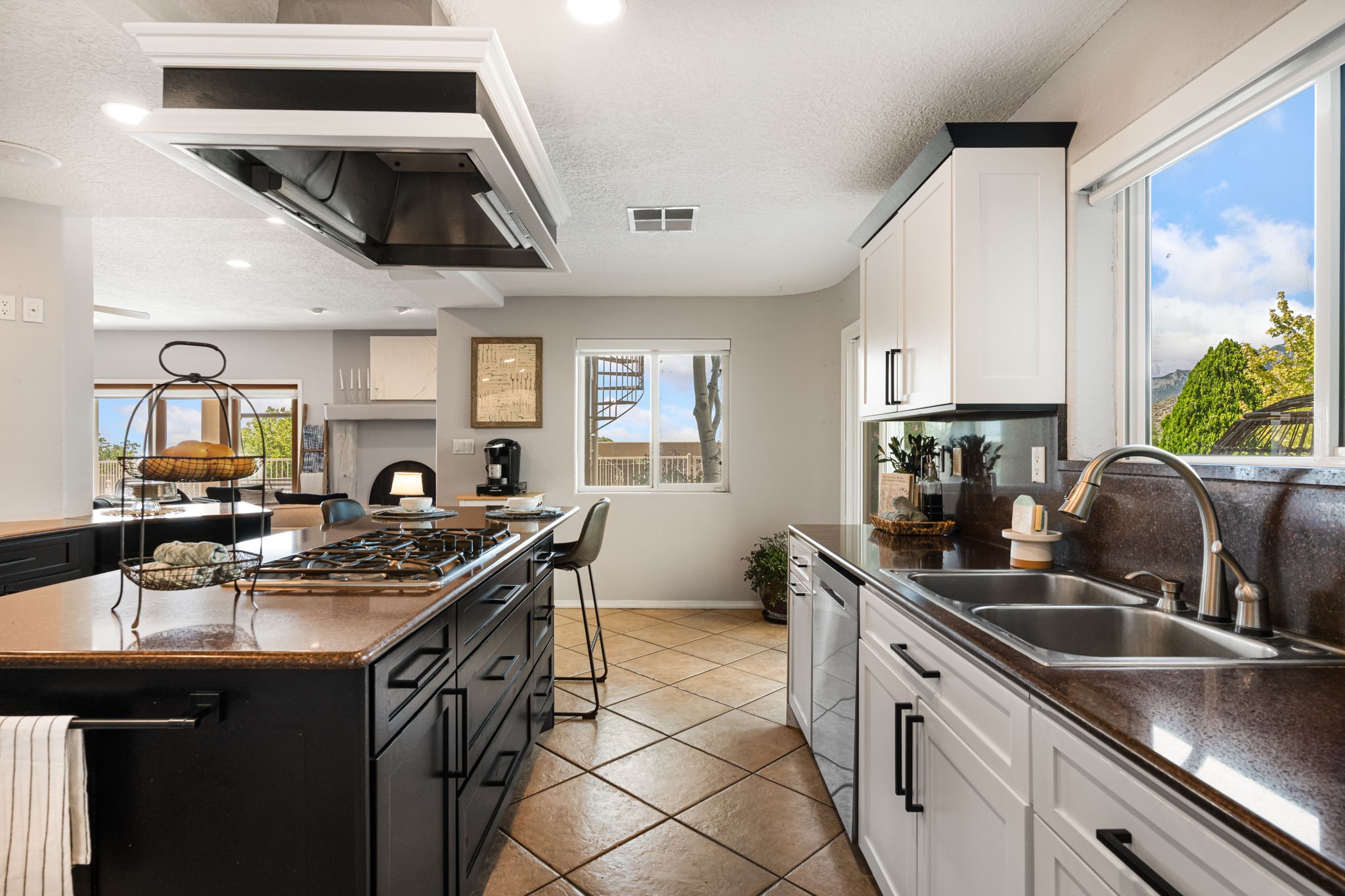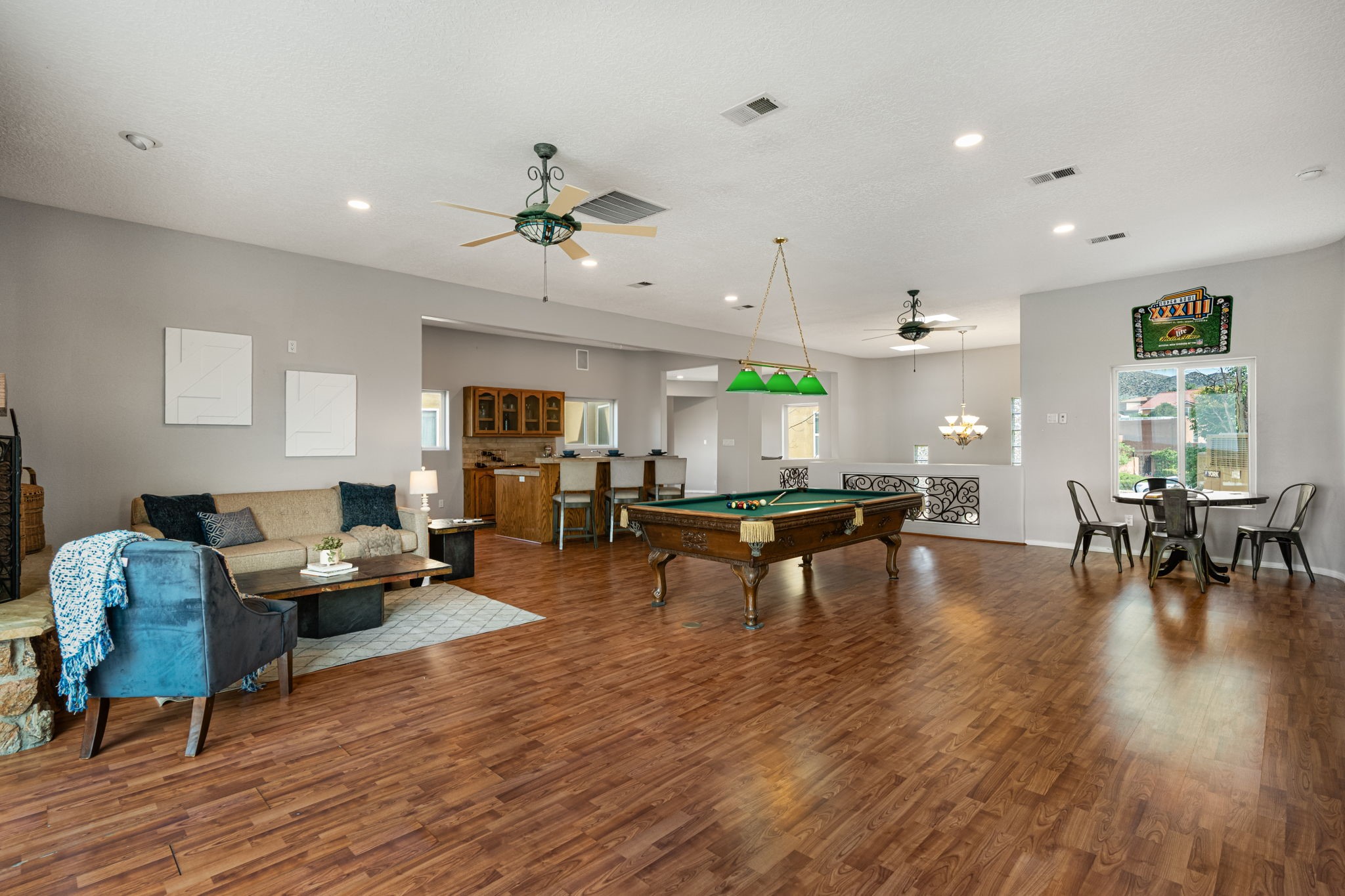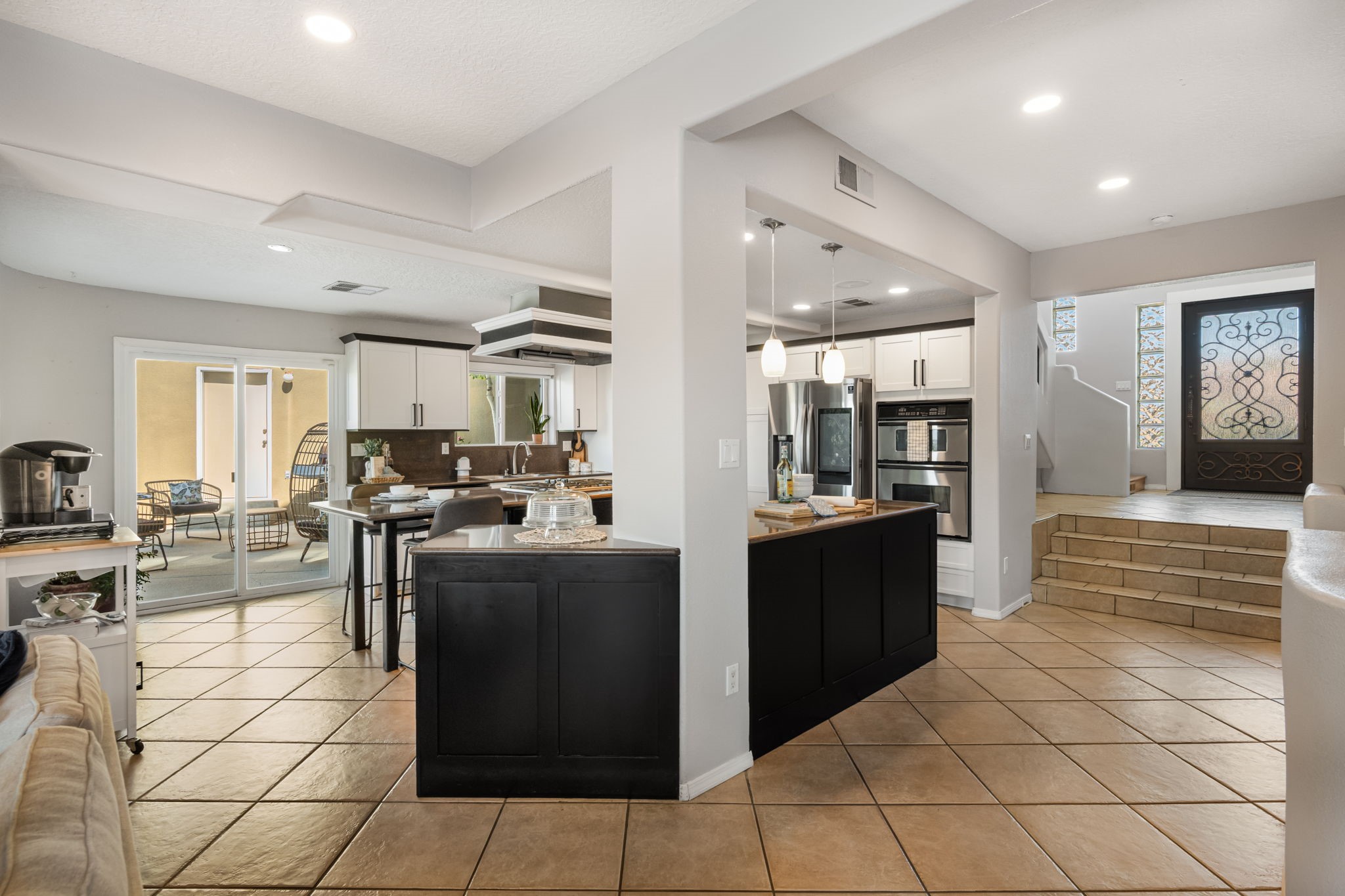 This elegant 1809 Archuleta Dr NE. This expansive 6-bedroom, 4-bath home offers an updated kitchen that blends style and functionality, two primary suites, a spacious upstairs living/game room with a bar, and an inviting atrium. Enjoy a cinematic experience in the private movie theater room, or take advantage of the tandem pull-through garage, which leads to a beautifully landscaped backyard. Nestled next to Embudo Canyon, the property ensures privacy and tranquility. The outdoor space includes an inground pool, outdoor kitchen, fruit trees (peach, cherry, apricot), and grapevines--perfect for both relaxation and entertainment.