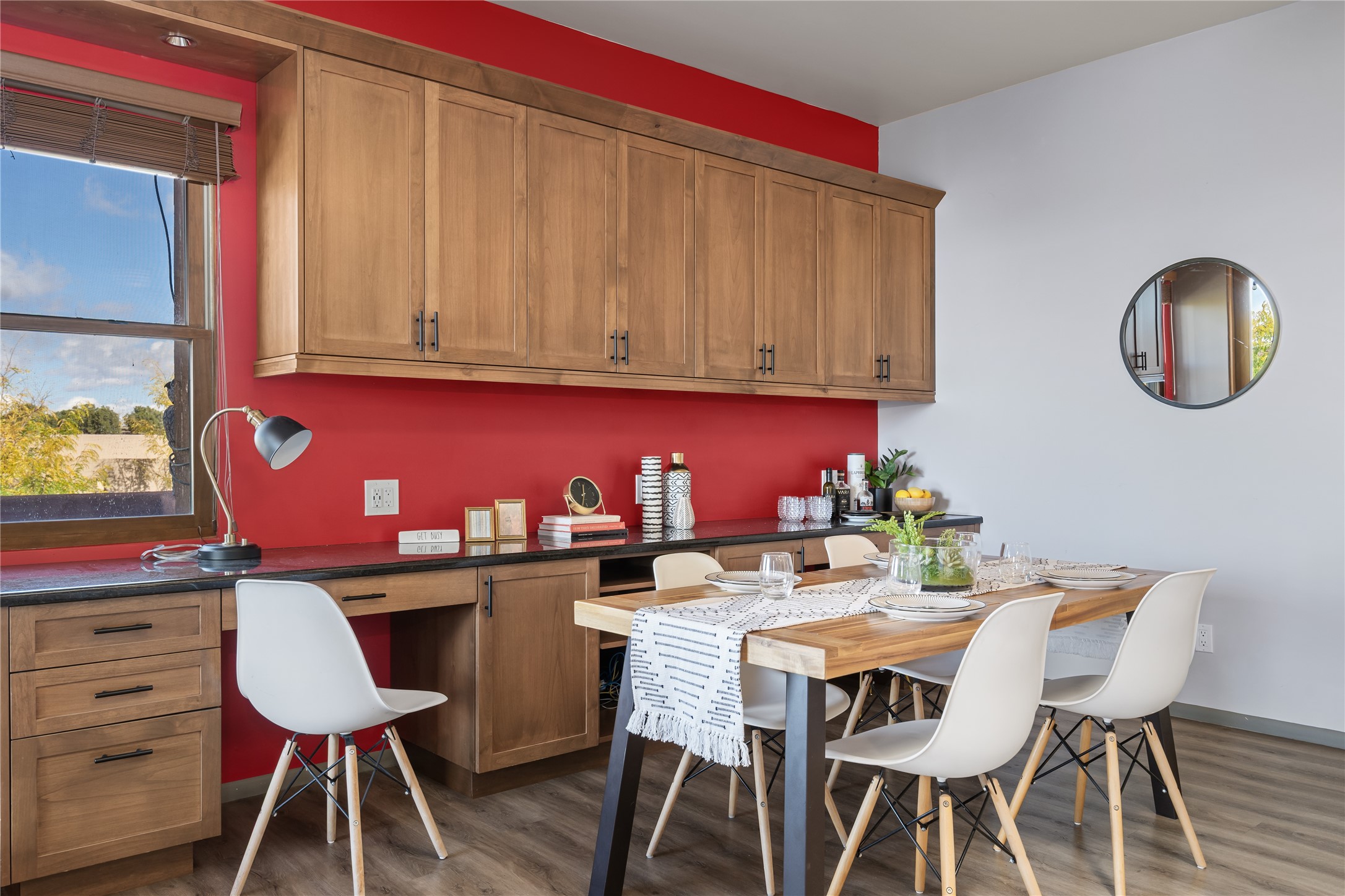 This modern corner-lot property in desirable Oshara Village offers the perfect blend of work and lifestyle flexibility. The ground floor features a spacious gallery/workshop--ideal for an artist, creative professional, or small business--divided into two rooms with expansive windows that flood the space with natural light. Additional highlights include a half-bath, workspace with a sink, durable concrete floors, and a lovely walled courtyard with flagstone, artificial grass, a pergola entertaining area, fountain, and mature landscaping, with direct access to a two-car garage.Upstairs, the light-filled two-bedroom, two-bath residence impresses with soaring ceilings, large windows, and an open floor plan. The chef's kitchen includes abundant workspace, a barstool-friendly island, sleek tile backsplash, and a GE Monogram six-burner cooktop/oven. The living area extends to a delightful outdoor deck, perfect for entertaining or enjoying mountain views. Luxury vinyl plank floors run throughout, creating a warm, modern feel.The spacious primary suite boasts a California Closets walk-in with built-ins, plus a spa-like bathroom with dual sinks, soaking tub, and separate shower. A second upstairs entrance from the back courtyard offers added flexibility--allowing the option to rent one level while living in the other.This unique property is a rare opportunity to combine work and home life in one stylish, functional space--or two separate spaces. Many other adjacent homes have also repurposed the downstairs as living space to provide the ultimate in comfort with multiple living areas. The popular Pantry Dos restaurant is within walking distance, along with an inviting community park and sculpture garden. The Santa Fe Community College with gym and swimming pool is nearby, and Richards and Rabbit Road offer easy access to Cerrillos/Zafarano shopping and the St. Francis Drive shopping area. The Plaza is an easy 15-minute drive.