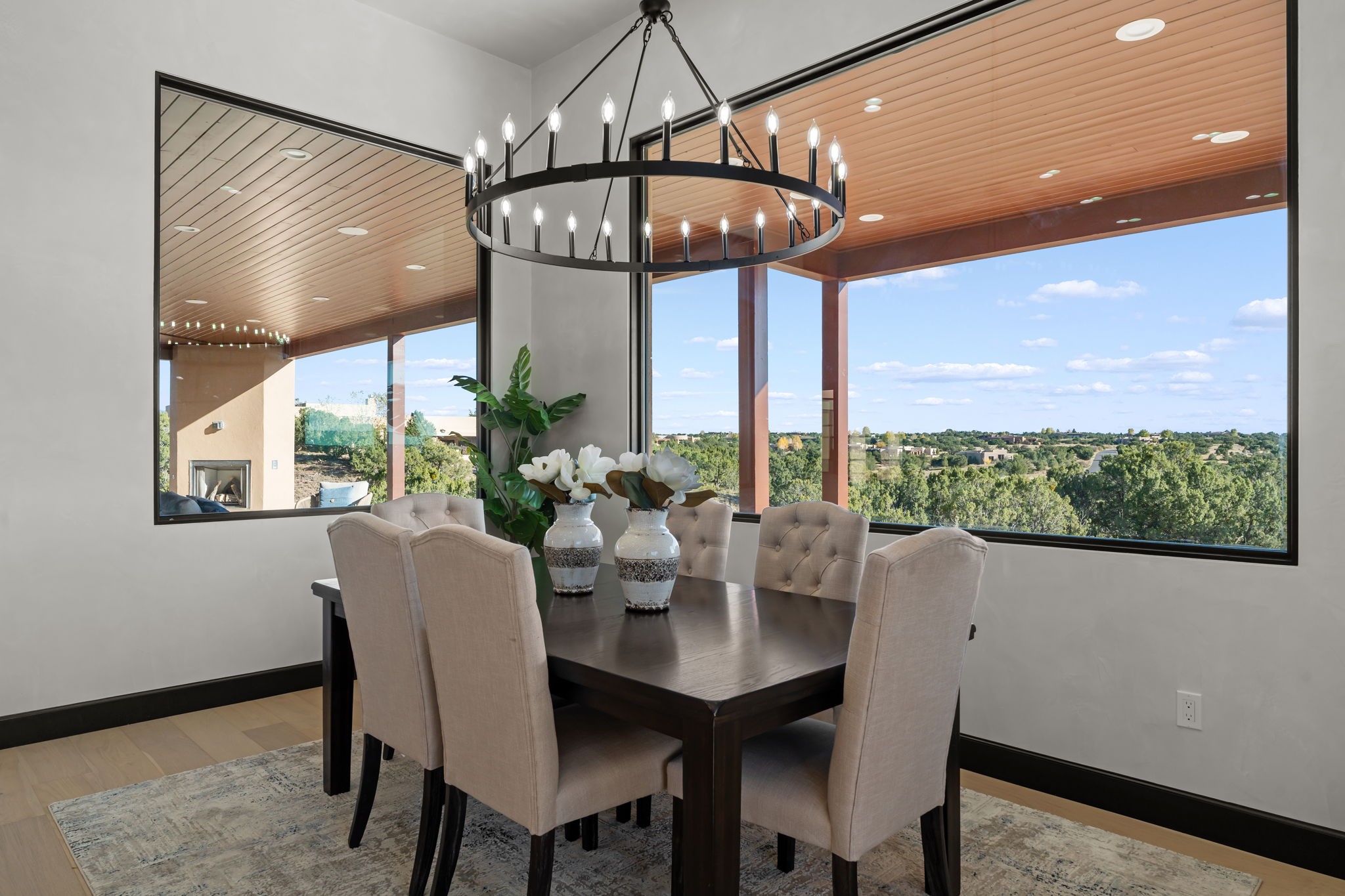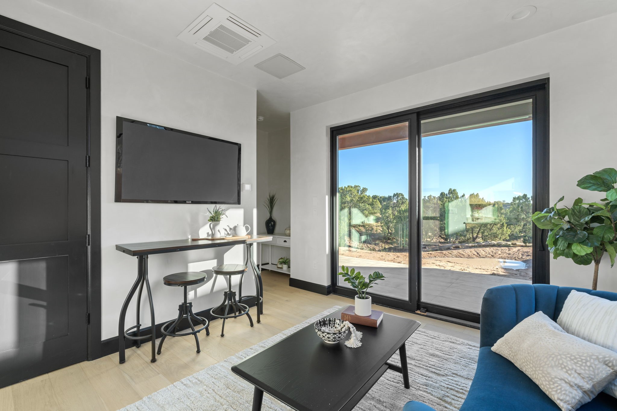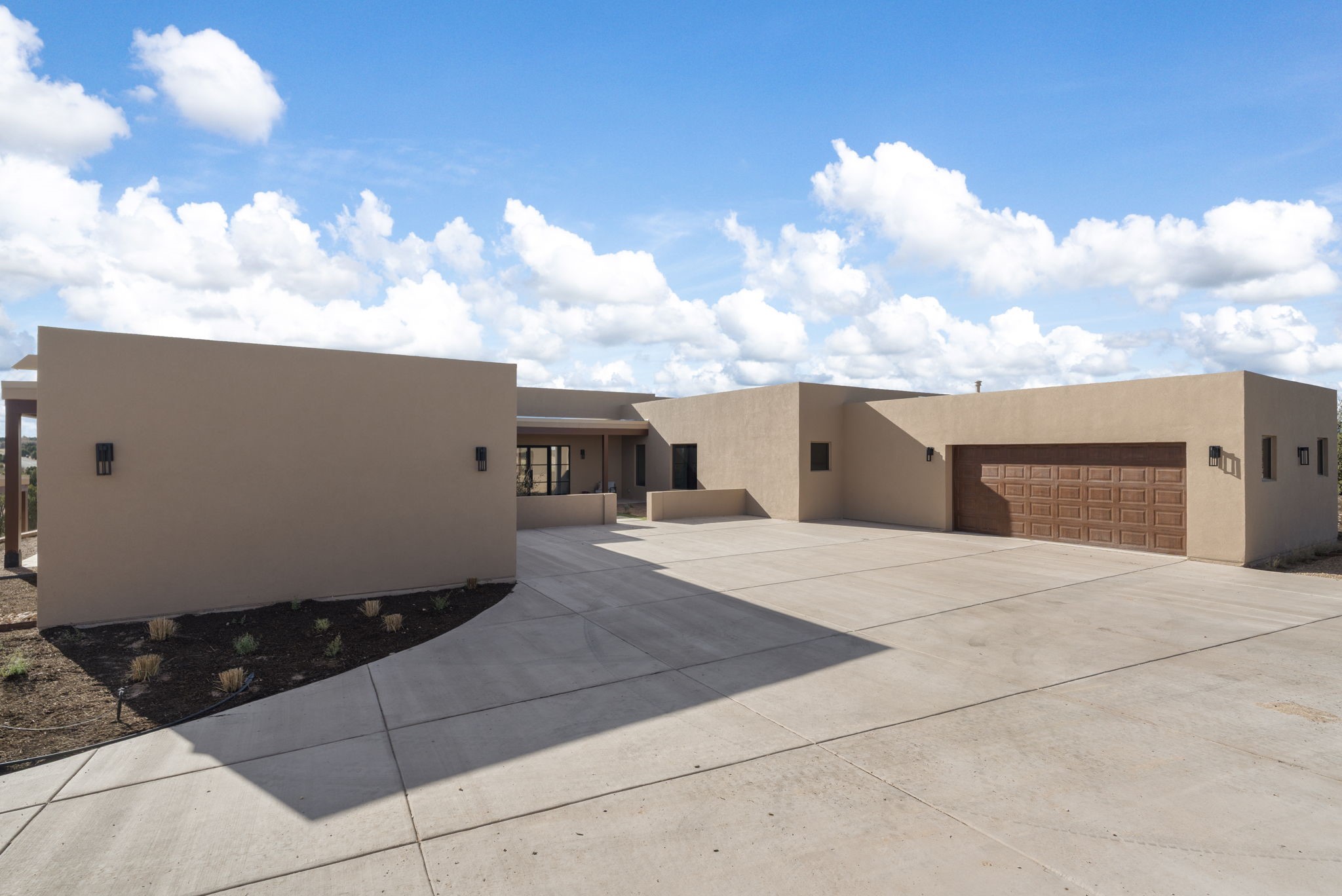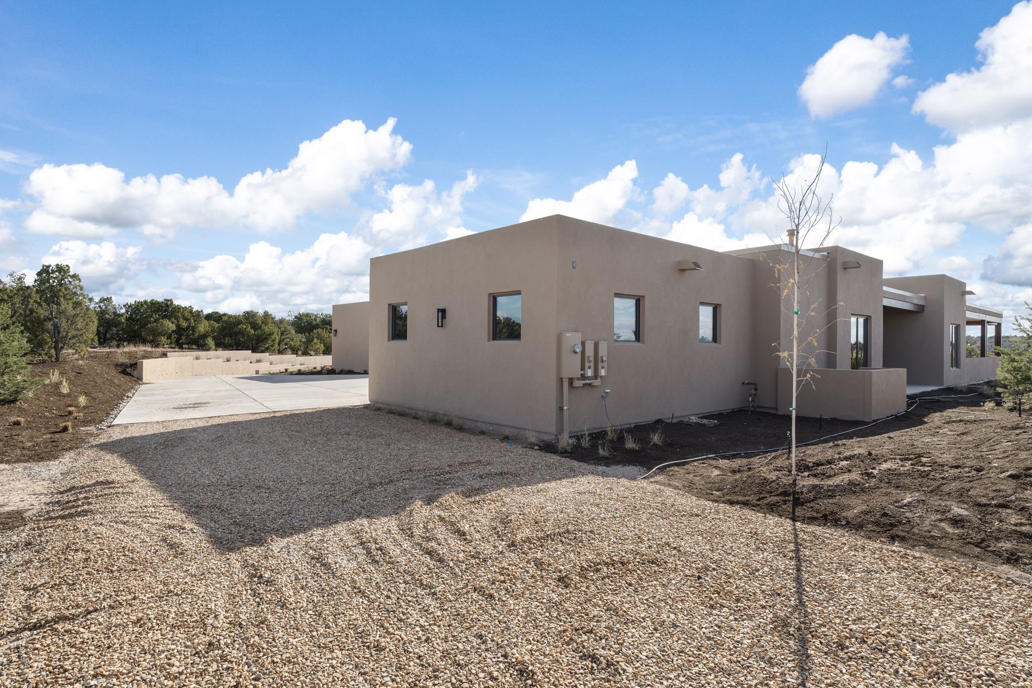 Nestled in the prestigious Las Campanas community of Santa Fe, this newly built custom estate blends modern architecture with timeless New Mexican charm. Situated on a 1.64-acre homesite overlooking two picturesque golf holes, the home captures breathtaking views of both the fairways and surrounding mountains.Built by Candelaria Homes, one of New Mexico's most respected luxury builders, this residence reflects exceptional craftsmanship and attention to detail in every corner--from its open floor plan to its refined finishes.Designed for comfort and sophistication, the single-story layout features heated floors throughout the main living and family areas, creating warmth and luxury in every season. A beautifully designed detached one-bedroom Casita offers the perfect retreat for guests, extended family, or a private studio.The gourmet kitchen impresses with bold dark finishes, high-end Sub-Zero appliances, a spacious center island, and a large butler's pantry, seamlessly combining style and function.A versatile bonus living area provides flexibility as a children's playroom, home library, or secondary living space. Expansive picture windows fill the home with natural light, framing Santa Fe's stunning landscape and creating a seamless indoor-outdoor connection.With its open-concept great room, spacious patios, and sweeping golf course and mountain views, this Las Campanas masterpiece defines elevated desert living. Golf course views are of holes 14 and 15.