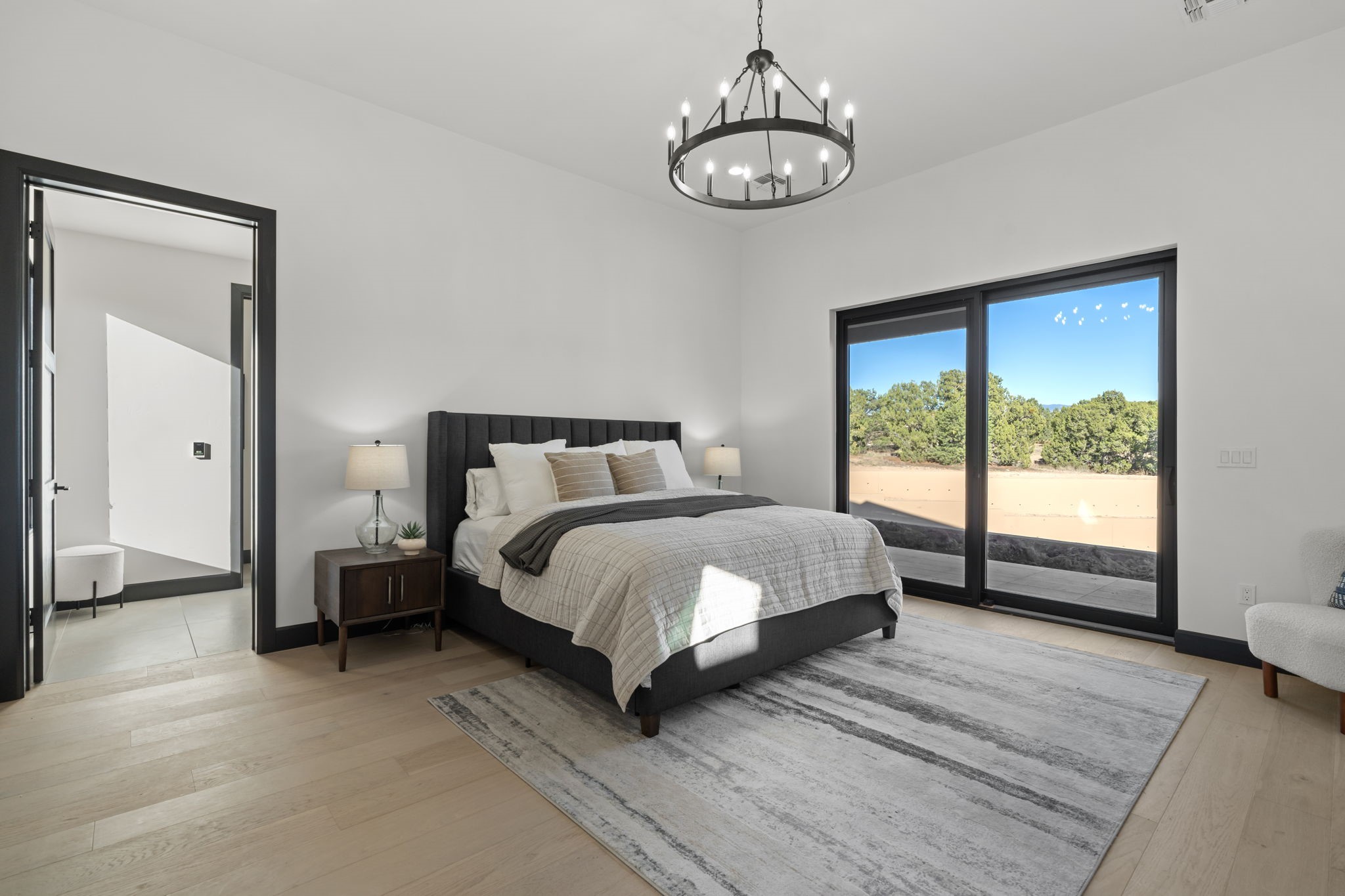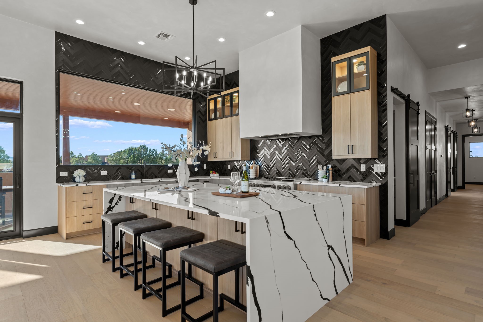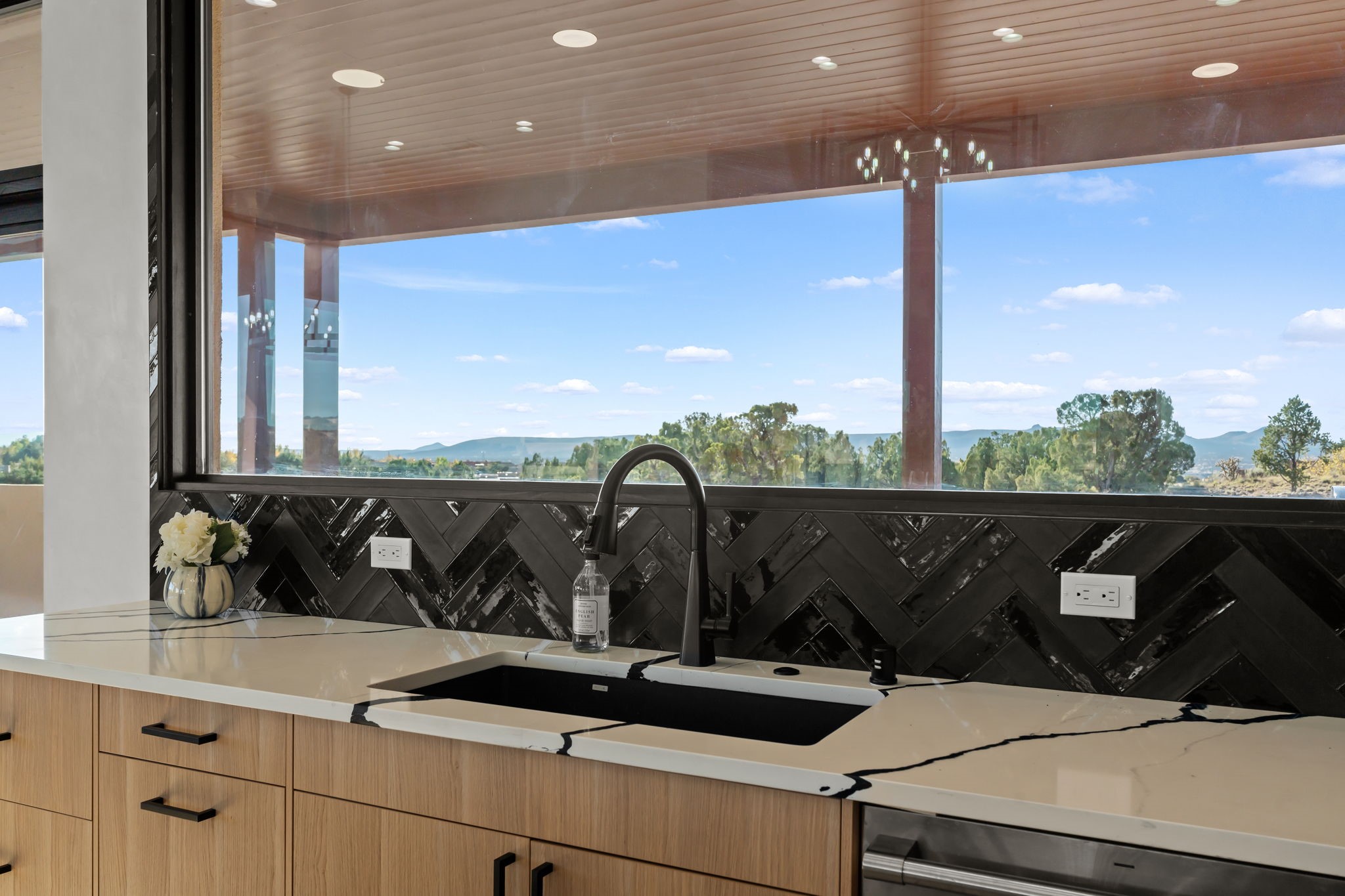 Nestled in the prestigious Las Campanas community of Santa Fe, this newly built custom estate blends modern architecture with timeless New Mexican charm. Situated on a 1.64-acre homesite overlooking two picturesque golf holes, the home captures breathtaking views of both the fairways and surrounding mountains.Built by Candelaria Homes, one of New Mexico's most respected luxury builders, this residence reflects exceptional craftsmanship and attention to detail in every corner--from its open floor plan to its refined finishes.Designed for comfort and sophistication, the single-story layout features heated floors throughout the main living and family areas, creating warmth and luxury in every season. A beautifully designed detached one-bedroom Casita offers the perfect retreat for guests, extended family, or a private studio.The gourmet kitchen impresses with bold dark finishes, high-end Sub-Zero appliances, a spacious center island, and a large butler's pantry, seamlessly combining style and function.A versatile bonus living area provides flexibility as a children's playroom, home library, or secondary living space. Expansive picture windows fill the home with natural light, framing Santa Fe's stunning landscape and creating a seamless indoor-outdoor connection.With its open-concept great room, spacious patios, and sweeping golf course and mountain views, this Las Campanas masterpiece defines elevated desert living. Golf course views are of holes 14 and 15.