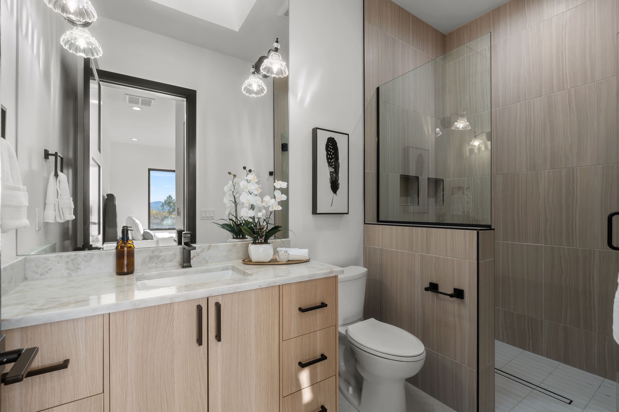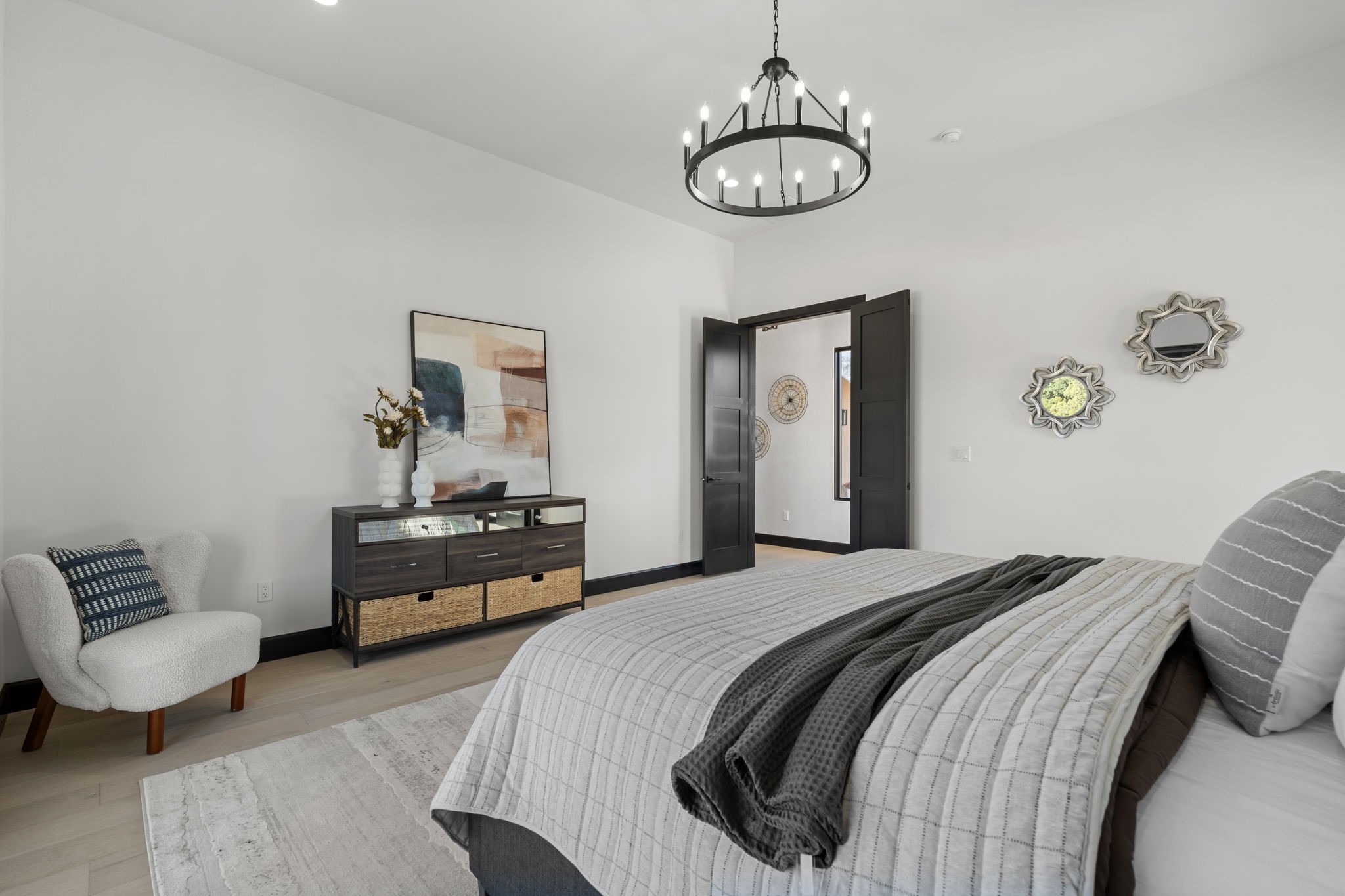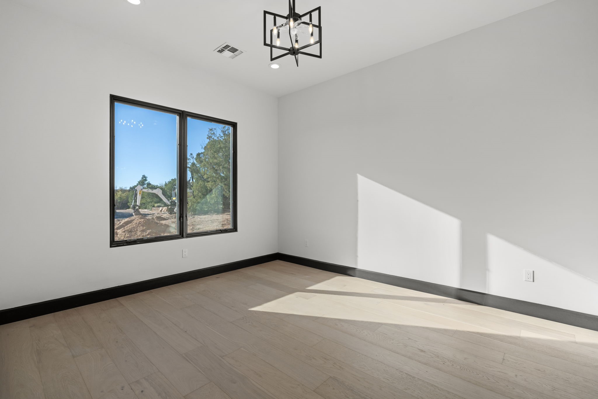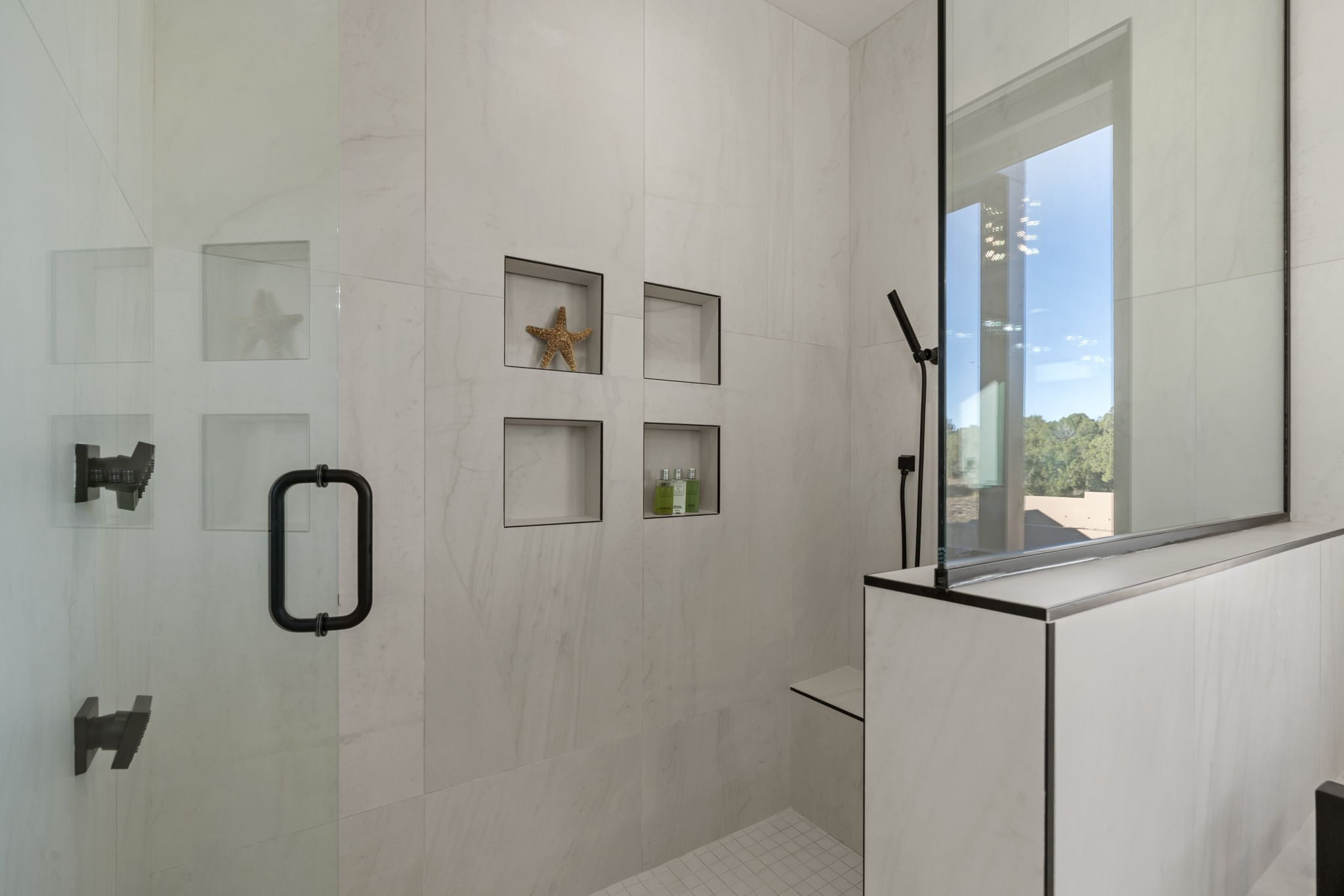Nestled in the prestigious Las Campanas community of Santa Fe, this newly built custom estate blends modern architecture with timeless New Mexican charm. Situated on a 1.64-acre homesite overlooking two picturesque golf holes, the home captures breathtaking views of both the fairways and surrounding mountains.Built by Candelaria Homes, one of New Mexico's most respected luxury builders, this residence reflects exceptional craftsmanship and attention to detail in every corner--from its open floor plan to its refined finishes.Designed for comfort and sophistication, the single-story layout features heated floors throughout the main living and family areas, creating warmth and luxury in every season. A beautifully designed detached one-bedroom Casita offers the perfect retreat for guests, extended family, or a private studio.The gourmet kitchen impresses with bold dark finishes, high-end Sub-Zero appliances, a spacious center island, and a large butler's pantry, seamlessly combining style and function.A versatile bonus living area provides flexibility as a children's playroom, home library, or secondary living space. Expansive picture windows fill the home with natural light, framing Santa Fe's stunning landscape and creating a seamless indoor-outdoor connection.With its open-concept great room, spacious patios, and sweeping golf course and mountain views, this Las Campanas masterpiece defines elevated desert living. Golf course views are of holes 14 and 15.