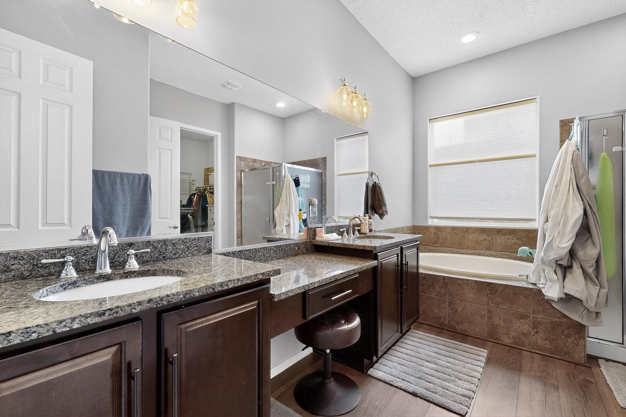 Nestled in the esteemed Loma Colorado community, this stunning single-story residence is an architectural sanctuary, ready for immediate occupancy. An open-plan living space flows effortlessly, anchored by a gourmet kitchen featuring granite countertops and stainless steel appliances & oversized island. Glass doors invite the outdoors in, leading to a sprawling, professionally landscaped backyard. This private retreat boasts custom-installed patios, sophisticated raised brick walls, and a serene water feature, designed for elegant al fresco living. Luxury Vinyl Flooring (2022) graces the master suite, living, and dining areas. The master bath is a spa-like escape. A dedicated flex space, perfect as an office or gym, showcases chic bamboo flooring. A 3-car garage and huge laundry room.