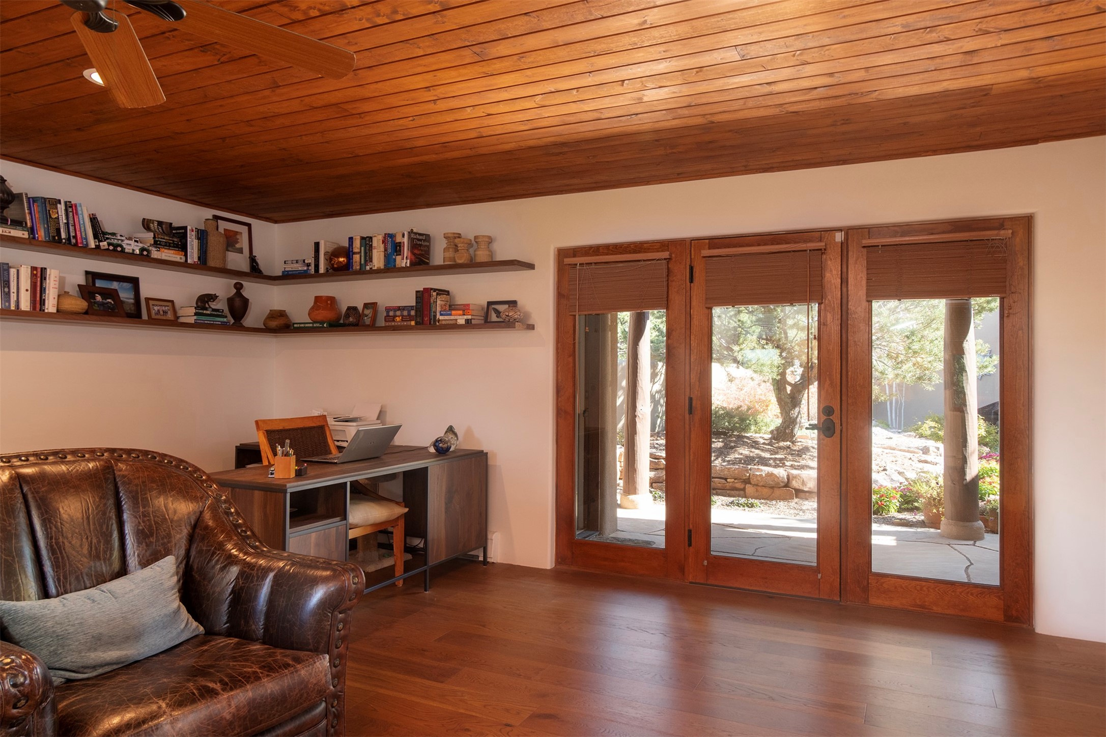 Set within the prestigious Las Campanas community, this exceptional 4-bedroom, 4-bathroom Santa Fe home showcases timeless Southwestern architecture blended with modern sophistication. Thoughtfully updated, the residence features numerous recent improvements. Expansive living spaces with soaring ceilings and large windows capture breathtaking mountain and sunset views. The gourmet kitchen, elegant dining area, and inviting outdoor patios create a seamless flow for entertaining or peaceful retreat. Offering access to world-class amenities, golf, and fine dining, 18 Arriba Circle represents the best of luxury living in Las Campanas--a perfect harmony of comfort, style, and Santa Fe charm.