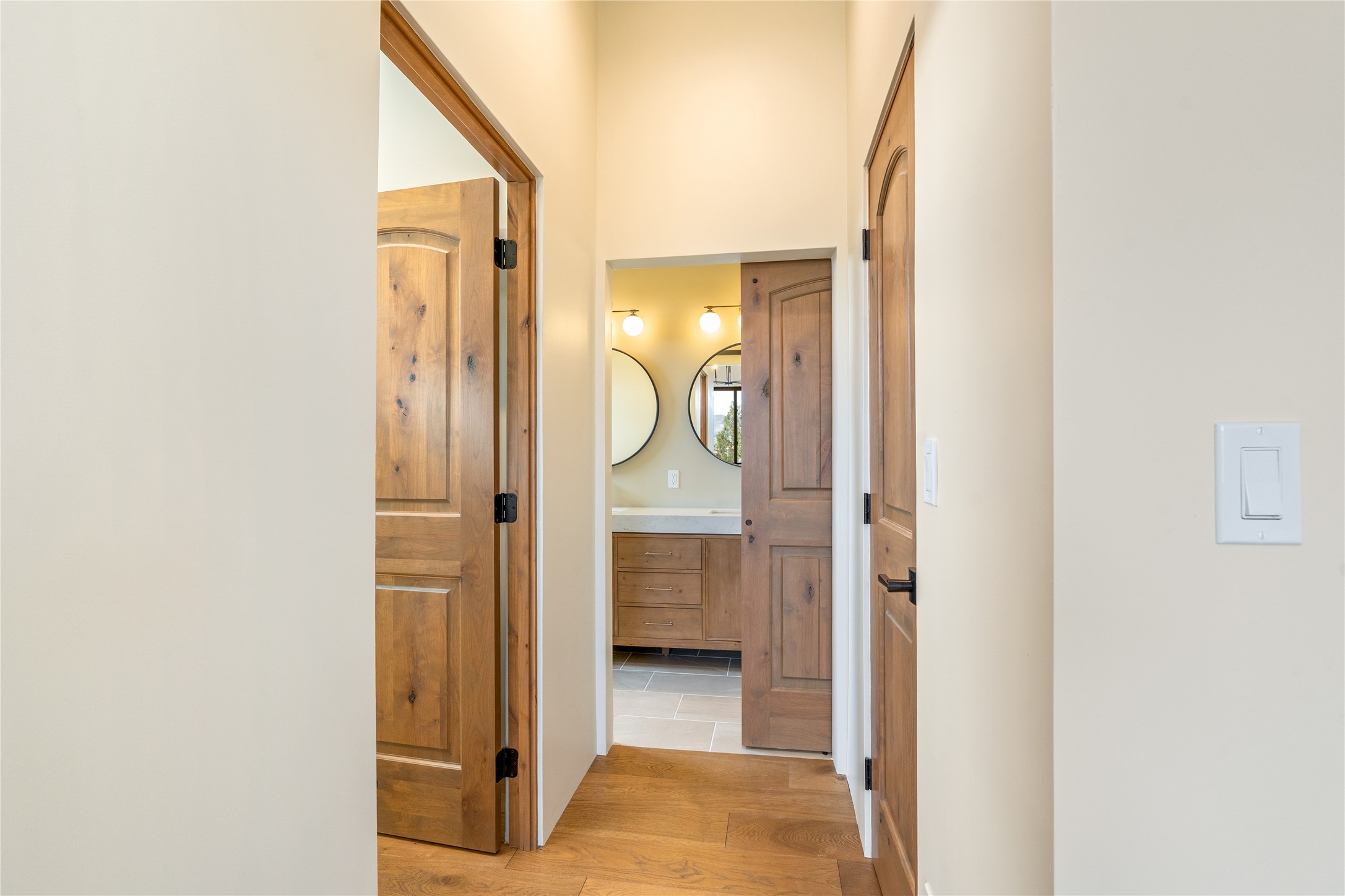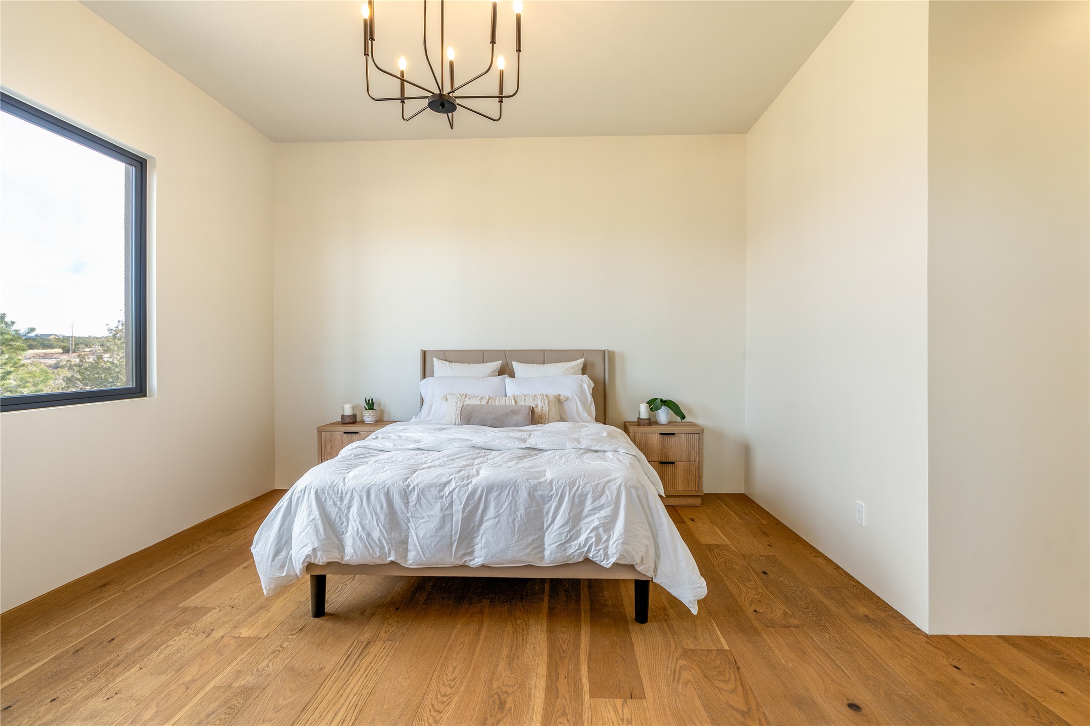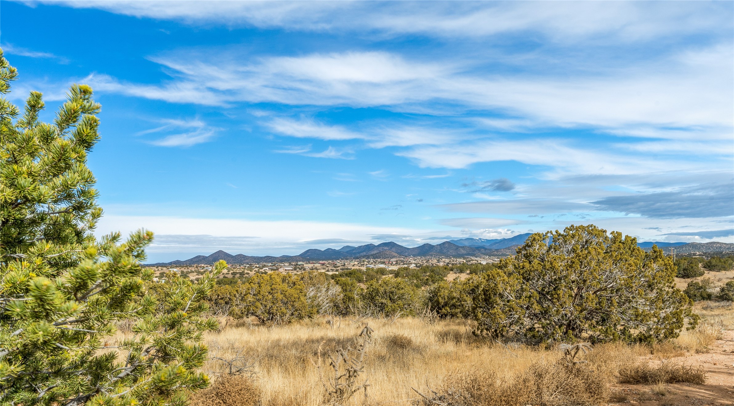 What an incredible place! The views are outstanding! Here you have 6.19+/- acres on a hilltop with views that reach far to the north and far to the west. At this property you can have an art studio or a business right at your home. There is plumbing and septic, and electric all set up to build another building on this lot. You can build an additional casita or guest house! This home is complete and ready to move into. It has the landscaping done with irrigation. The windows were placed to maximize light as well as mountain views. This modern home has gorgeous elements that also tie in the traditional styles of Santa Fe. There are viga beams in the main open concept living/dining/kitchen area. Both the front and back porches have Fir posts and beams with plenty of space to entertain or just relax and take in the beauty of this place. Watch the weather with a cup of coffee or tea on the back porch. There is a Douglas Fir custom-built modern vanity in the guest bathroom as well. The floors are a gorgeous, real wood engineered white oak. The doors are all a beautiful alder wood. Here you have a certified Green design home with Energy Star appliances, a HERS rating certification, and a very well-insulated house with highly insulated windows. This home comes with A/C and forced air heating, which is great when you want the temperature to adjust right away. Every detail was thought out and selected with a discriminating eye.You must come check this beautiful home out to feel what it will be like to live here.