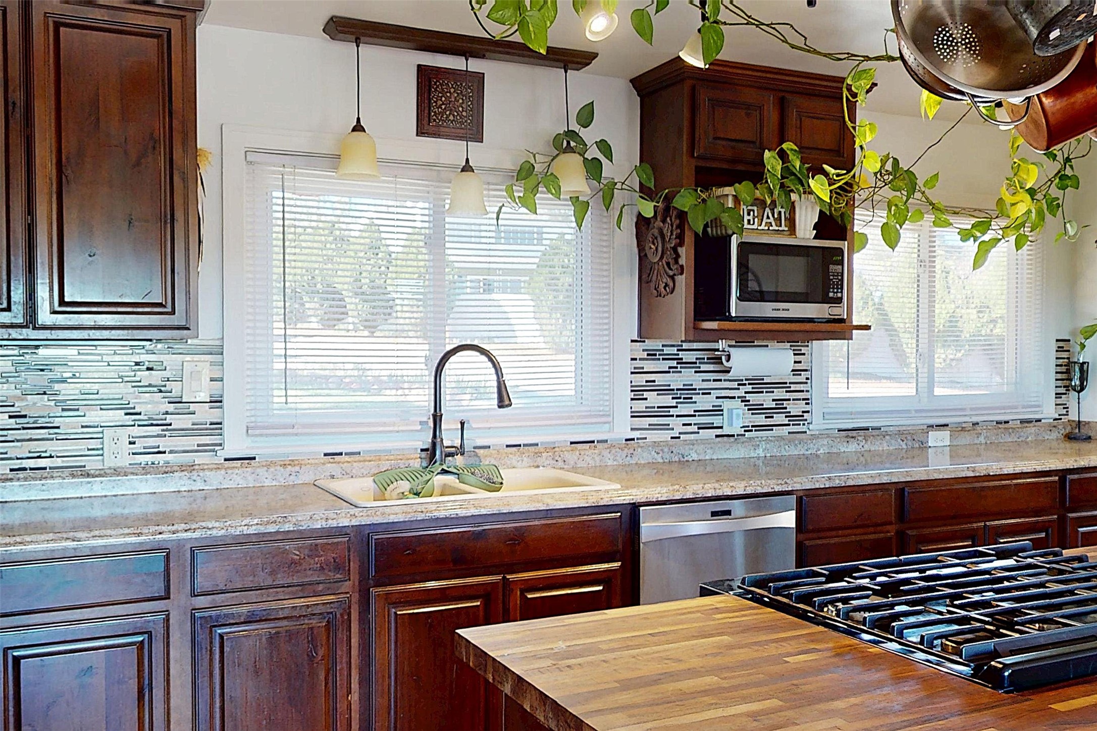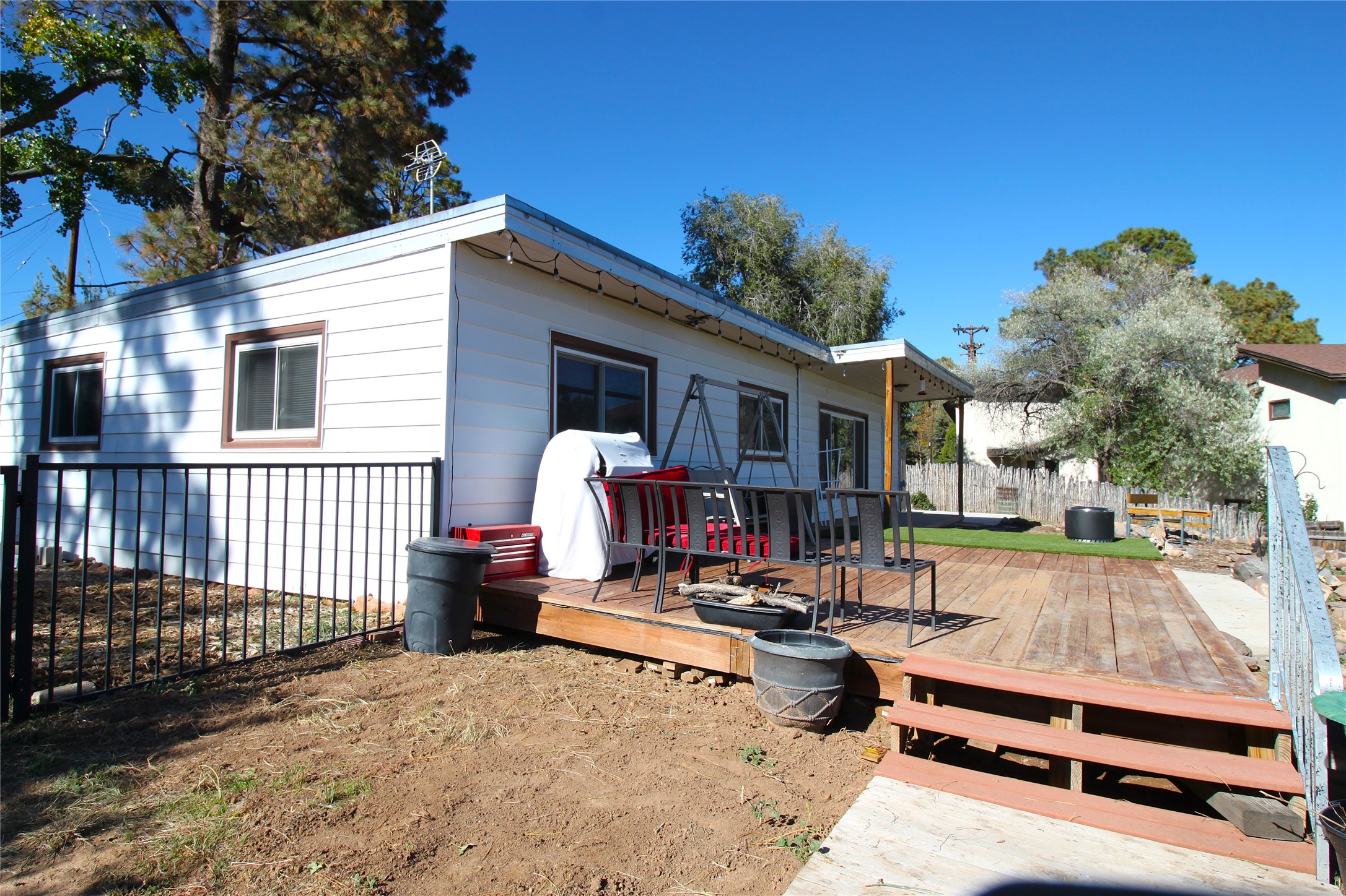 Charming Single-Story with Views and Spacious Backyard! This delightful 3-bedroom, 1-bath home combines comfort, functionality, and scenic beauty. Located near the end of a quiet street, it offers peaceful surroundings and sweeping views of Los Alamos, the mountains, and the mesas. Inside, the open floor plan seamlessly connects the living and dining areas, creating a bright, welcoming space perfect for everyday living or entertaining. The updated kitchen features rich wood cabinetry, walnut butcherblock countertops, modern appliances, and abundant storage--including a pantry and an extra freezer conveniently located just off the kitchen near the laundry. The track lighting in the kitchen provides ambient lighting while undercounter lights brighten work areas and pendent lights provide additional style. Large windows fill the home with natural light and frame stunning views of the surrounding landscape, while beautiful hardwood floors add warmth and character throughout the home. Outside, the expansive lot offers endless opportunities for outdoor living, gardening, and play. The spacious backyard and wooden deck provide the perfect spots to relax, dine al fresco, or take in the breathtaking New Mexico sunrises. A sprinkler and drip system with rain delay keeps the landscaping easy to maintain, and a 30-amp circuit offers power for an RV. With easy access to hiking trails, schools, LANL, and LAMC, this home offers the ideal blend of Los Alamos tranquility and everyday practicality. Schedule your showing today!